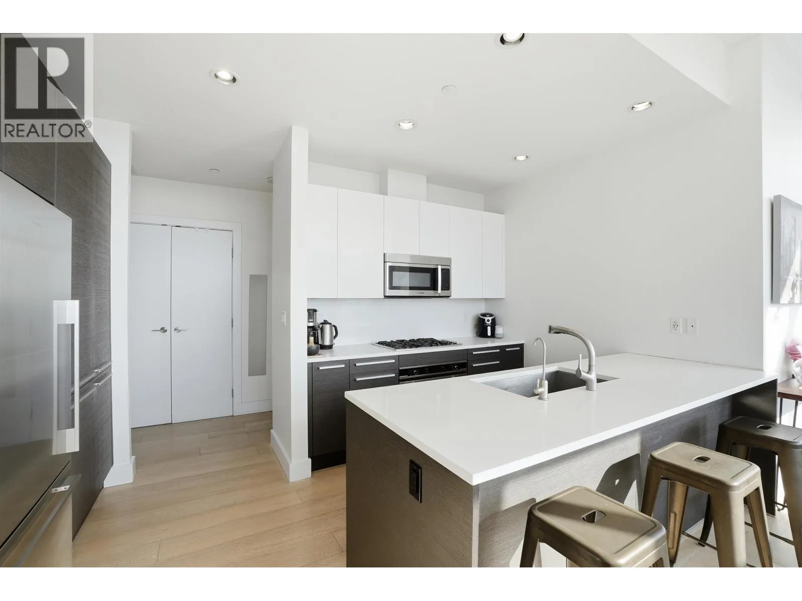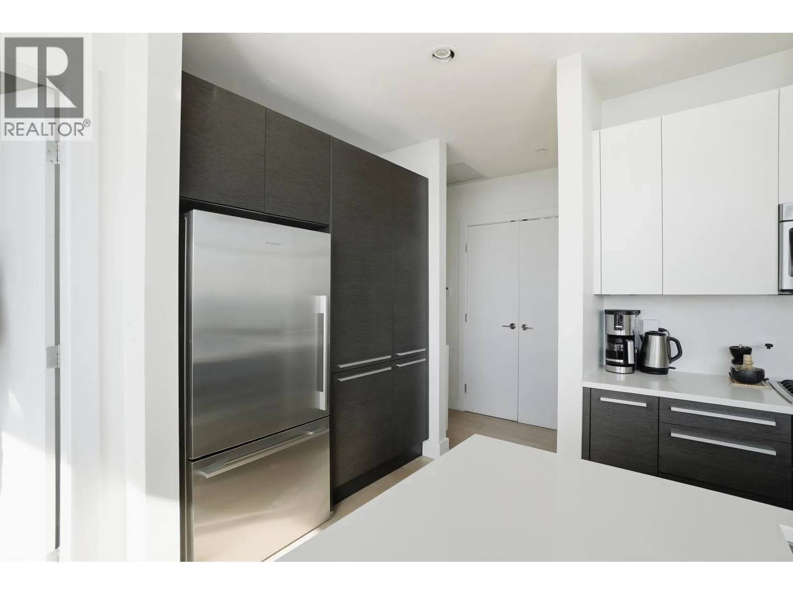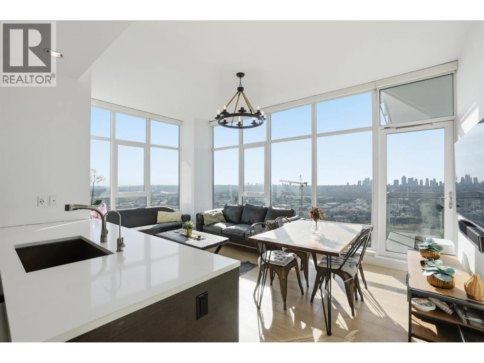 Stunning sub-penthouse corner residence at Bosa's Solo District. This bright 3-bedroom, 2-bath home offers over 1,045 square ft of thoughtfully designed living with impressive 10-foot ceilings and expansive floor-to-ceiling windows framing sweeping unobstructed panoramic views. The open kitchen, living and dining areas create an inviting space for everyday living and entertaining, while two large balconies extend the living space outdoors. Comfort is ensured year-round with geothermal heating and air conditioning. Thoughtful upgrades include blackout blinds and California Closets. Includes the rare convenience of 2 parking stalls and 2 storage lockers. Exceptional amenities include fitness centre, basketball court, rooftop deck and lounge. Steps to Brentwood SkyTrain, shopping and dining. (id:27476)