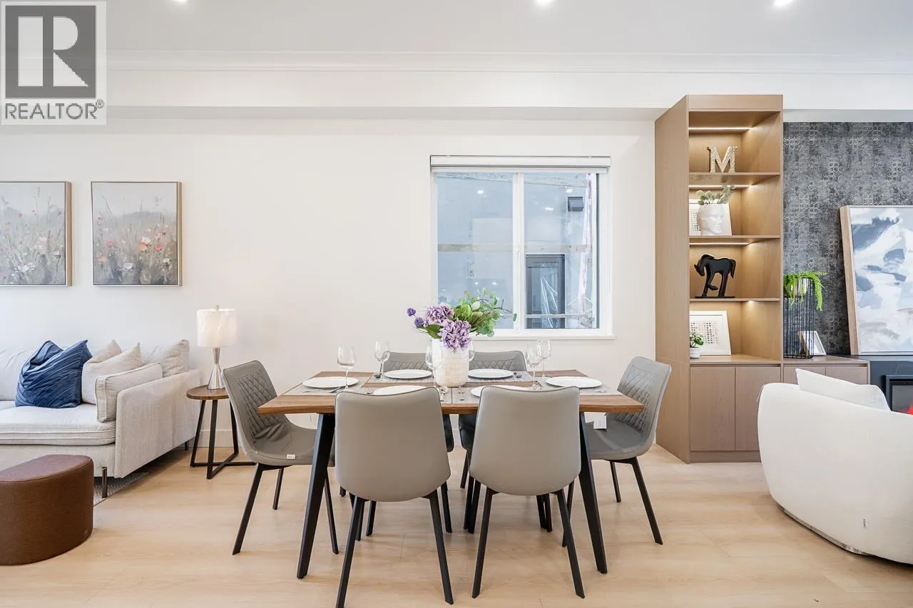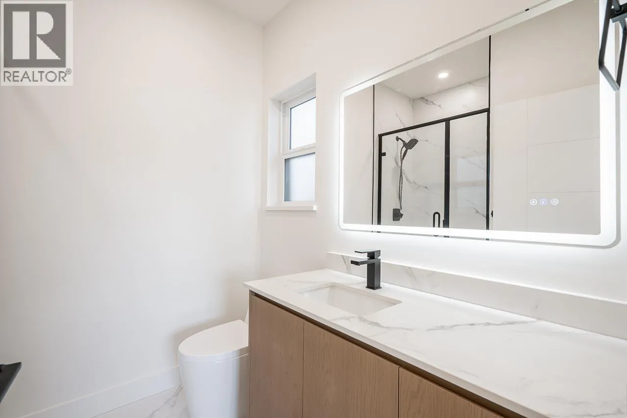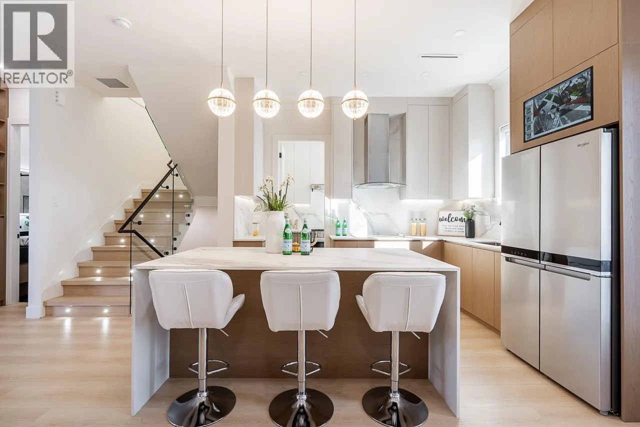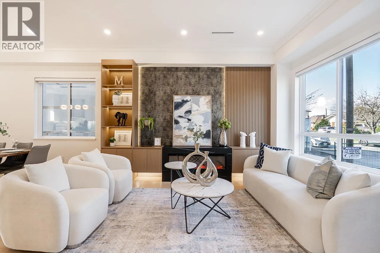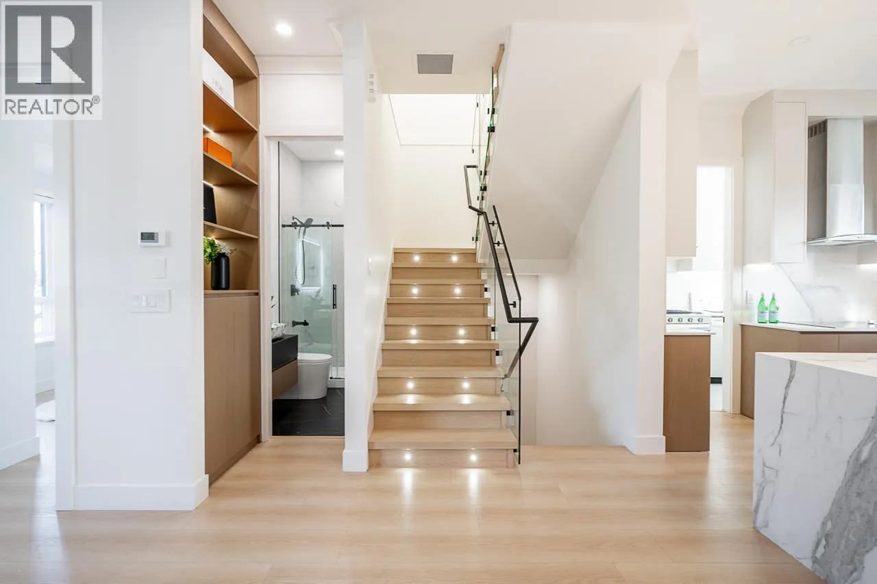 3-level modern home offering 2104 sf of bright, functional living space. The open-concept main flr feat a gourmet kitchen w/quality finishes + spice kitchen, spacious living & dining areas and cozy fireplace. A 2nd primary bdrm & full bath on the main provide an ideal setup for guests or multi-generational living. Up offers 3 bedrooms inc a generous primary suite w/W/I closet & luxurious ensuite. The ground level features a large rec room, bedroom, full bath, R/I laundry & separate entry-offering excellent flexibility for extended family or suite potential. Designed for comfort & effic w/heat pump, A/C, HRV system, radiant h/w gas heating & security system w/cameras. Prime location close to BBY North Secondary, Aubrey Elem & short bus ride to SFU. 5 min to Brentwood and amenities! (id:27476)