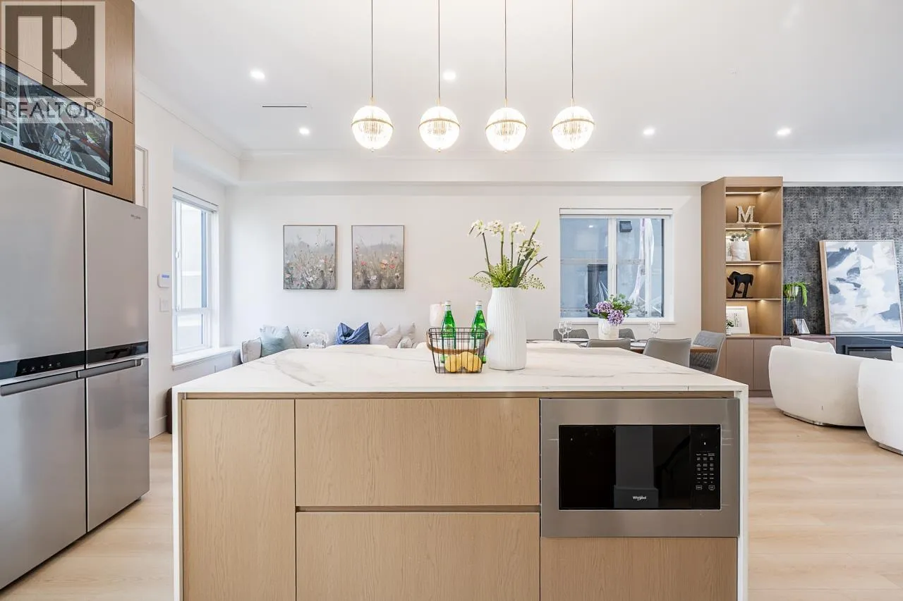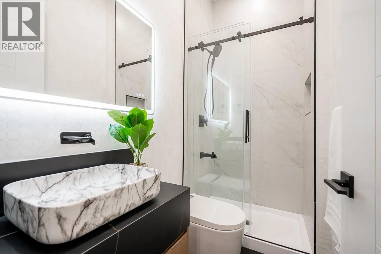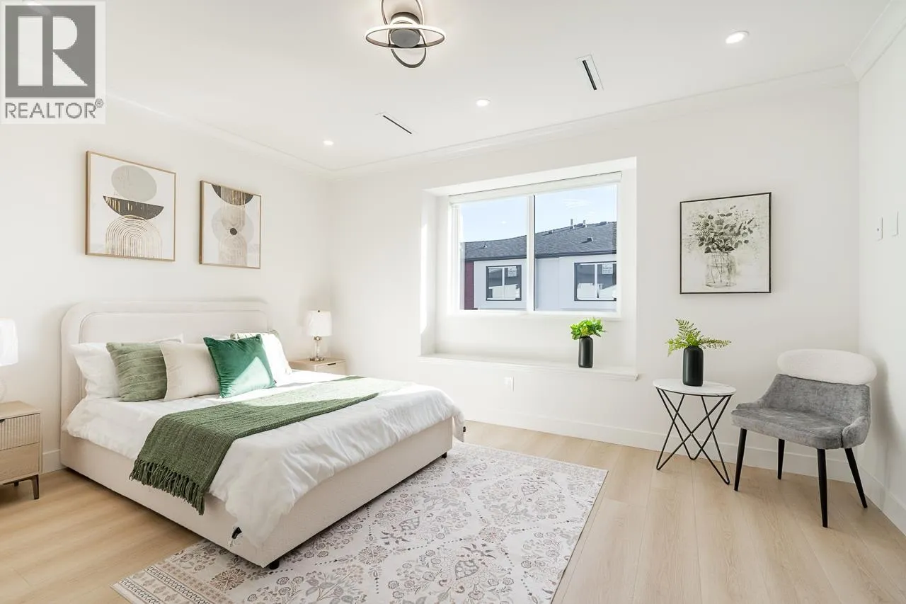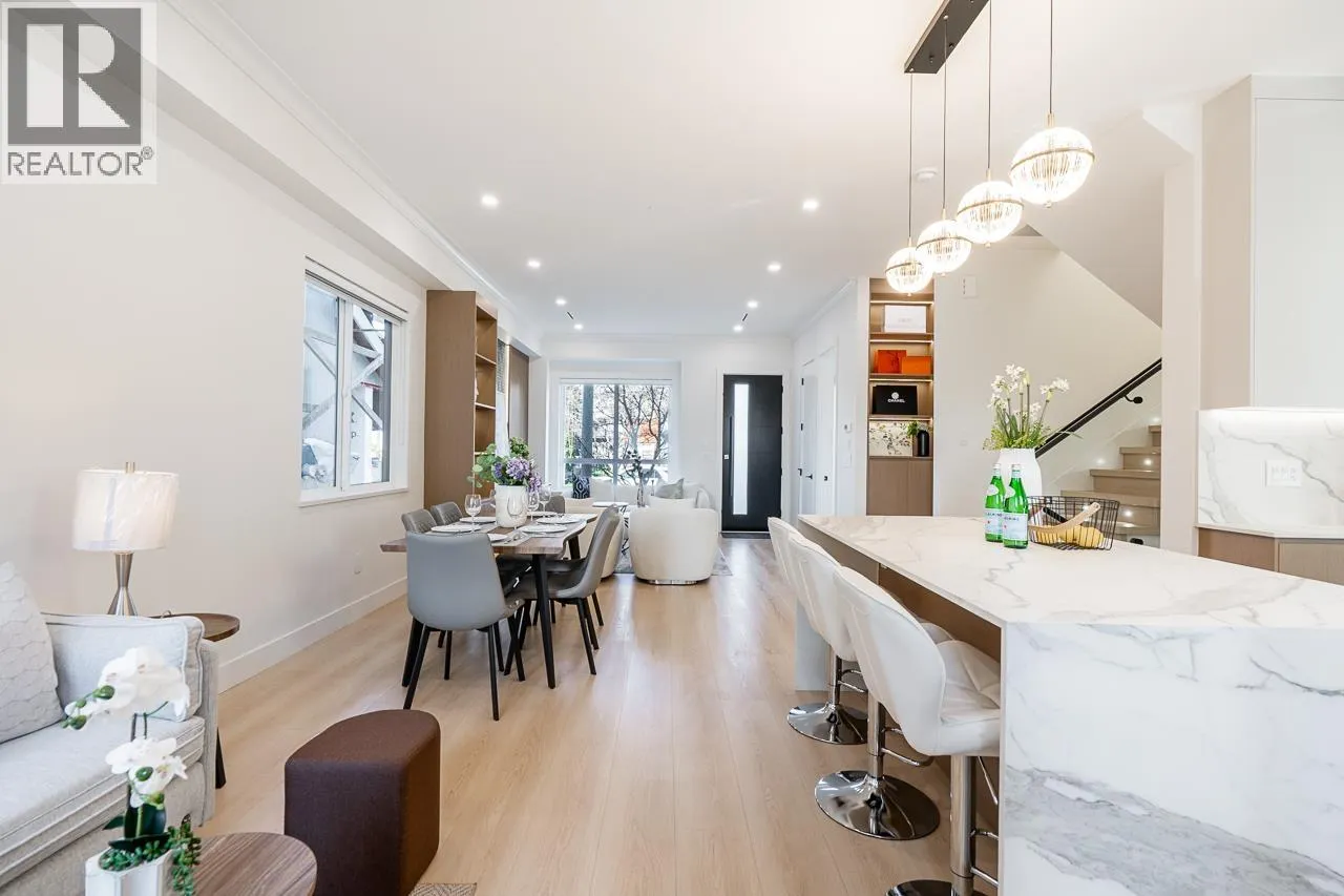 3-level modern home offering 2104 sf of bright, functional living space. The open-concept main flr feat a gourmet kitchen w/quality finishes + spice kitchen, spacious living & dining areas and cozy fireplace. A 2nd primary bdrm & full bath on the main provide an ideal setup for guests or multi-generational living. Up offers 3 bedrooms inc a generous primary suite w/W/I closet & luxurious ensuite. The ground level features a large rec room, bedroom, full bath, R/I laundry & separate entry-offering excellent flexibility for extended family or suite potential. Designed for comfort & effic w/heat pump, A/C, HRV system, radiant h/w gas heating & security system w/cameras. Prime location close to BBY North Secondary, Aubrey Elem & short bus ride to SFU. 5 min to Brentwood and amenities! (id:27476)