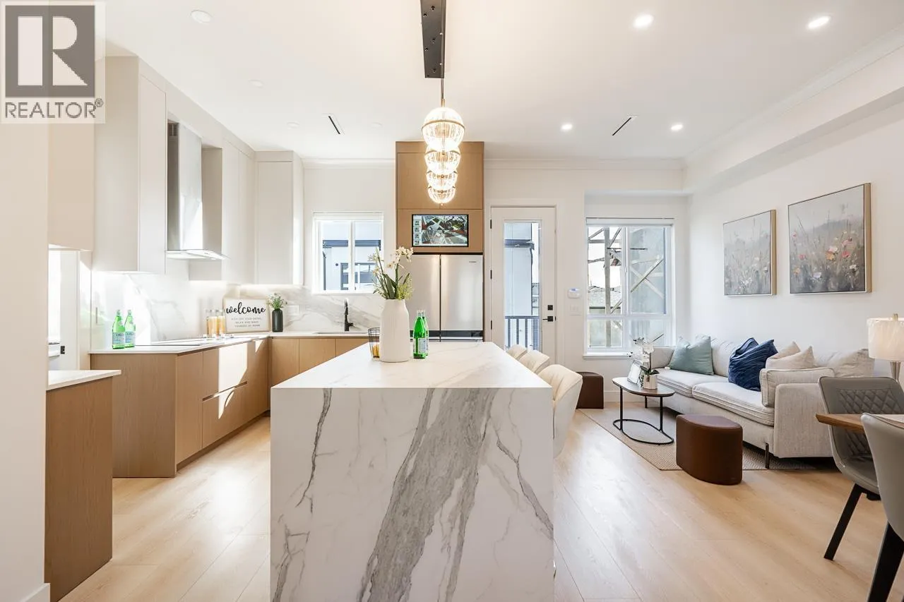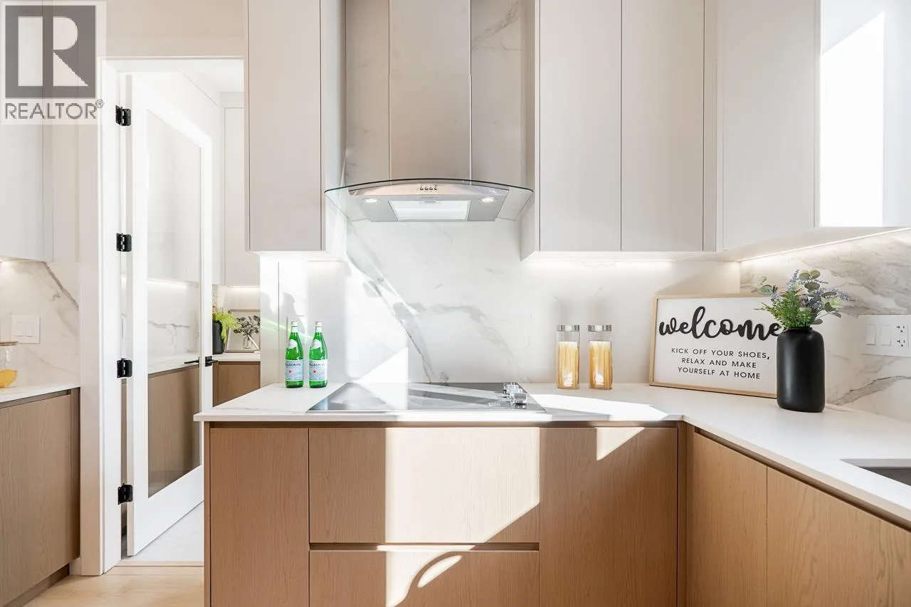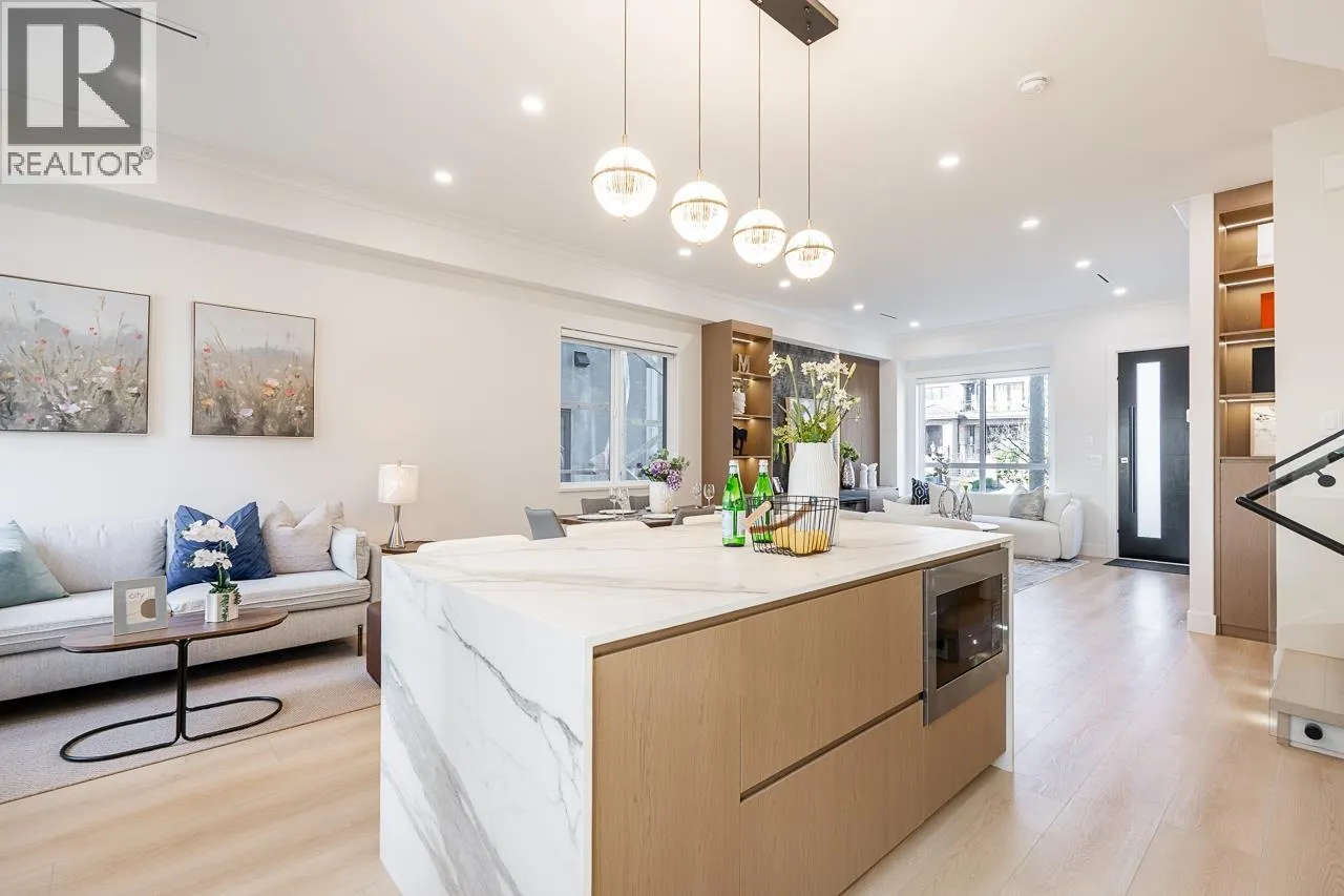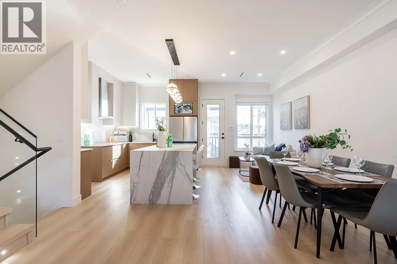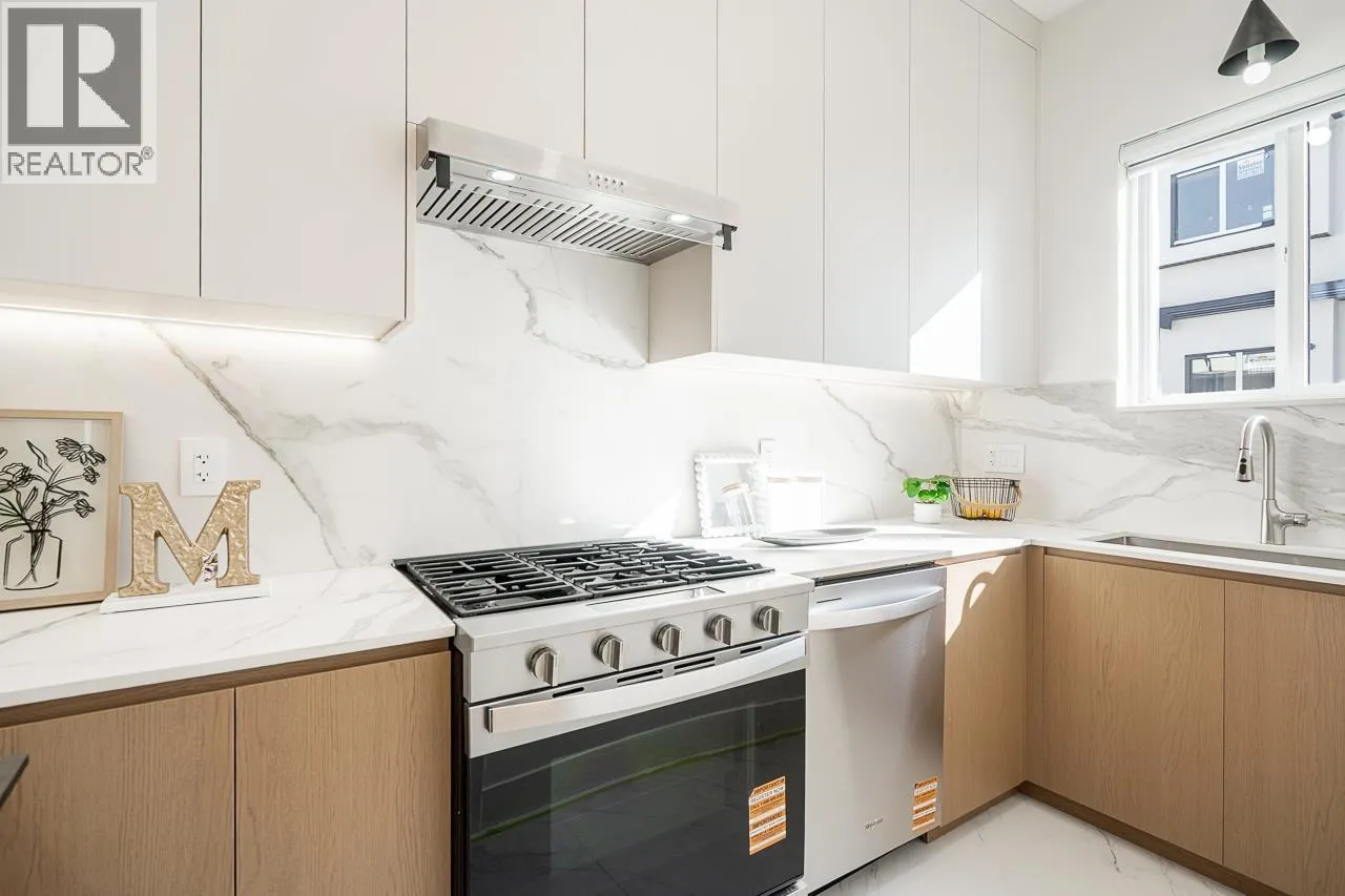 3-level modern home offering 2104 sf of bright, functional living space. The open-concept main flr feat a gourmet kitchen w/quality finishes + spice kitchen, spacious living & dining areas and cozy fireplace. A 2nd primary bdrm & full bath on the main provide an ideal setup for guests or multi-generational living. Up offers 3 bedrooms inc a generous primary suite w/W/I closet & luxurious ensuite. The ground level features a large rec room, bedroom, full bath, R/I laundry & separate entry-offering excellent flexibility for extended family or suite potential. Designed for comfort & effic w/heat pump, A/C, HRV system, radiant h/w gas heating & security system w/cameras. Prime location close to BBY North Secondary, Aubrey Elem & short bus ride to SFU. 5 min to Brentwood and amenities! (id:27476)