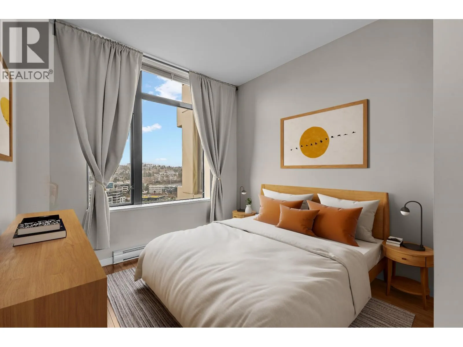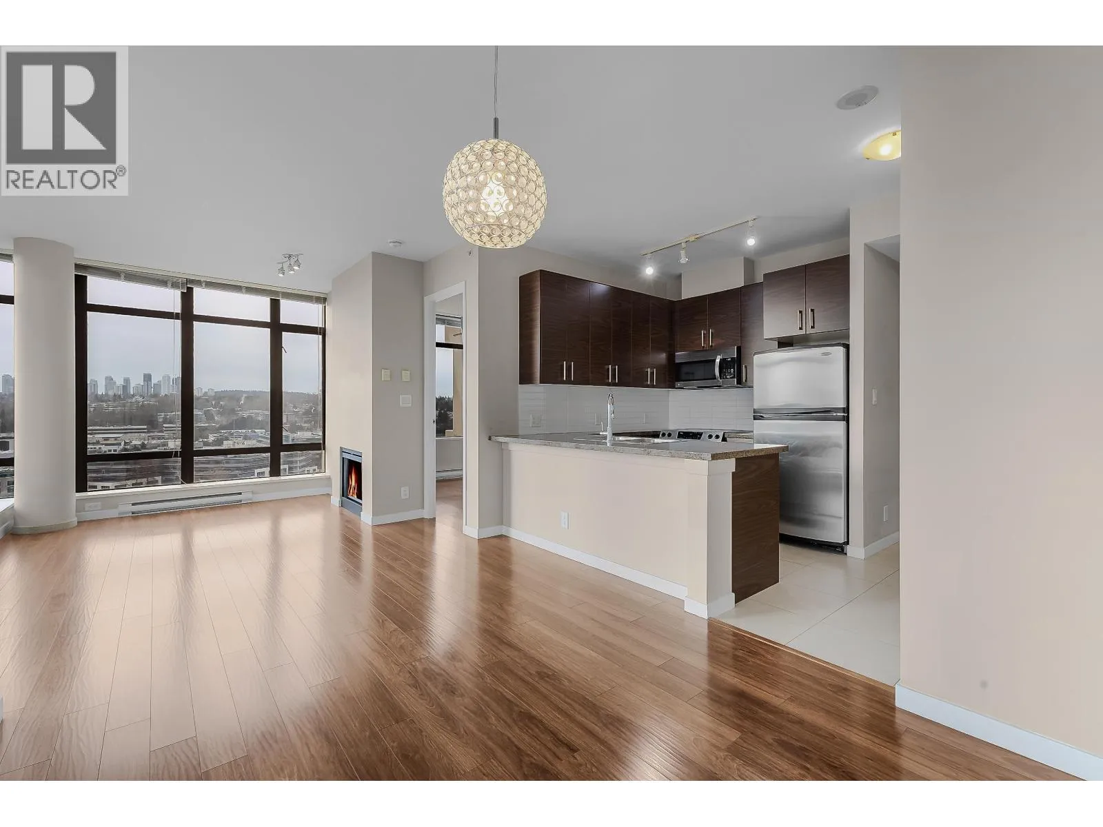 Welcome to OMA in the heart of Brentwood. This bright South-East corner 2 bedroom, 2 bathroom home offers an efficient layout with separated bedrooms, a spacious open living and dining area, expansive corner windows, and a large covered balcony to take in the city views. The kitchen offers ample cabinetry, stainless steel appliances, and a functional breakfast bar, white the primary bedrooms features its own ensuite. Complete with in-suite laundry, 1 parking stall, and 1 secured storage locker. Residents enjoy excellent amenities including an indoor pool, hot tub, sauna/steam room, gym, clubhouse, and garden, all just moments from Gilmore and Brentwood SkyTrain, Whole Foods, T&T, Costco, and the Amazing Brentwood. (id:27476)