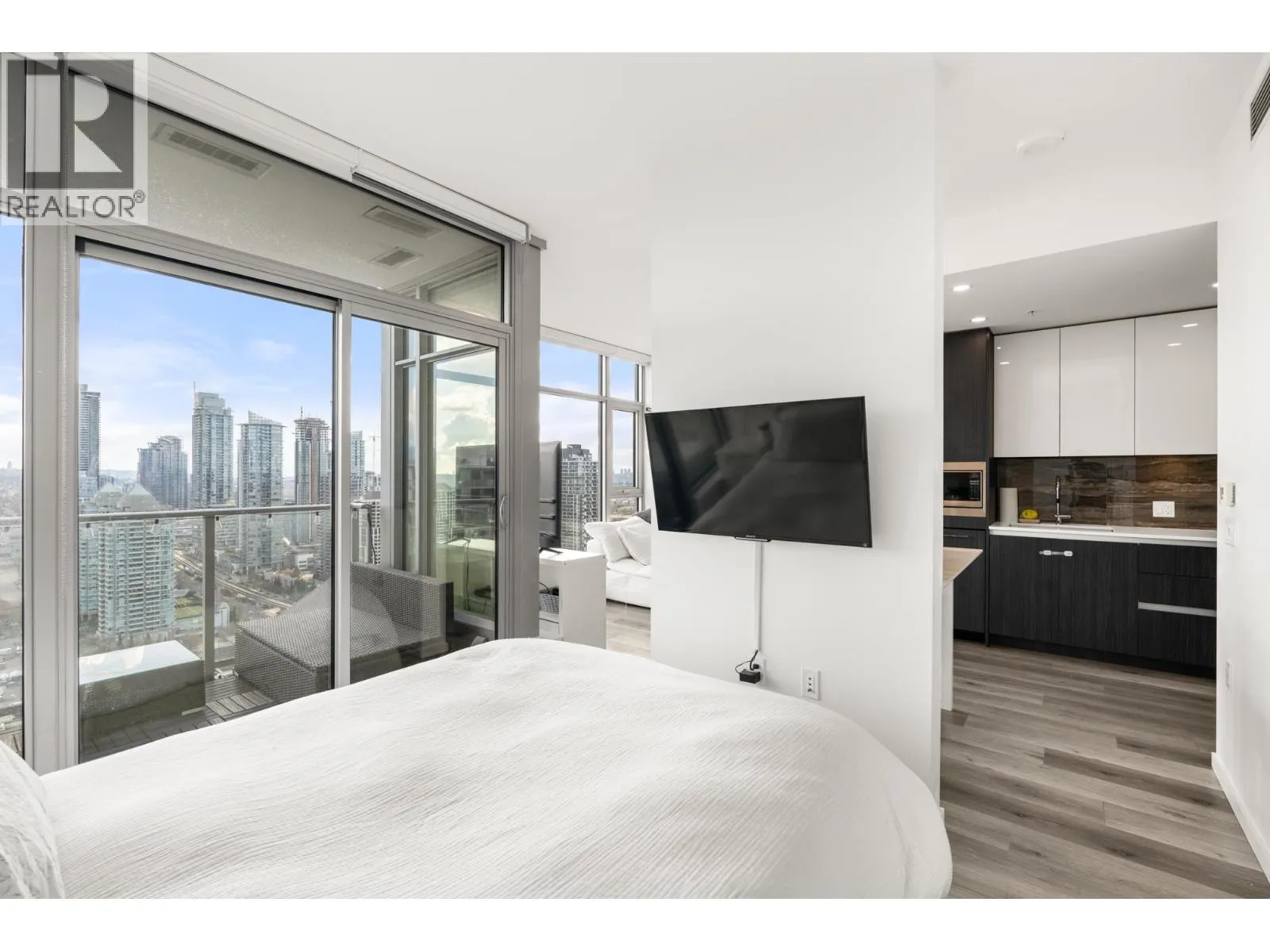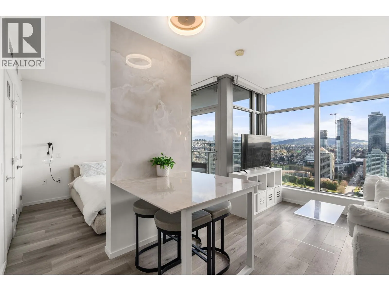 Welcome to Triomphe! This bright 1 bed, 486 square ft home features 9' ceilings, central air conditioning, Bosch appliances, in-suite laundry, 1 parking, and a BONUS two storage lockers for added convenience. Enjoy stunning views of the North Shore Mountains from this thoughtfully designed residence, loaded with upgrades to maximize function - custom built-in stone dining table, closet organizers in the oversized WIC, and glass shower door. Triomphe offers over 13,000 square ft of world-class amenities including an outdoor pool, jacuzzi, sauna, steam room, fitness center, two guest suites, BBQ terrace, fire pit, and more. Located within walking distance to Brentwood Town Centre, Gilmore SkyTrain, restaurants, and shopping, with quick access to Willingdon Heights, BCIT, and SFU. (id:27476)