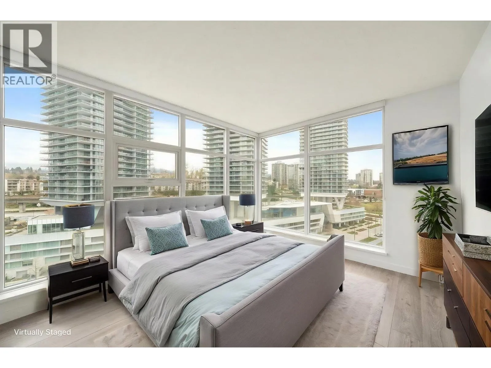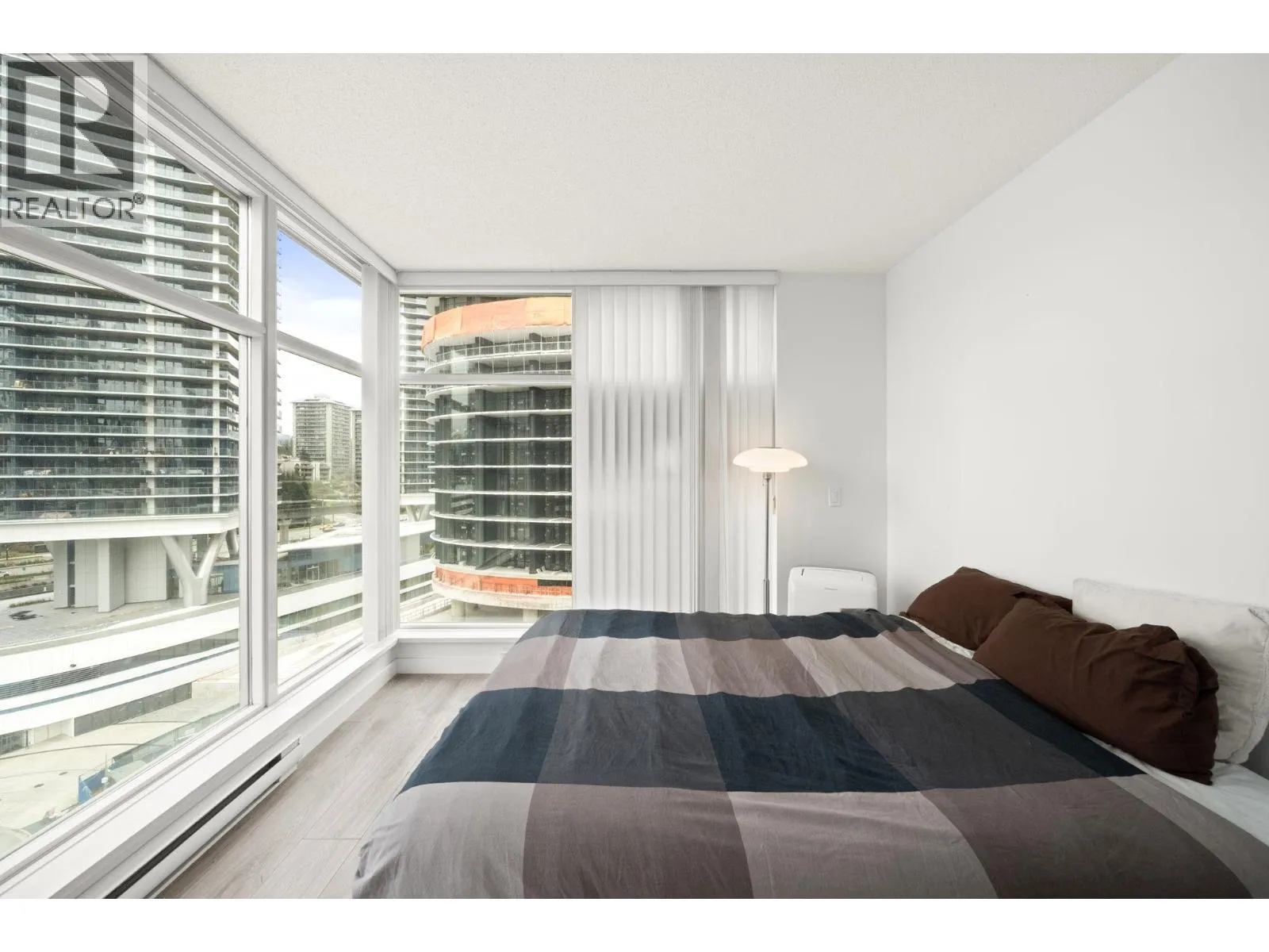 Welcome to this bright upper-level, east-facing corner unit by Polygon, offering an airy living space with abundant natural light. Features 2 beds, 2 baths and laminate flooring throughout. The living room has been customized to include a partitioned room with a closet and door; walls do not extend fully to the ceiling, offering flexibility. Great investment potential with a flexible layout and added room. Enjoy amenities including a fitness centre, indoor hot tub, steam room, and sauna. Centrally located within a 5-7 minute walk to Brentwood Mall & skytrain, shops, and restaurants. Includes 2 parking stalls and 1 locker. Pet and rental friendly. (id:27476)