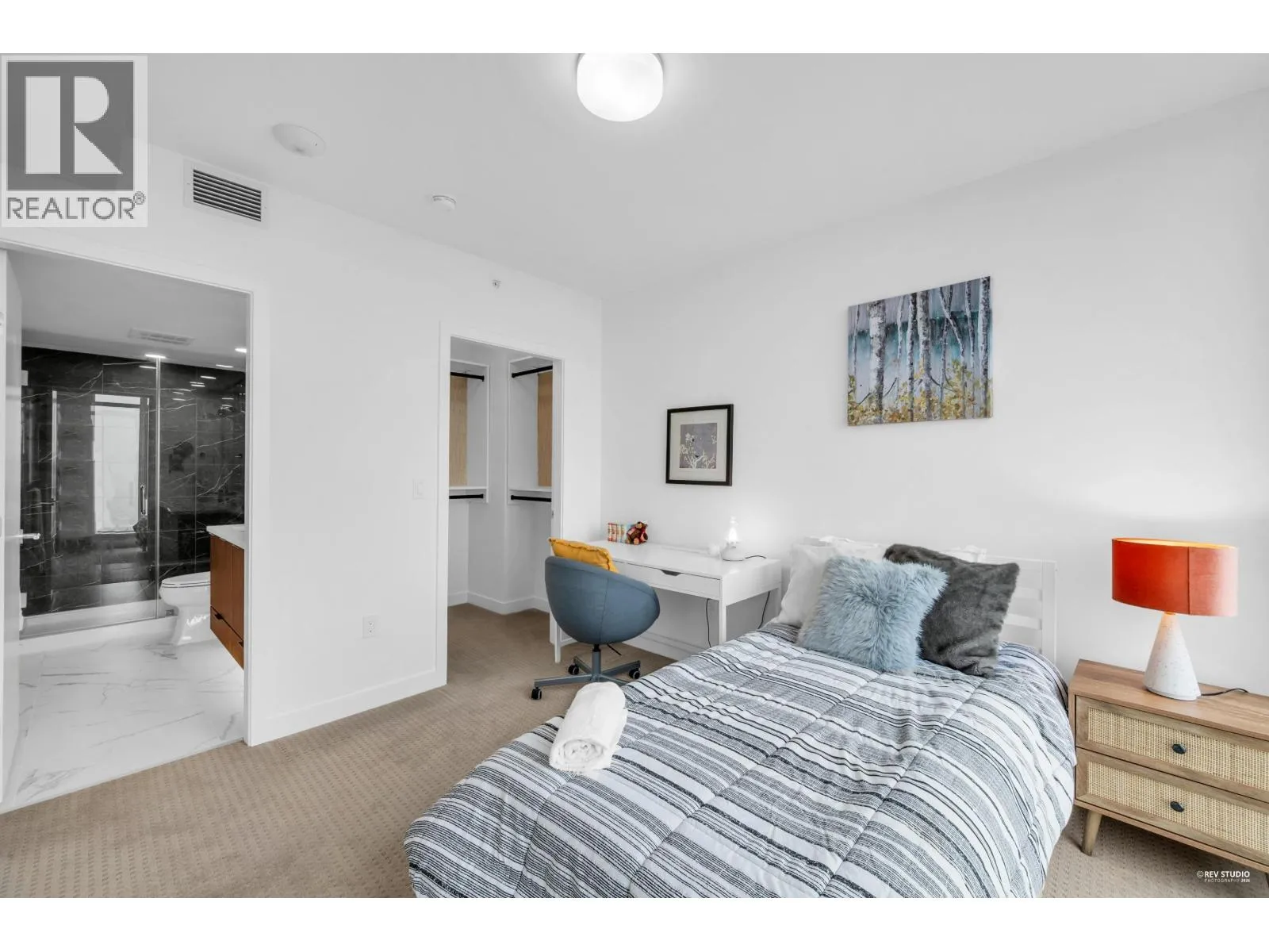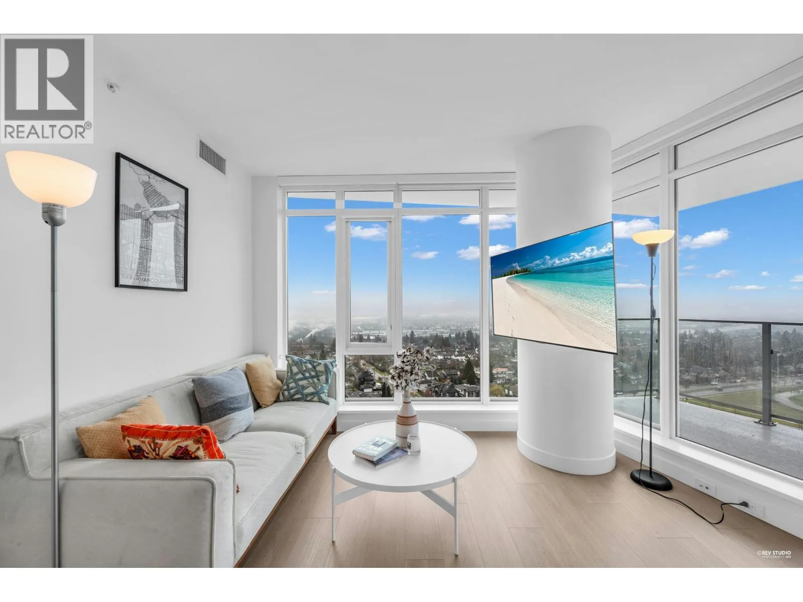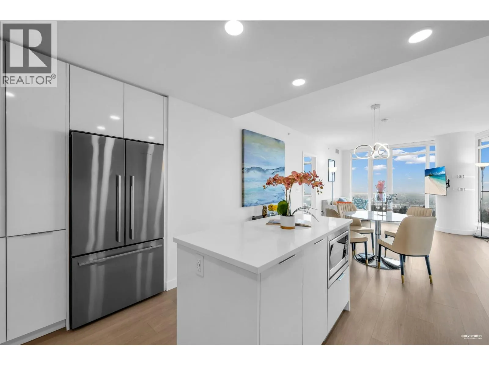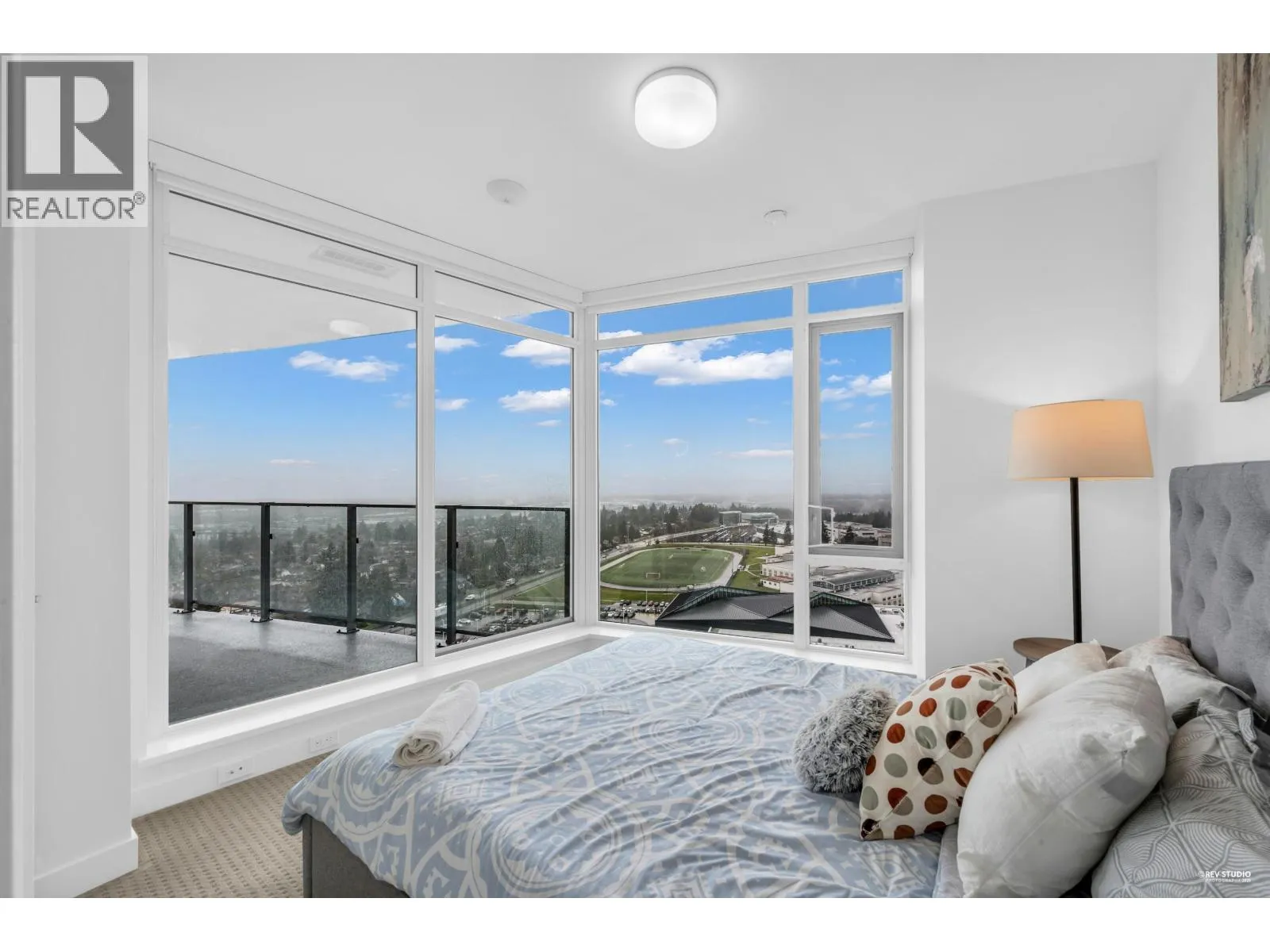 This quiet 17th-floor corner unit at Azure II features a functional open-den layout and air conditioning for year-round comfort. The home offers unobstructed Fraser River and city views from both the large balcony and the second bedroom´s corner windows. High-end interior highlights include a huge kitchen with a dedicated pantry wall, a luxurious master ensuite, and custom California closet shelving with designer wallpaper. Residents enjoy premium gas cooktop and quartz finishes, plus building amenities like a concierge and fitness center, all located steps from Edmonds SkyTrain in the Southgate City community. (id:27476)