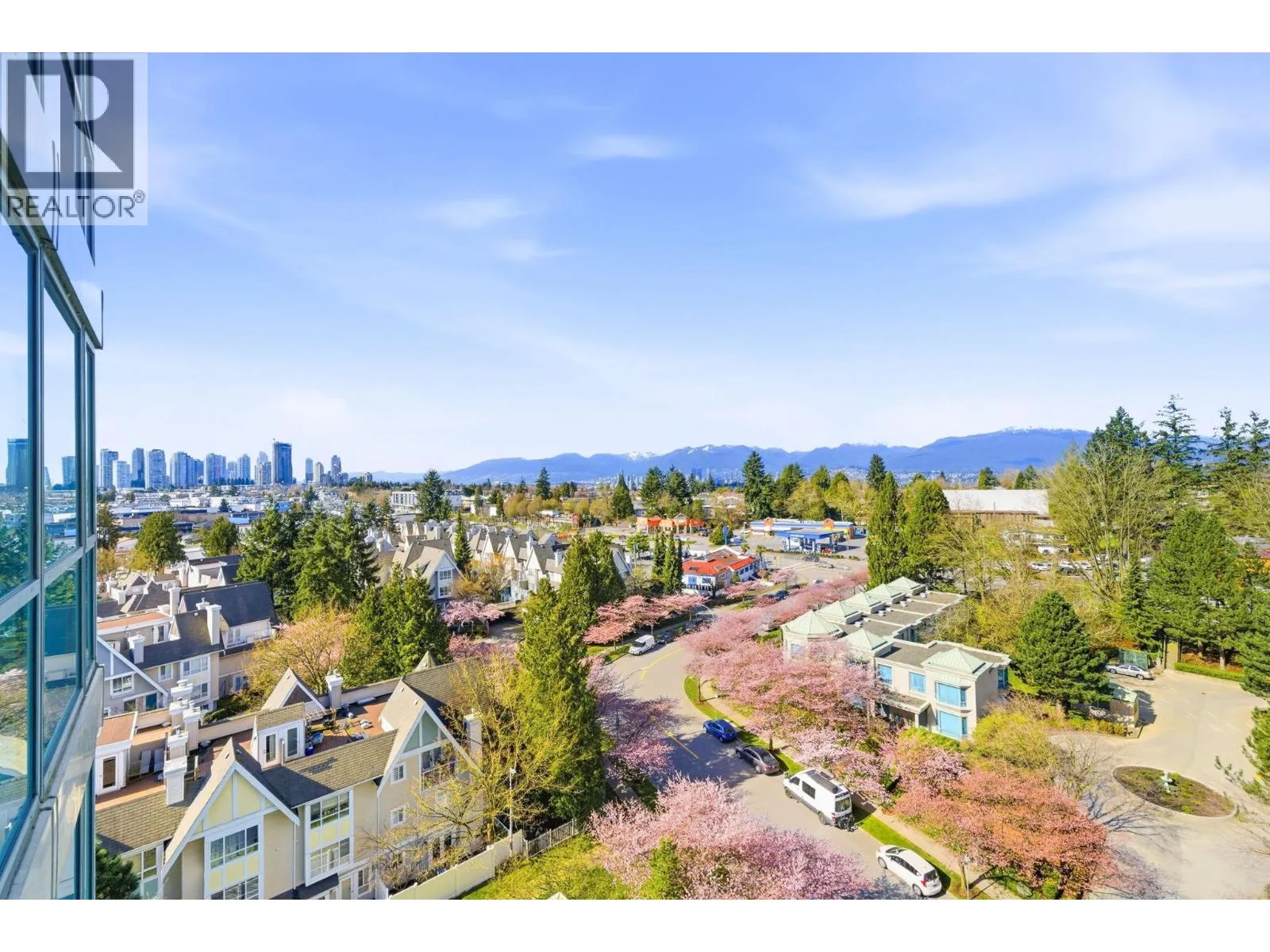Unobstructed city & mountain views from every room in this bright 2 bed + 2 bath corner unit with west and north exposure. Enjoy beautiful sunsets from the cozy living room by the fireplace, or step out onto your large private covered balcony, perfect for entertaining. Sunny kitchen with breakfast bar and a well designed layout featuring side-by-side bedrooms, including a spacious primary with ample closet space and ensuite. Built by Bosa with resort-style amenities including a hot tub, sauna, gym, and lounge. Steps to Nikkei Centre, parks, walking trails, restaurants, and everyday amenities. Walking distance to transit, Highgate Village, and SkyTrain. Includes 2 parking stalls and 1 storage locker. (id:27476)