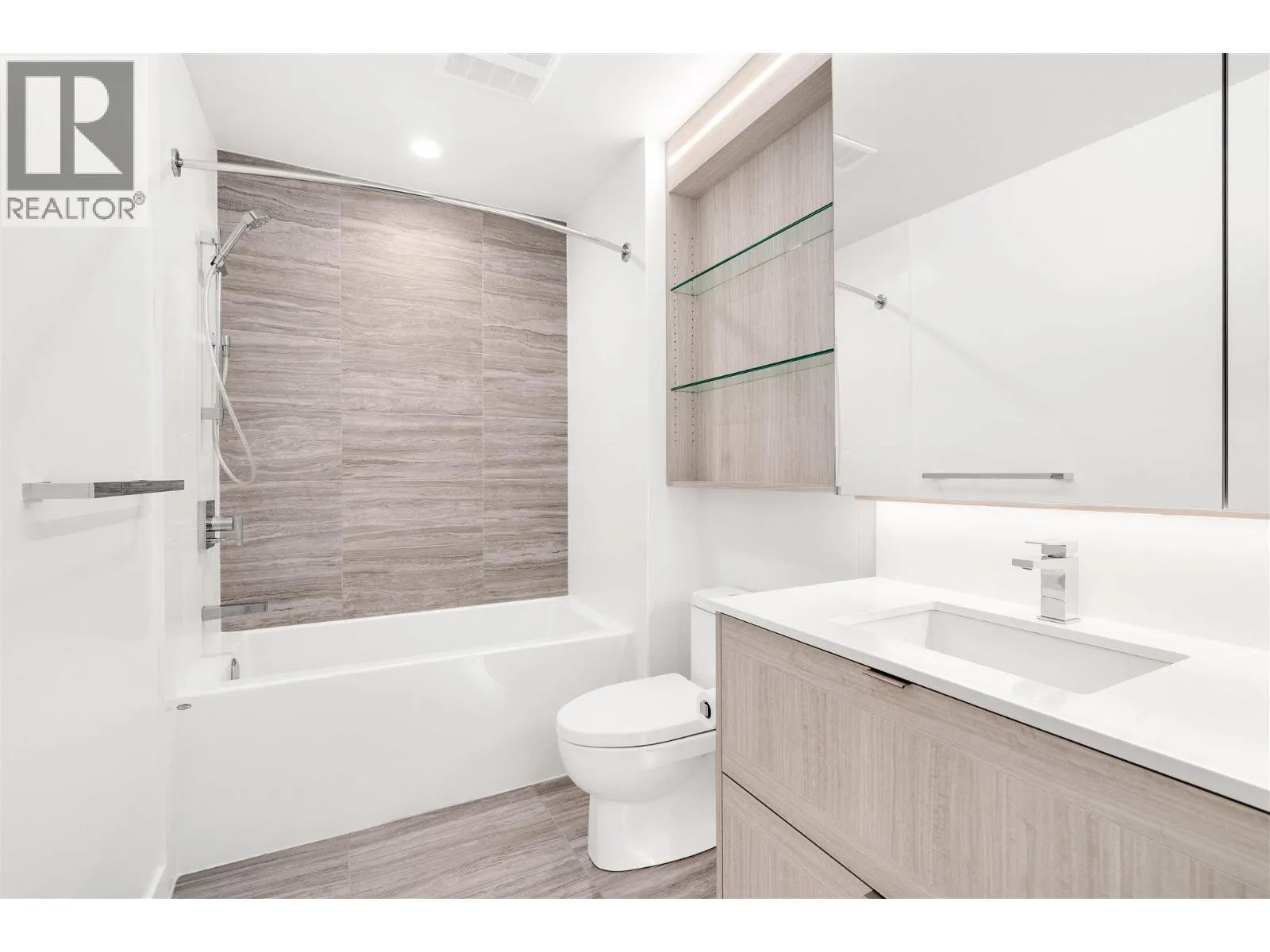 Welcome to Lumina Waterfall, a newly completed residence in the heart of Brentwood, designed by Chris Dikeakos Architects. This north-facing l Bed/1 Bath home features central A/C, premium Bosch appliances, and floor-to-ceiling windows that bring in plenty of natural light. Enjoy unmatched convenience just steps to Whole Foods, Costco, and over 60 shops and restaurants. Residents have access to top-tier amenities including 24-hour concierge, gym, yoga studio, guest suites, and a dining hall with chef's kitchen. Located right by Brentwood SkyTrain Station for easy access across Metro Vancouver. Includes l parking and 1 locker. Pet & rental friendly. Some Pictures are Virtual Staged. (id:27476)