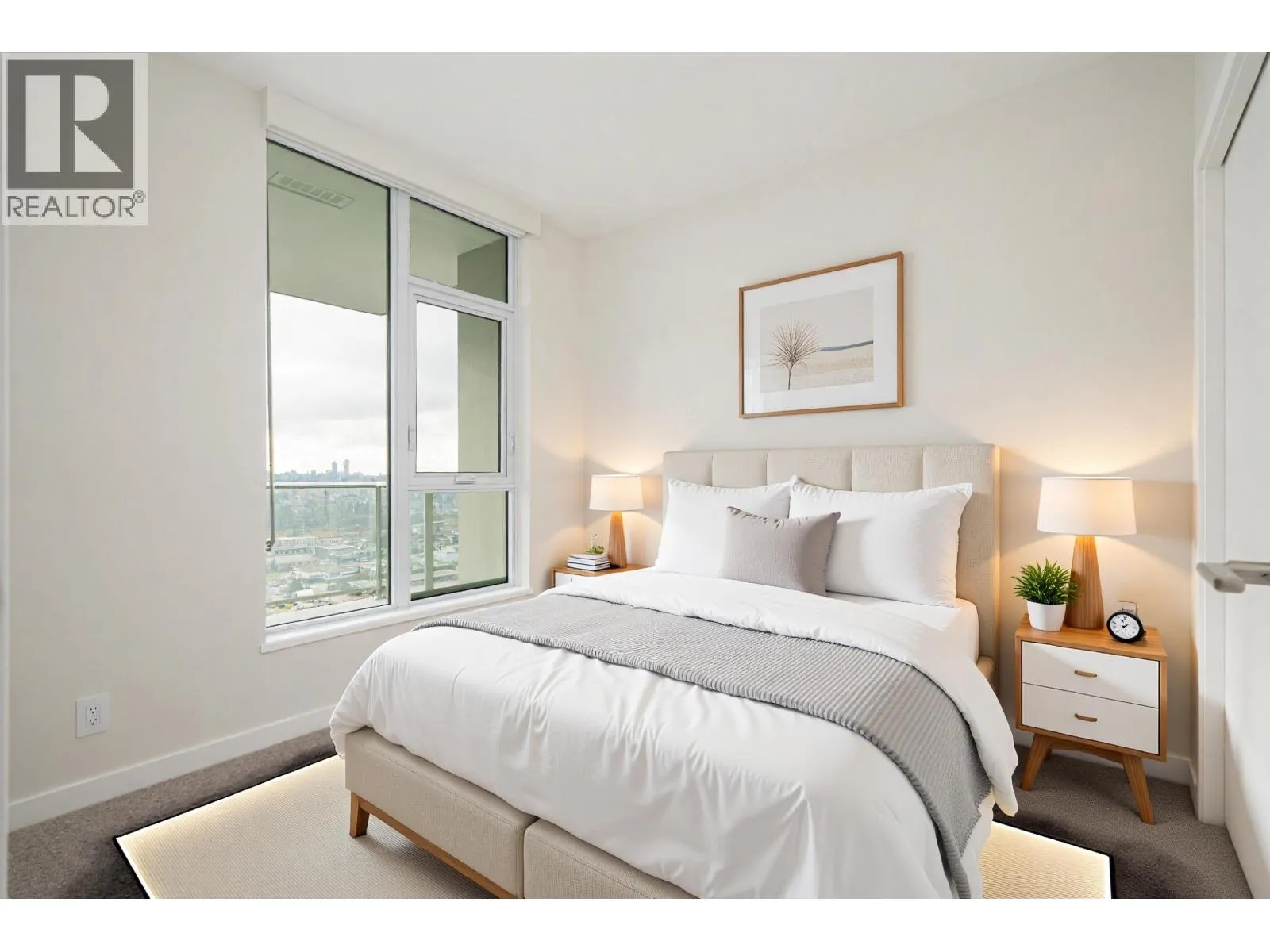 Experience elevated urban living at Gilmore Place Tower 3. Perched on the 32nd floor, this sophisticated 1-bedroom home features the sought-after A9 floor plan with 522 sq. ft. of thoughtfully designed space and a private balcony showcasing stunning North Shore Mountain views. Enjoy a sleek European-style kitchen with integrated Bosch and Blomberg appliances, 5-burner gas cooktop, and composite stone countertops. Highlights include wide-plank flooring, 9´ ceilings, a spa-inspired 4-piece bath, and year-round heating and cooling. Residents enjoy access to 75,000 sq. ft. of premium amenities, including pools, fitness center, bowling alley, golf simulators, and concierge, just steps to SkyTrain. **First Showings: Mon. March 30** (id:27476)