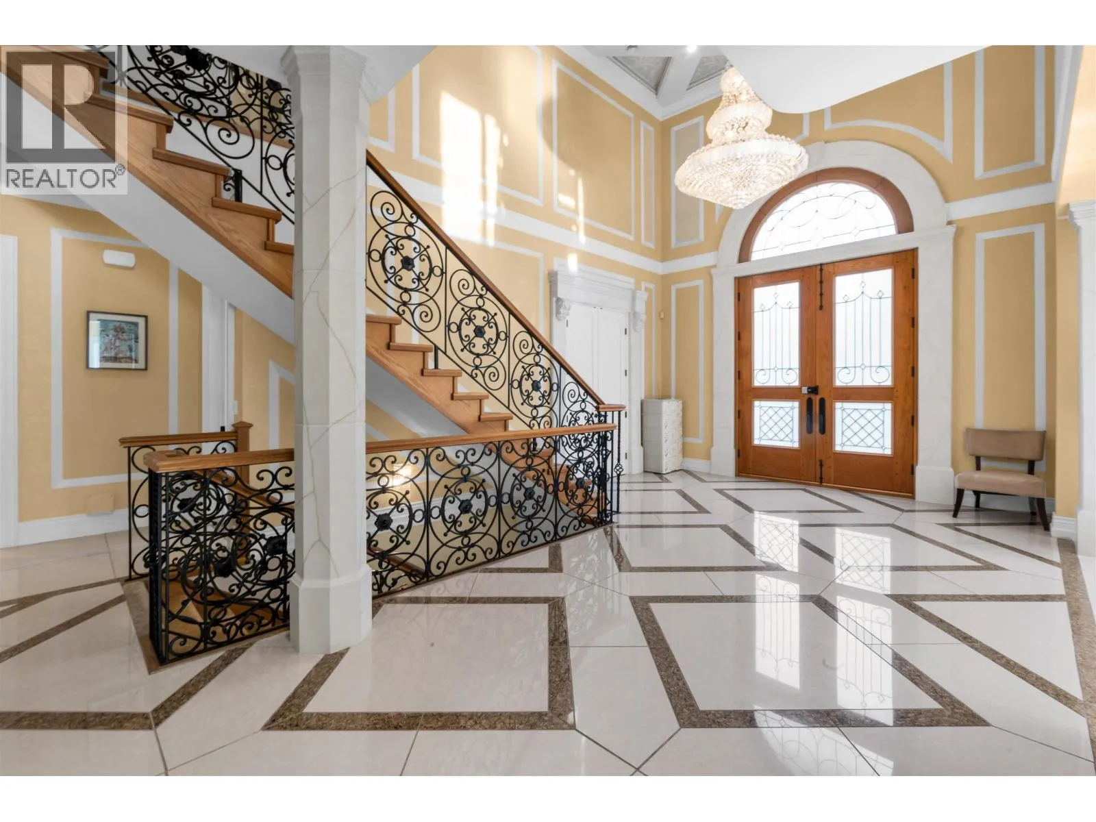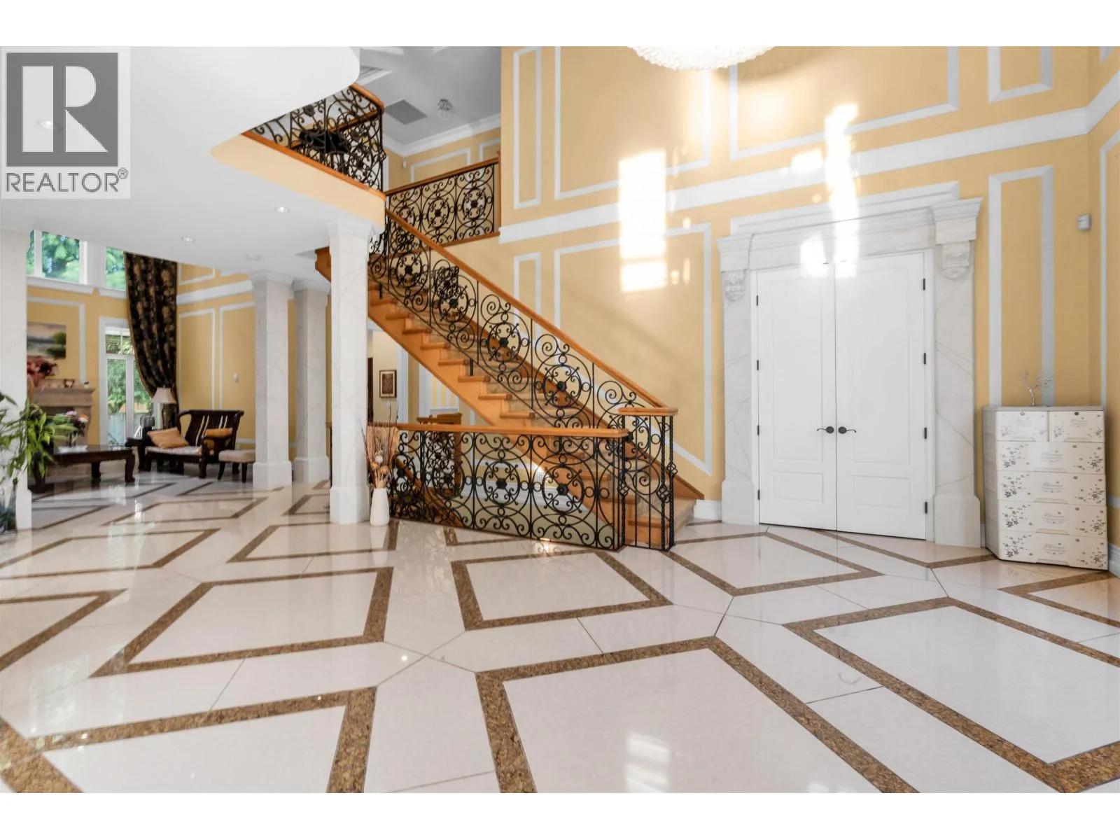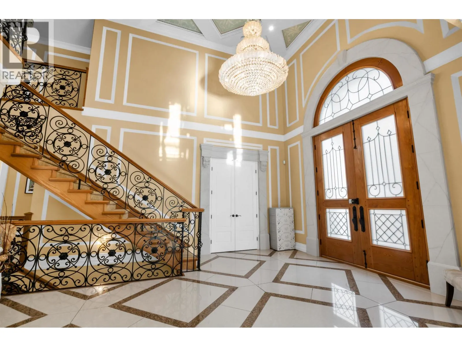 A breathtaking signature residence, meticulously designed and crafted by Jenia Design. This architectural masterpiece showcases premium European craftsmanship and the finest materials throughout. Welcoming you is a stunning, hand-crafted white oak front door-measuring 14 feet high and 7 feet wide-book-matched in a three-layer design. Step inside to a grand 20-foot entry hall adorned with detailed relief motifs on every wall. The space is finished with tempered porcelain tile flooring that reflects the ornamental coffered ceiling above, highlighted with 24-carat gold leaf accents. Pass through marbleized, hand-crafted columns and pilasters into a soaring 20-foot living room featuring an elegant stone fireplace. And this is only the beginning.Call now to arrange your private viewing. (id:27476)
