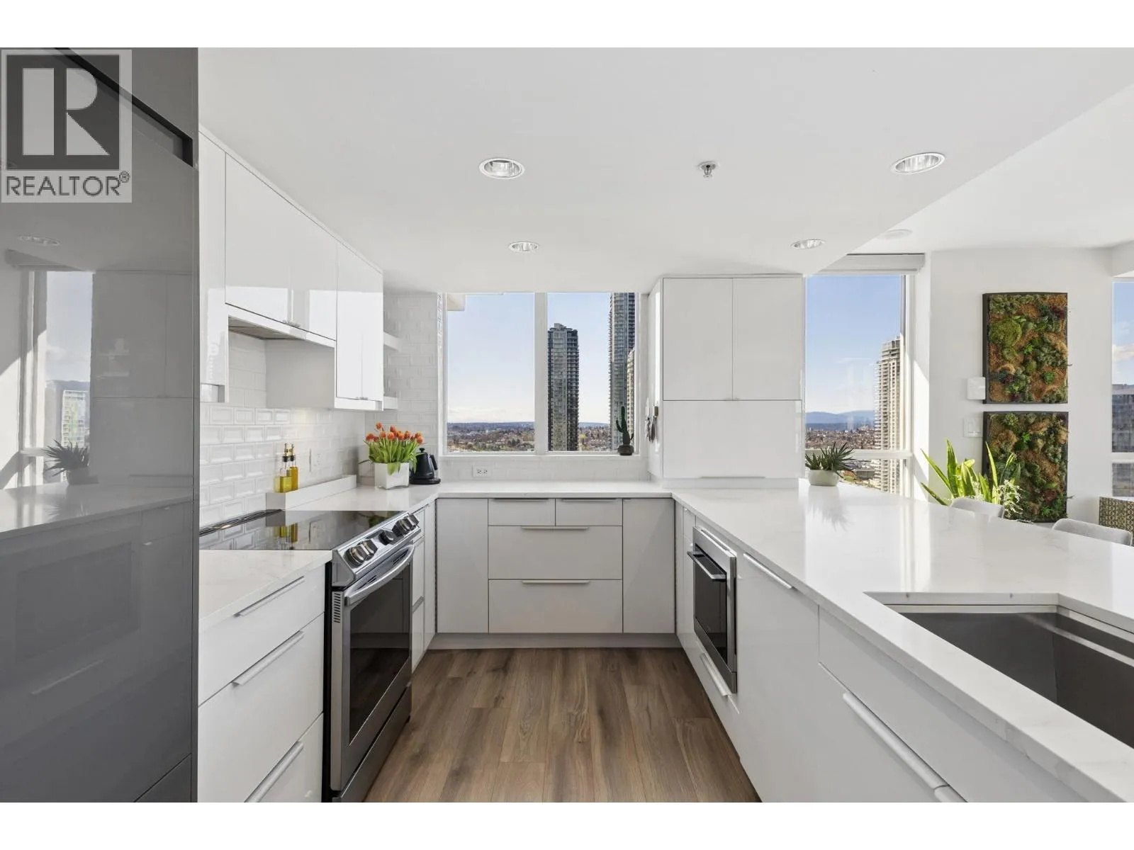 RARE-The largest and most prestigious penthouse at Mosaic at Renaissance Towers. This fully renovated 1,640 sqft residence offers refined elegance and exceptional functionality, ideal for both everyday living and sophisticated entertaining. Featuring 3 bedrooms, 2 bathrooms, and 3 balconies totaling 350 sqft of outdoor space. Thoughtfully redesigned with a designer kitchen (high-end appliances), spa-inspired bathrooms, custom built-ins, dedicated workstation, and premium flooring throughout. Bright, open-concept plan with a striking see-through fireplace, generous storage, and a separate laundry room. Enjoy breathtaking panoramic views to the West, North, and East. A truly turn-key, one-of-a-kind residence for the most discerning buyer. (id:27476)