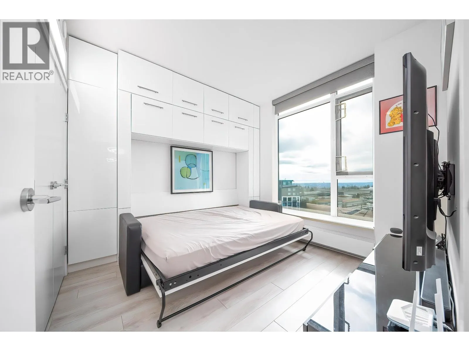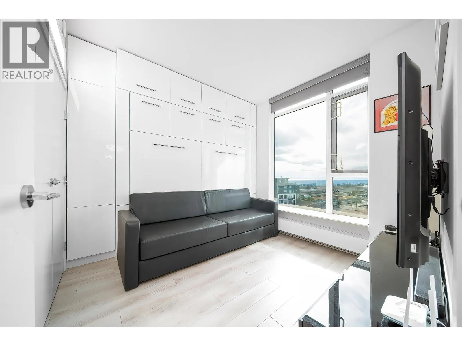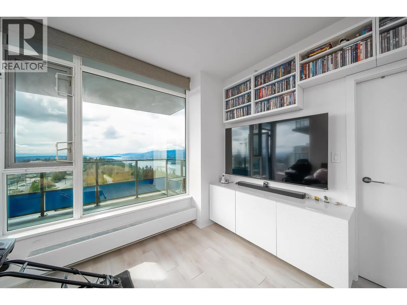 Sophistication at The Peak. Welcome to this well-maintained, upgraded 2-bed, 2-bath smart home. Unlike standard units, this residence features over $20K in premium upgrades and thoughtful design for modern living, with ocean views and stunning sunset scenery.Custom millwork maximizes space with a Murphy bed/sofa system in the primary bedroom and a Murphy bed/desk combo in the second bedroom-ideal for a home office or guest use.Enjoy Hunter Douglas PowerView® automated blinds ($6K value), upgraded laminate flooring throughout (no carpet), and a kitchen hot water faucet-adding a touch of luxury and refined living. Steps to Nesters Market and SFU transit, this home offers one of the most versatile and intelligently designed layouts. Don´t miss out!! Open house April 4&5, 11&12(Sat&Sun) 2-4pm (id:27476)