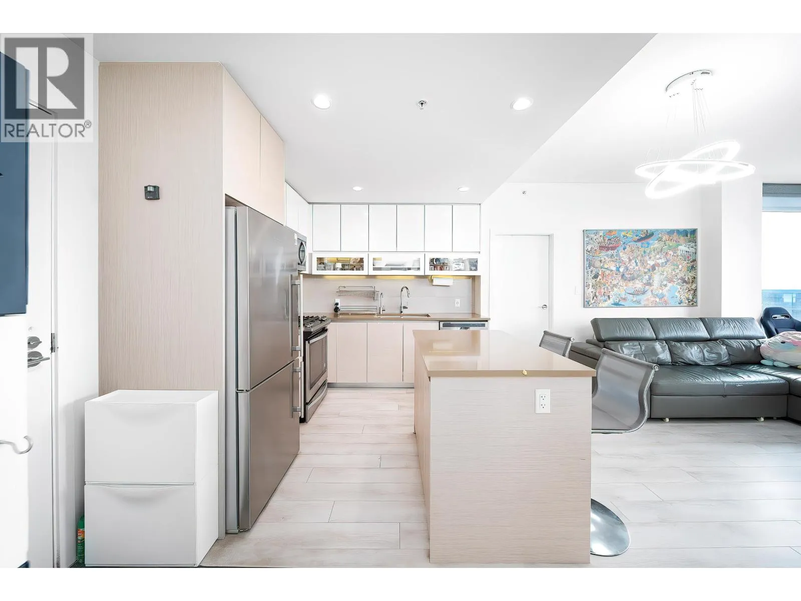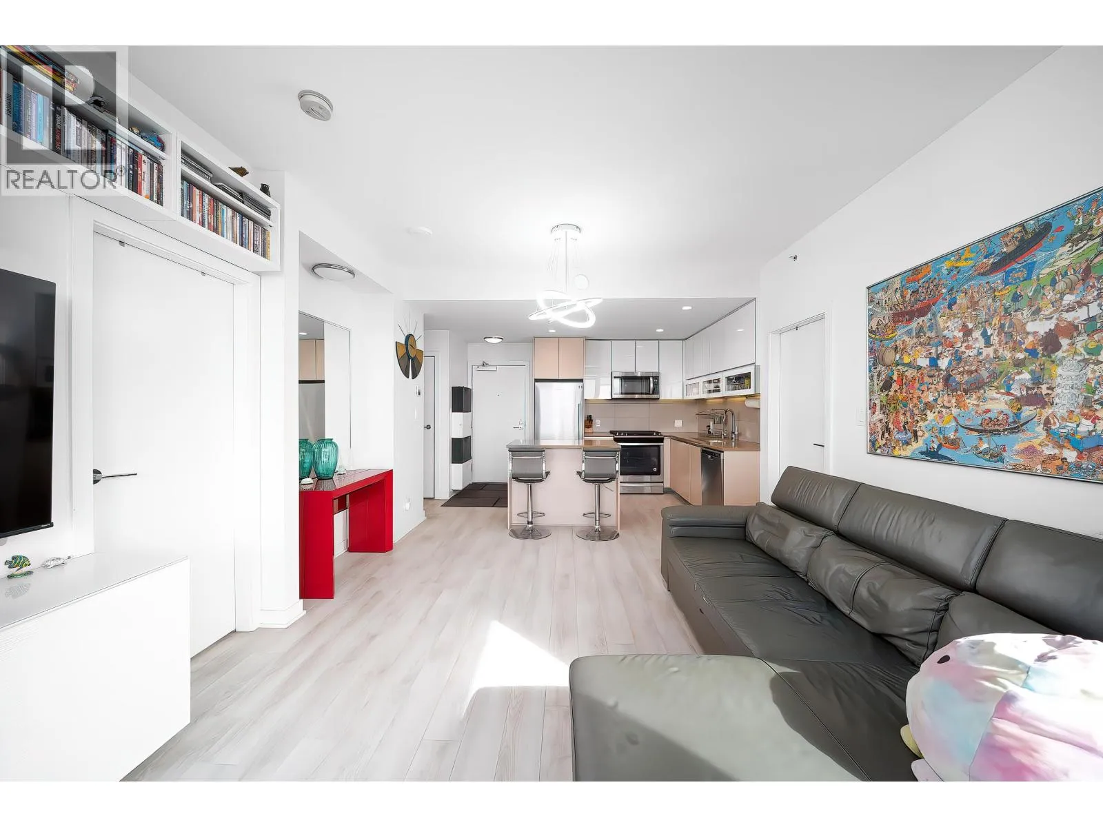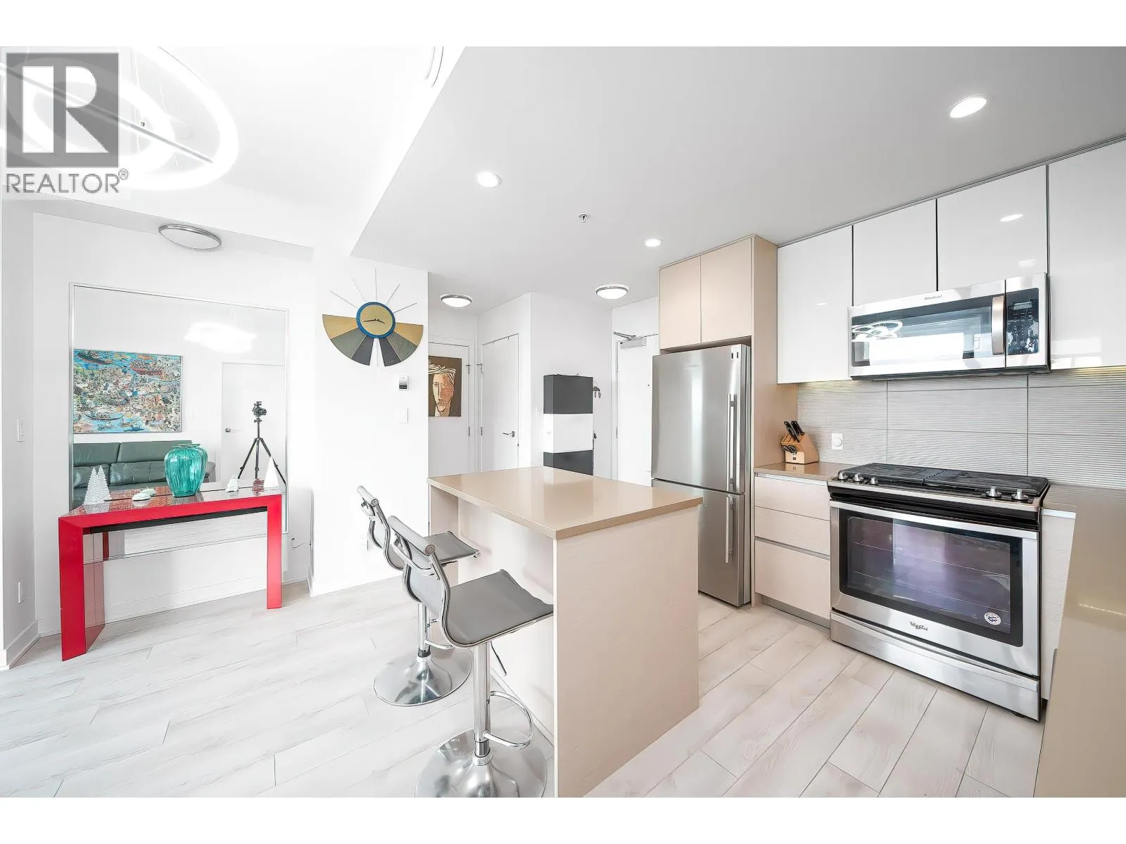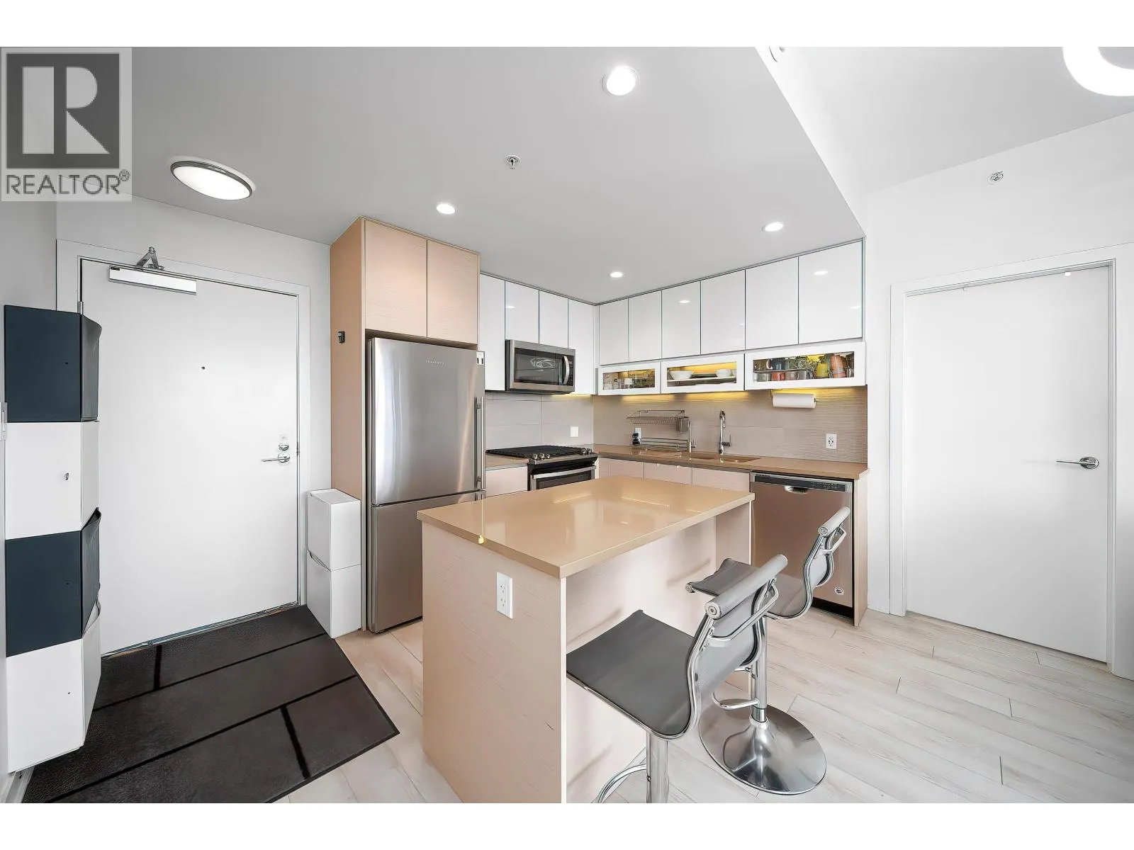 Sophistication at The Peak. Welcome to this well-maintained, upgraded 2-bed, 2-bath smart home. Unlike standard units, this residence features over $20K in premium upgrades and thoughtful design for modern living, with ocean views and stunning sunset scenery.Custom millwork maximizes space with a Murphy bed/sofa system in the primary bedroom and a Murphy bed/desk combo in the second bedroom-ideal for a home office or guest use.Enjoy Hunter Douglas PowerView® automated blinds ($6K value), upgraded laminate flooring throughout (no carpet), and a kitchen hot water faucet-adding a touch of luxury and refined living. Steps to Nesters Market and SFU transit, this home offers one of the most versatile and intelligently designed layouts. Don´t miss out!! Open house April 4&5, 11&12(Sat&Sun) 2-4pm (id:27476)