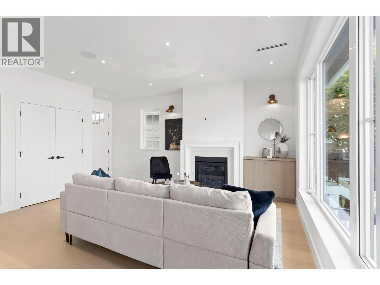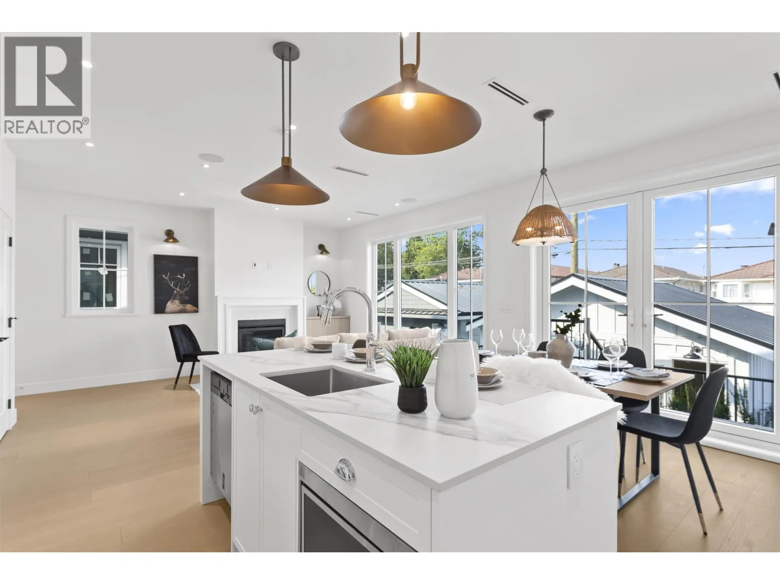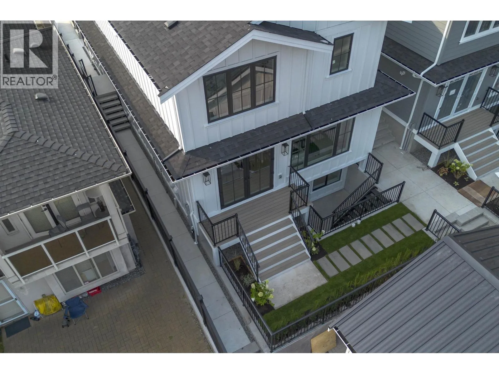 Welcome to this farmhouse-style half duplex located in the heart of Vancouver Heights, offering just under 1,800 square ft of beautifully finished living space. The open-concept main floor showcases wide plank hardwood flooring thru out the main & upper floor, stone kitchen countertops, wainscoting walls and premium built-in Fisher & Paykel appliances, plus gas washer, dryer, stove and fireplace. French doors off the main-floor open to the outdoors, built-in speakers, security cameras, HRV, gas furnace and a heat pump with A/C ensure comfort and peace of mind. Upstairs includes three bedrooms, two bathrooms, Vaulted ceilings and a bright spacious one-bedroom suite-ideal as a guest space or mortgage helper. Located just steps from vibrant The Heights shopping. (id:27476)