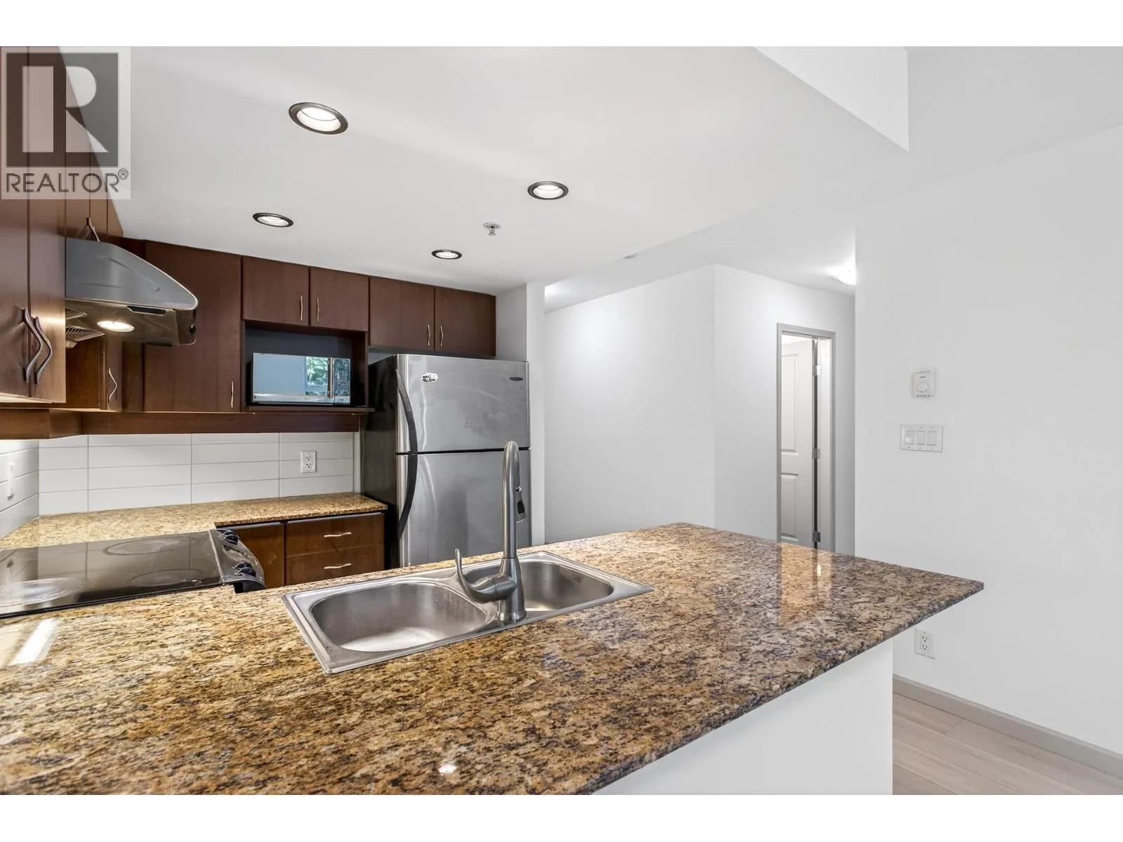 Welcome to NOVA 2!This bright SE facing unit is filled with natural light and features a highly functional 2 bedrooms + den open-concept layout.The home offers in-suite laundry, laminate flooring, freshly painted walls and ceilings, stainless steel appliances, granite countertops, and a spacious covered balcony-perfect for year-round enjoyment. Situated in one of Burnaby´s most desirable communities, this home provides access to excellent educational resources, just minutes from SFU campus, making it ideal for students, faculty, or savvy investors. The neighbourhood is quiet, safe, and surrounded by nature, yet incredibly convenient-only steps to transit, bus loop, parks, and a variety of dining options in the vibrant University Village.1 parking stall (conveniently located near elevator) (id:27476)