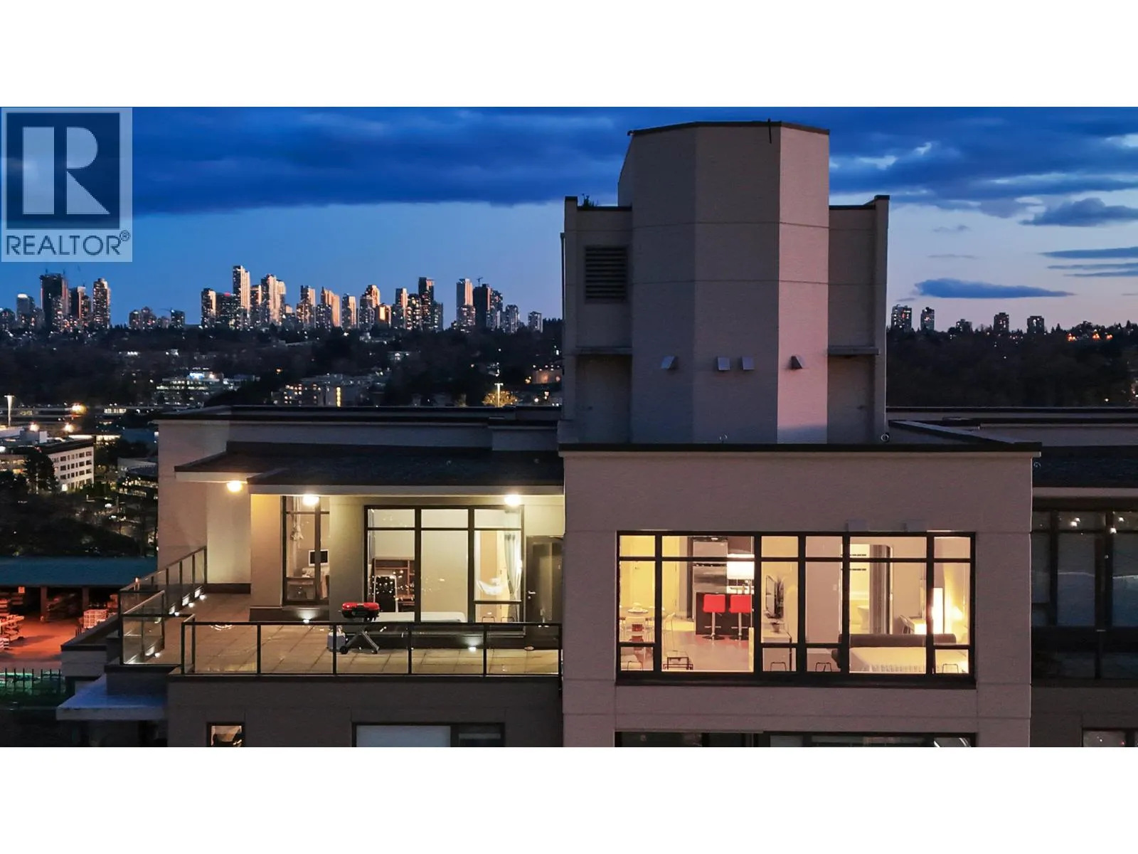 Stunning PENTHOUSE corner unit in the heart of Brentwood! Featuring a truly unique LARGE 476 sqft wraparound balcony-an incredible outdoor space perfect for BBQs, entertaining, or relaxing under the sun, moon & stars with unobstructed views above you. A rare opportunity to own a penthouse with this scale of outdoor living space in North Burnaby at this price point. This 3 bed, 2 bath home offers 1,077 sqft of bright, open living with floor-to-ceiling windows, tall ceilings, panoramic NE views of the mountains & city + a gourmet kitchen with breakfast bar. Functional layout with spacious bedrooms & abundant natural light throughout, including a generous primary bedroom with full ensuite. Move-in ready or the perfect opportunity to add your own personal updates. Amenities: gym, hot tub, sauna, rec, party rm. Includes 2 parking stalls & 1 storage locker. 4 EV stalls available. Unbeatable location directly across Gilmore SkyTrain, minutes to Brentwood Mall, shops, dining & schools. OPEN HOUSE CANCELLED Sun 1-4:30pm (id:27476)