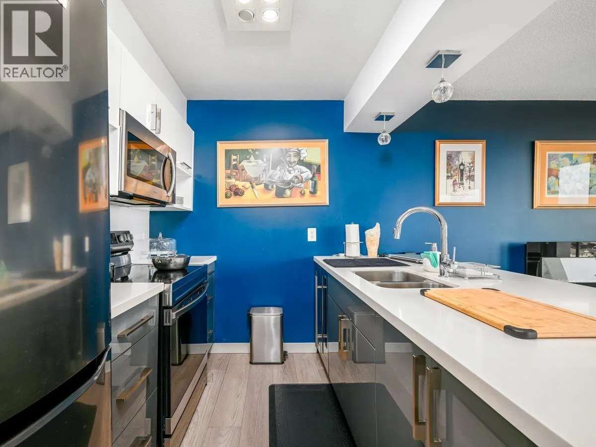 Completely renovated west facing unit in the oasis that is "Brentwood Gardens" Sparkling new kitchen, appliances, flooring , bathroom, light fixtures.This 1 bedroom and den could easily be used as a 2 bedroom. Building is in great shape with recent plumbing update, beautiful new exterior windows and doors, and recent roof.Fabulous unobstructed westerly downtown view! Enjoy the fabulous amenities that the neighbourhood has to offer.Short walk to Amazing Brentwood and skytrain station.1 parking and storage locker included. (id:27476)