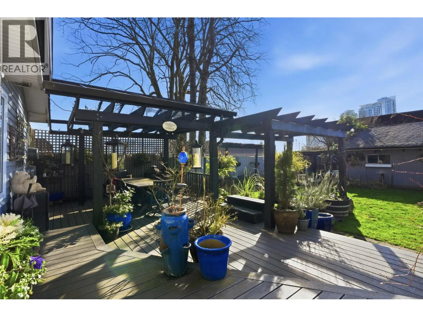 Updated BUNGALOW on quiet street & private, sunny 7524 square ft WEST lot with long term DEVELOPMENT POTENTIAL - OCP allows for R4 zoning (6stories - tbc). Well maintained rancher with great floor plan. Kitchen with white cabinetry & newer appliances (1yr old) opens to family rm with cozy gas fireplace & door to back gardens. Living rm is spacious with cozy wood f/p. Updates include windows (5yr), roof(10yr) and flooring. Elegant crown molding paired with California shutters add timeless style and charm. Entertainer's backyard features wood deck with pergola, covered stone patio, lush lawn for kids & pets & space for growing your own vegetables. Adjacent lot (empty) owned by City of Bby. Walk to schools, transit, stores, restaurants, Edmonds Community Ctr & park. (id:27476)