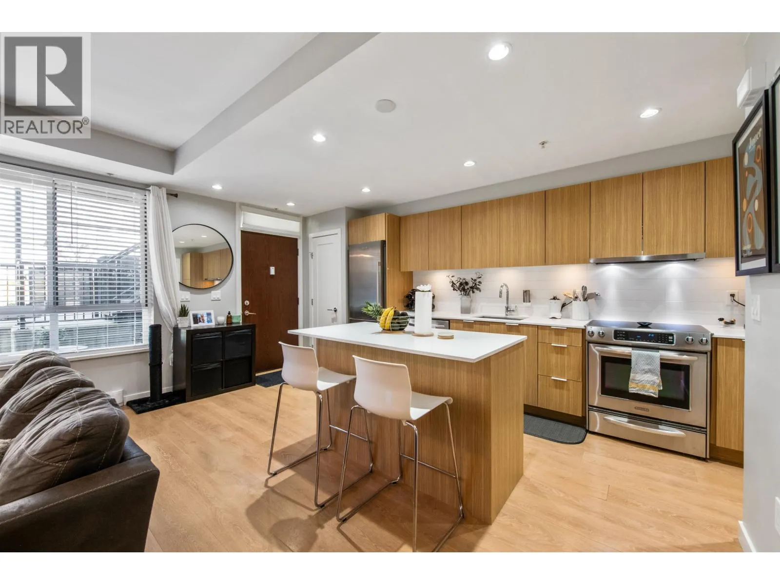 Great starter home with lots of upgrades. This move in ready unit will not disappoint! Prime location with short walk to restaurants, public transit including Joyce or Patterson skytrain stations. City living, with bike paths and Central Park nearby. 88% walk score!! Breakfast bar, stainless steel appliances, quartz countertops, generous cabinetry for storage. Building amenities includes car wash station, guest parking, EV charging stations and landscaped grounds. Upgrades include new washer and dryer, new paint and privacy sliding door to separate bedroom to living room, plus living room blinds. Comes with a locker and secured parking stall. Pets allowed. (id:27476)
