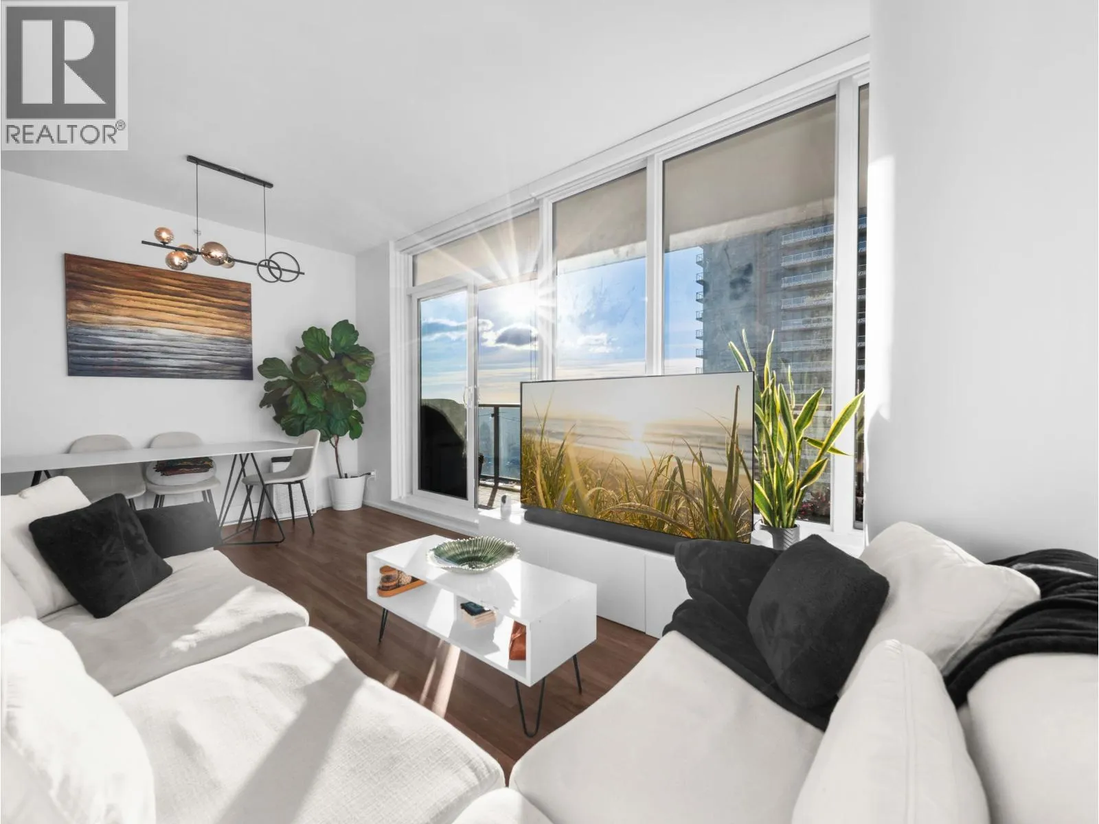 RARE high-floor corner home at The Amazing Brentwood! This 919 sqft NW-facing 2 bed 2 bath + large den (with closet) offers one of the most functional layouts in the building, plus an impressive ~220 sqft wraparound balcony-perfect for entertaining and enjoying panoramic views of Burrard Inlet, mountains & city. Bright, open-concept living with modern finishes and smart lock entry. Includes EV parking & storage locker. Residents enjoy world-class amenities and unbeatable convenience. Steps to SkyTrain, shopping & dining. Exceptional value in Brentwood! Don't miss it! (id:27476)