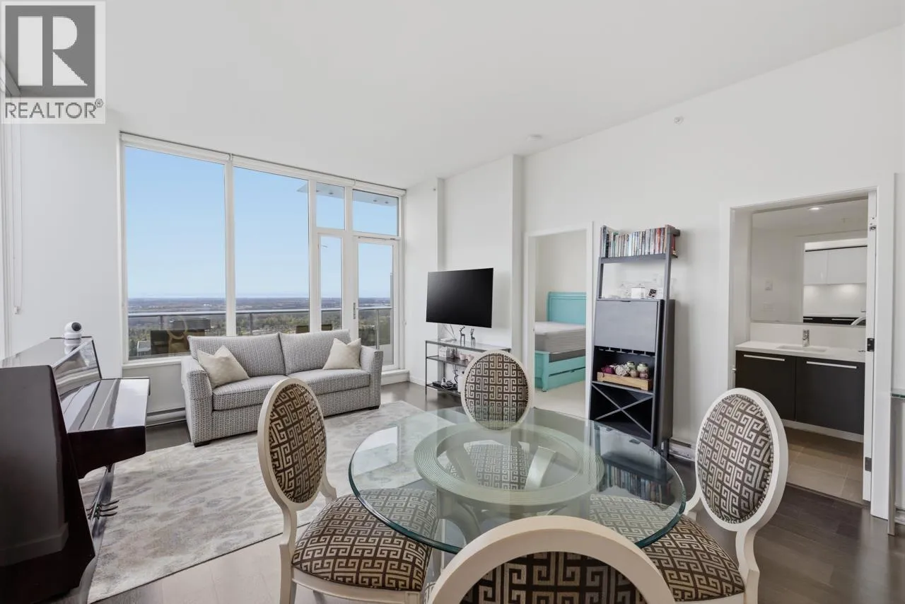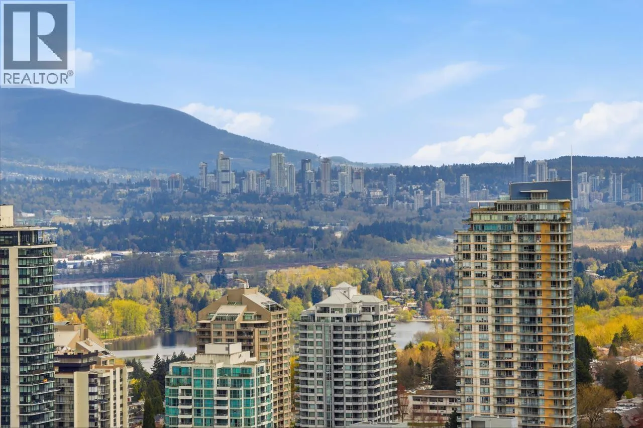 Experience elevated living in this stunning penthouse at SILVER, ideally located in the heart of Burnaby´s vibrant Metrotown. This rare corner unit offers breathtaking panoramic views with exceptional privacy. Thoughtfully designed with a smart 2 bed, 2 bath layout, featuring separated bedrooms, soaring ceilings, and expansive windows that fill the home with natural light. The gourmet kitchen is equipped with stainless steel appliances, quartz countertops, and premium finishes throughout. Enjoy access to exclusive amenities including a fully equipped fitness centre, yoga studio, study and music room, and a beautifully landscaped outdoor terrace. Just steps to Metrotown shopping, SkyTrain, restaurants, and everyday conveniences-this is luxury urban living at its finest. (id:27476)