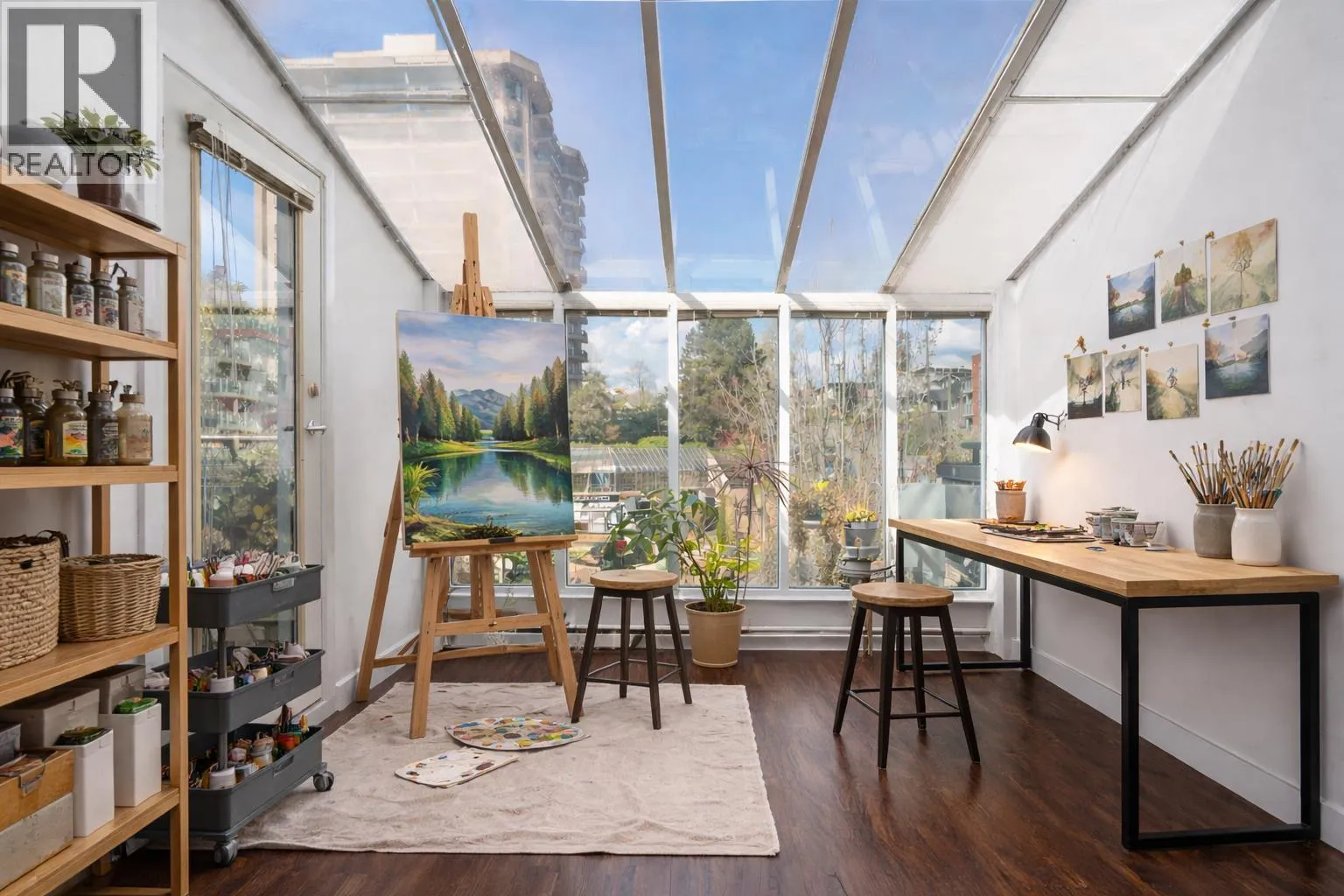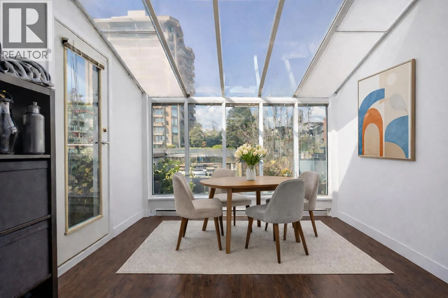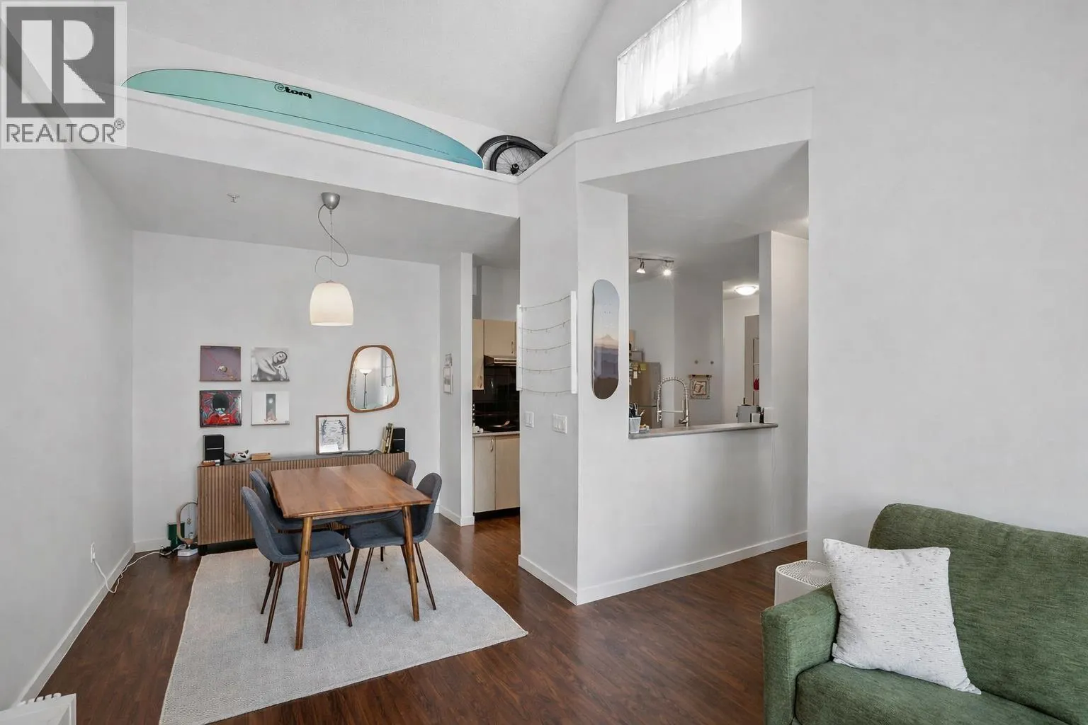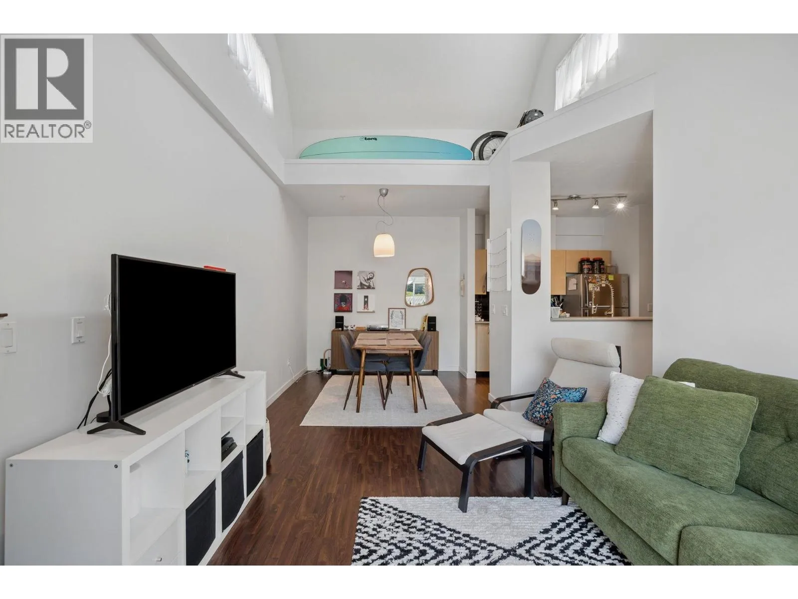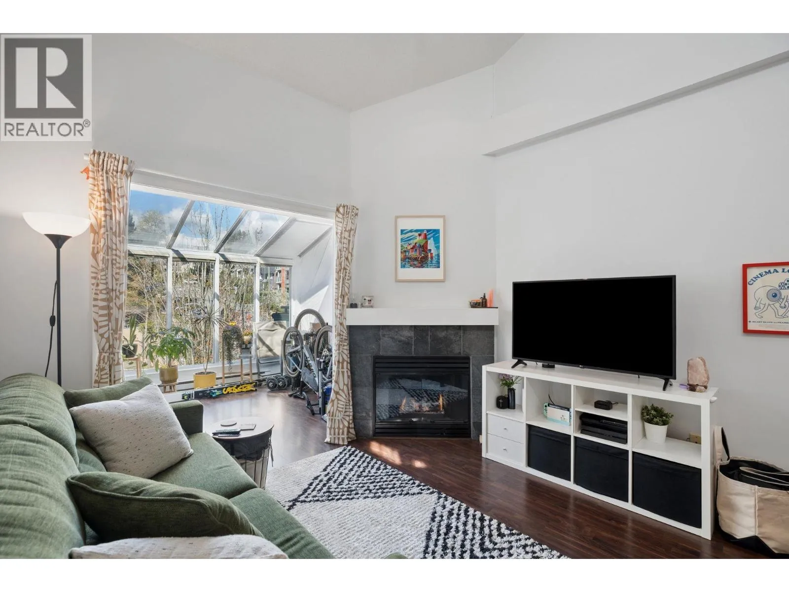 Welcome to this rarely available penthouse at well-maintained The Heights in the heart of North Burnaby! This bright & airy 2 bed home impresses with soaring vaulted ceilings & a smart 849sqft layout that truly stands out. The spacious kitchen flows effortlessly into a generous dining area-perfect for hosting-while the inviting living room is complete with a gas fireplace. Enjoy the bonus of an incredible sunroom with stunning skylights, flooding the space with natural light year-round and offering the perfect place to unwind or work from home. Also included: insuite laundry, 1 parking stall, & an oversized storage locker! Ideally located just steps to great shops, cafes, restaurants & quick access to Hwy 1-please note some photos have been digitally altered. (id:27476)