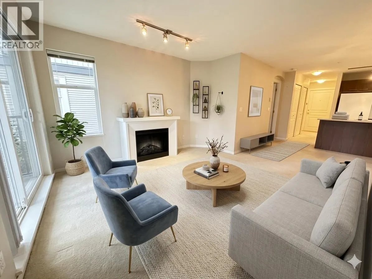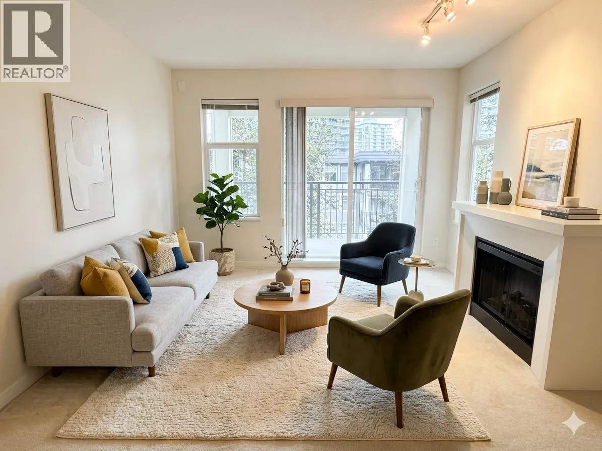 MacDonald House at Brentwood Gate, part of a thoughtfully planned community in desirable North Burnaby. This West Coast-inspired 4-storey low-rise by Ledingham McAllister offers unbeatable convenience, just steps to transit and moments from The Amazing Brentwood, Whole Foods, and only a 5-minute drive to Costco. This bright and well-designed south facing 2-bedroom, 2-bath upper unit features a spacious kitchen, abundant natural light, cozy electric fireplace, and a large balcony off the living room-perfect for relaxing or entertaining. Enjoy fantastic amenities including a fitness centre, amenity room, and a hot tub to unwind after a long day. Motivated seller. Price under BC Assessment. Open House: April 25 & 26 (Sat & Sun) 2-4 PM (id:27476)