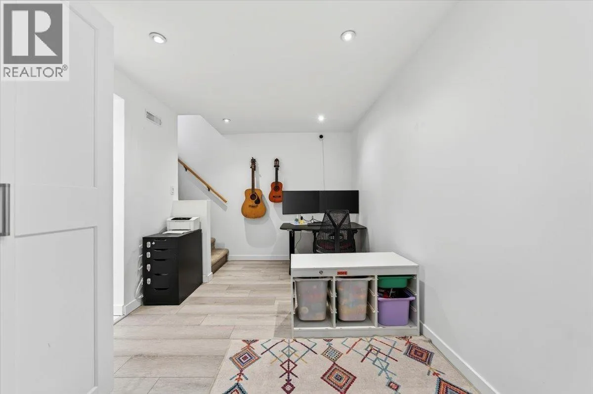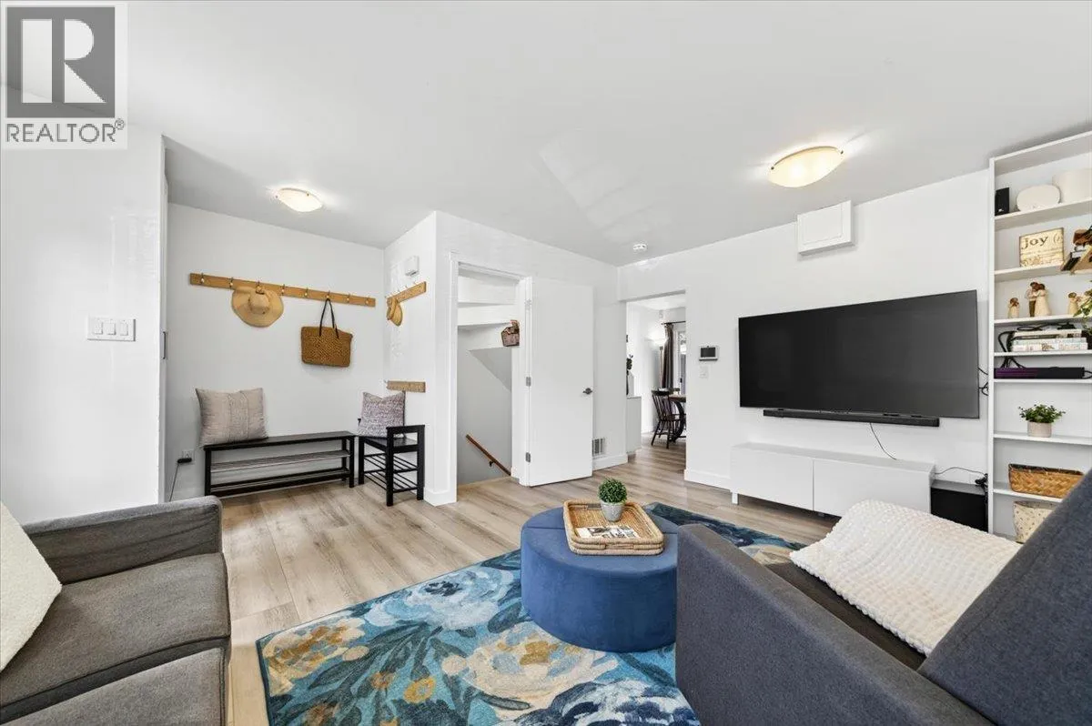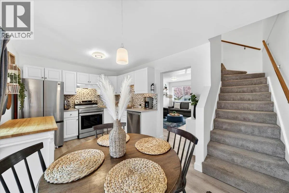 Welcome to Simon Fraser Village! This spacious end-unit townhouse in North Burnaby offers 1,325 square ft of comfortable living with 4 bedrooms and 2 full bathrooms. The updated kitchen features white cabinetry, stainless steel appliances, and flows seamlessly into the main living space with laminate flooring throughout. Upstairs includes a generous primary bedroom along with two additional bedrooms and a updated bathroom. The lower level offers a fourth bedroom, a newly renovated 3-piece bathroom (2024), and a versatile flex space ideal for a home office, playroom, or gym. Conveniently located just steps from Burnaby Mountain Secondary School and within walking distance to Lougheed Mall and Cameron Recreation Centre. Includes 1 parking stall and 3 pets welcome. Book a private showing! Open House Apr 25 from 1-3pm. (id:27476)