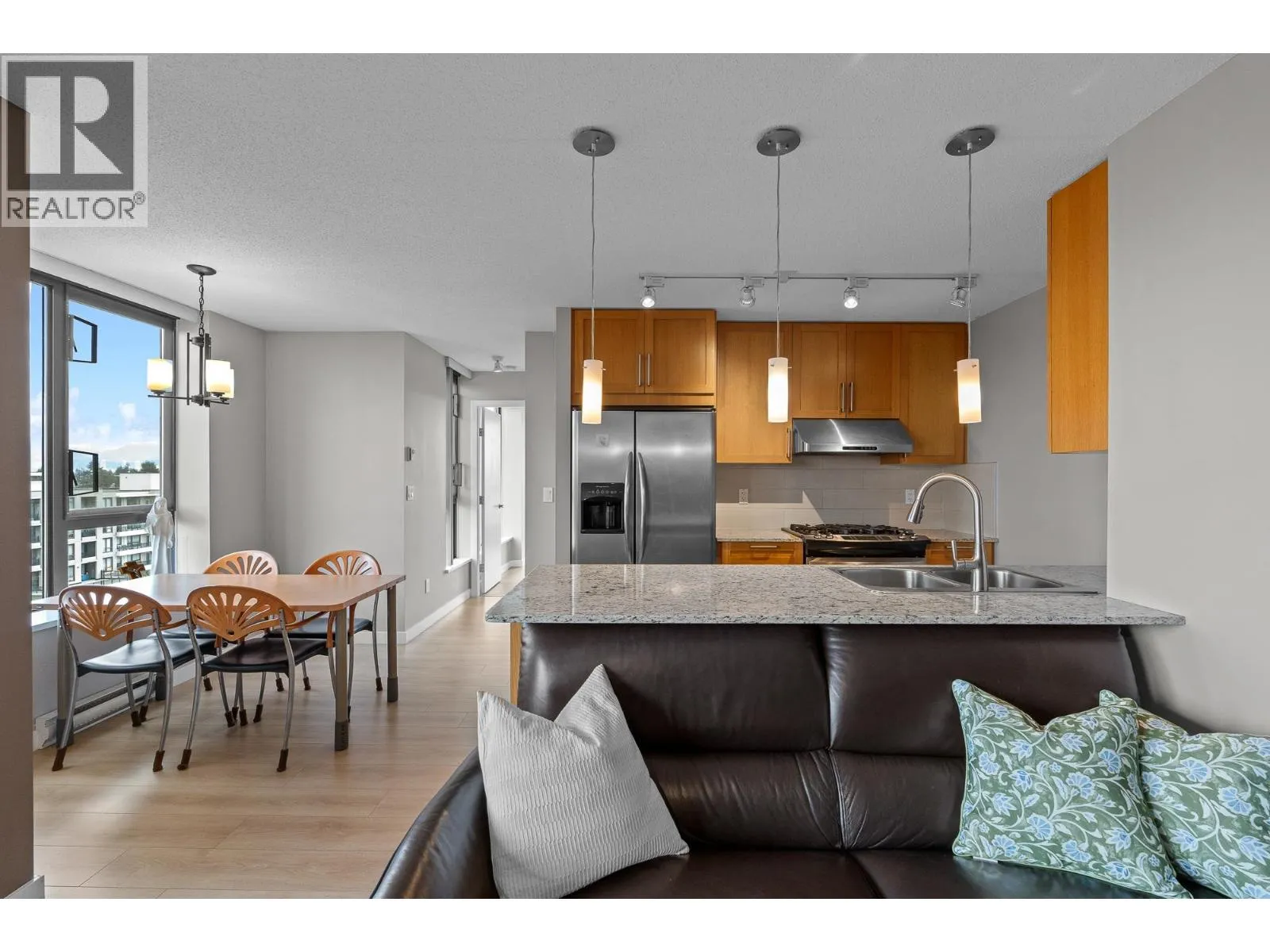Welcome to The West by Bosa at Highgate Village. 2 Bed corner unit with stunning mountain & city views. Bright open layout, spacious rooms, oversized covered balcony. Gas stove ( included in strata fee ), ample storage, in-suite laundry. Amenities: gym, hot tub, party room, landscaped courtyard, secure parking. Steps to Highgate Mall, shops, cafes, library, McDonald's, banks, Starbucks, BC liquor store, community centre & Edmonds SkyTrain. Large courtyard, perfect for walks and pets. 1 parking & 1 storage included. (id:27476)