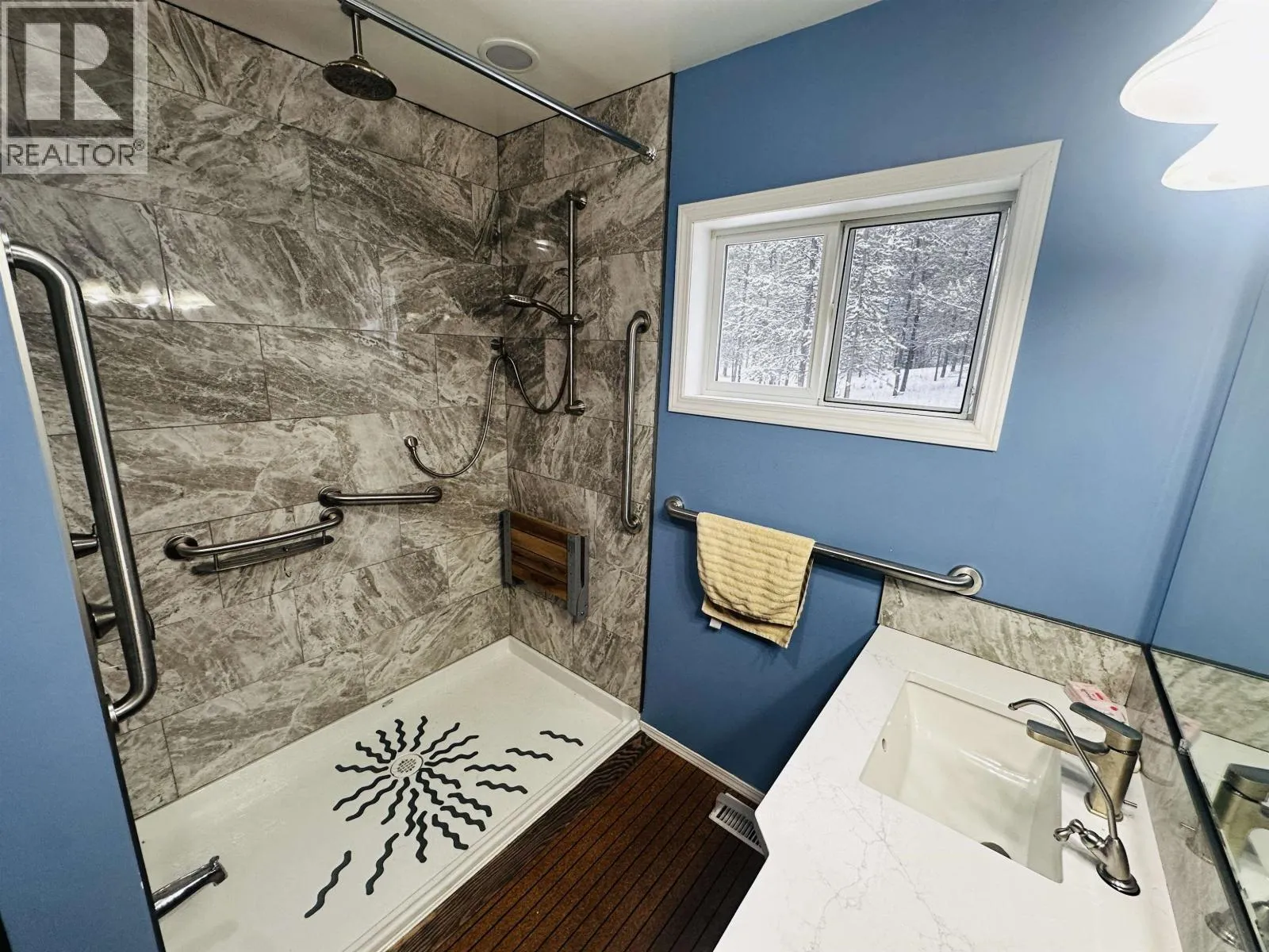 Four-bedroom, three-bath home set on over five acres in a private, treed setting just minutes from town. The main floor features a spacious open-concept layout with a beautiful newer kitchen complete with quartz countertops. Step outside to a large deck, ideal for entertaining or enjoying the peaceful surroundings. Multiple outbuildings offer excellent storage and versatility, with plenty of room to build your dream shop or expand. Enjoy quiet rural living while remaining within 10 minutes of town. (id:27476)