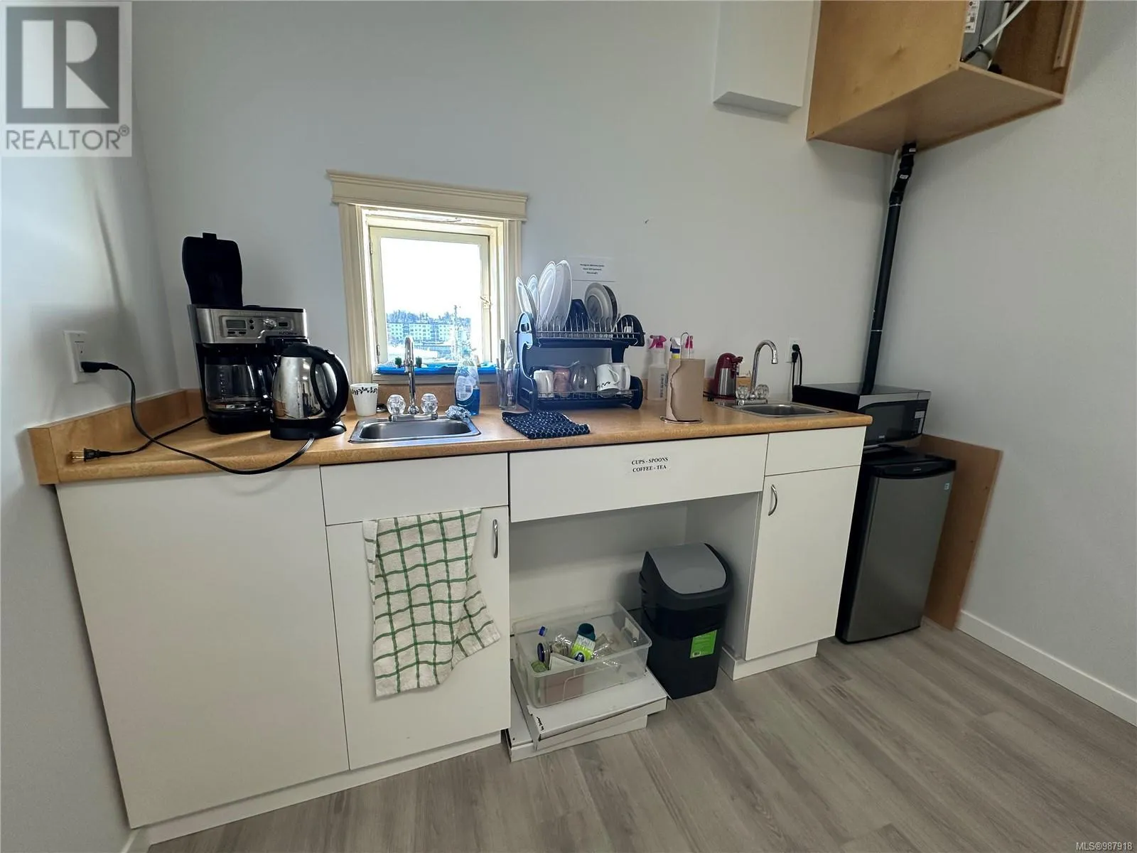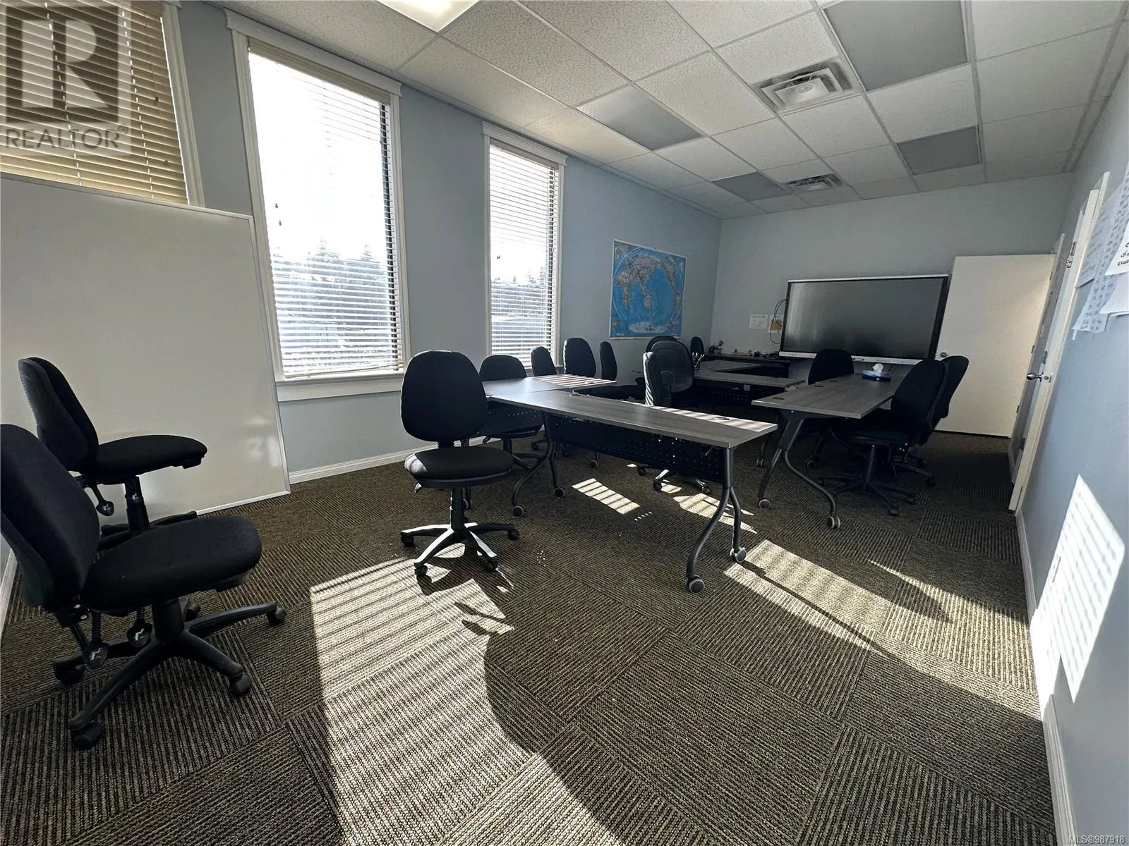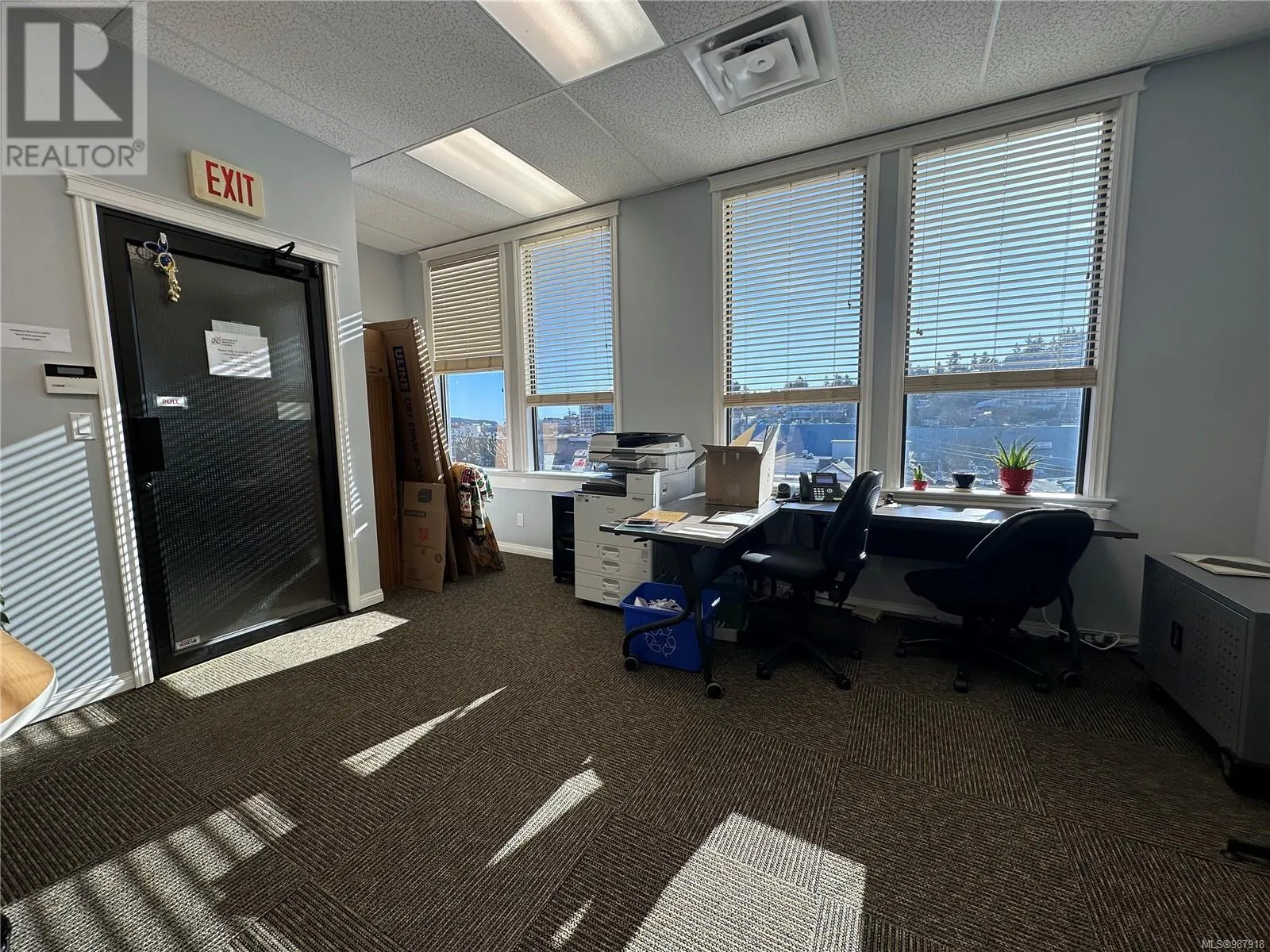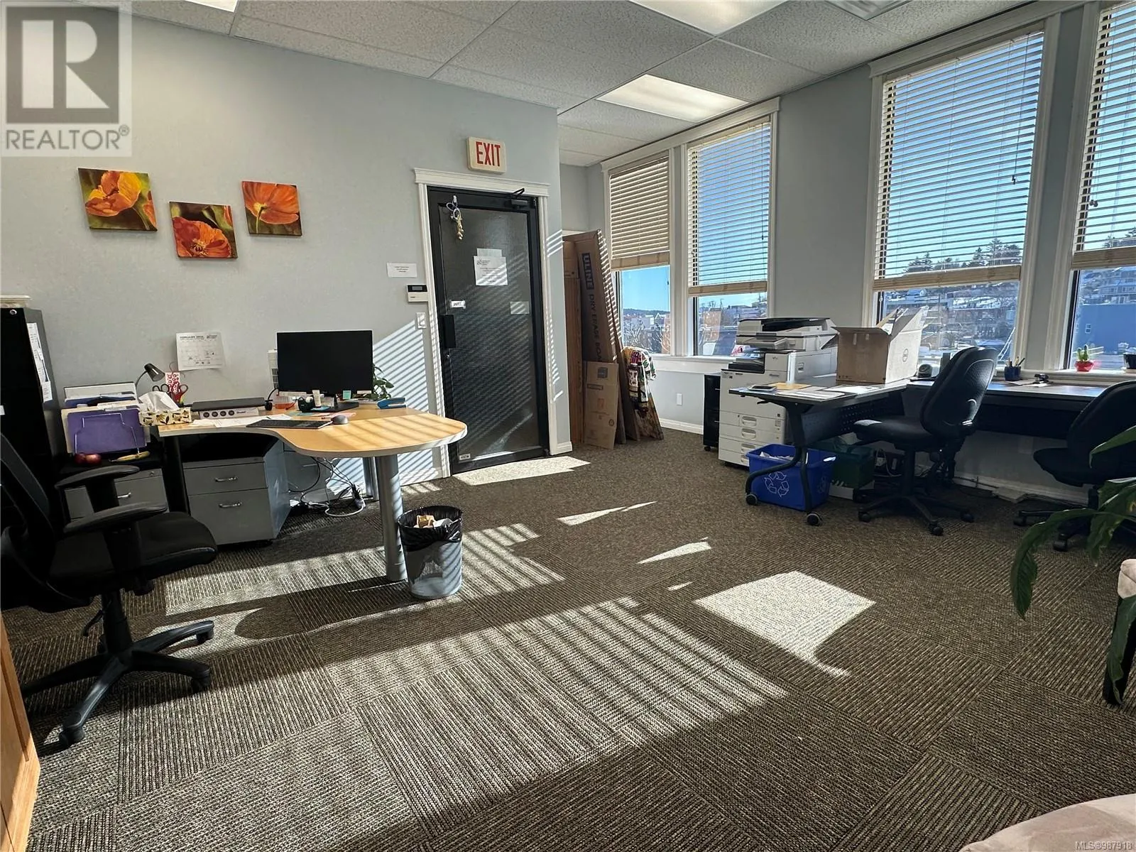 Located in the heart of downtown Campbell River, this bright and spacious 1194 sqft. third-floor office offers a professional setting with stunning city views. Situated in a well-maintained building alongside other established professional businesses, the space features elevator access, a private washroom, and a convenient kitchenette. This office is pre-wired for internet and cable, making setup quick and seamless. Leaseholders will enjoy private parking, with ample public parking available nearby for clients and visitors. This is an excellent opportunity for businesses seeking a central, accessible, and professional workspace in a thriving downtown location. (id:27476)
