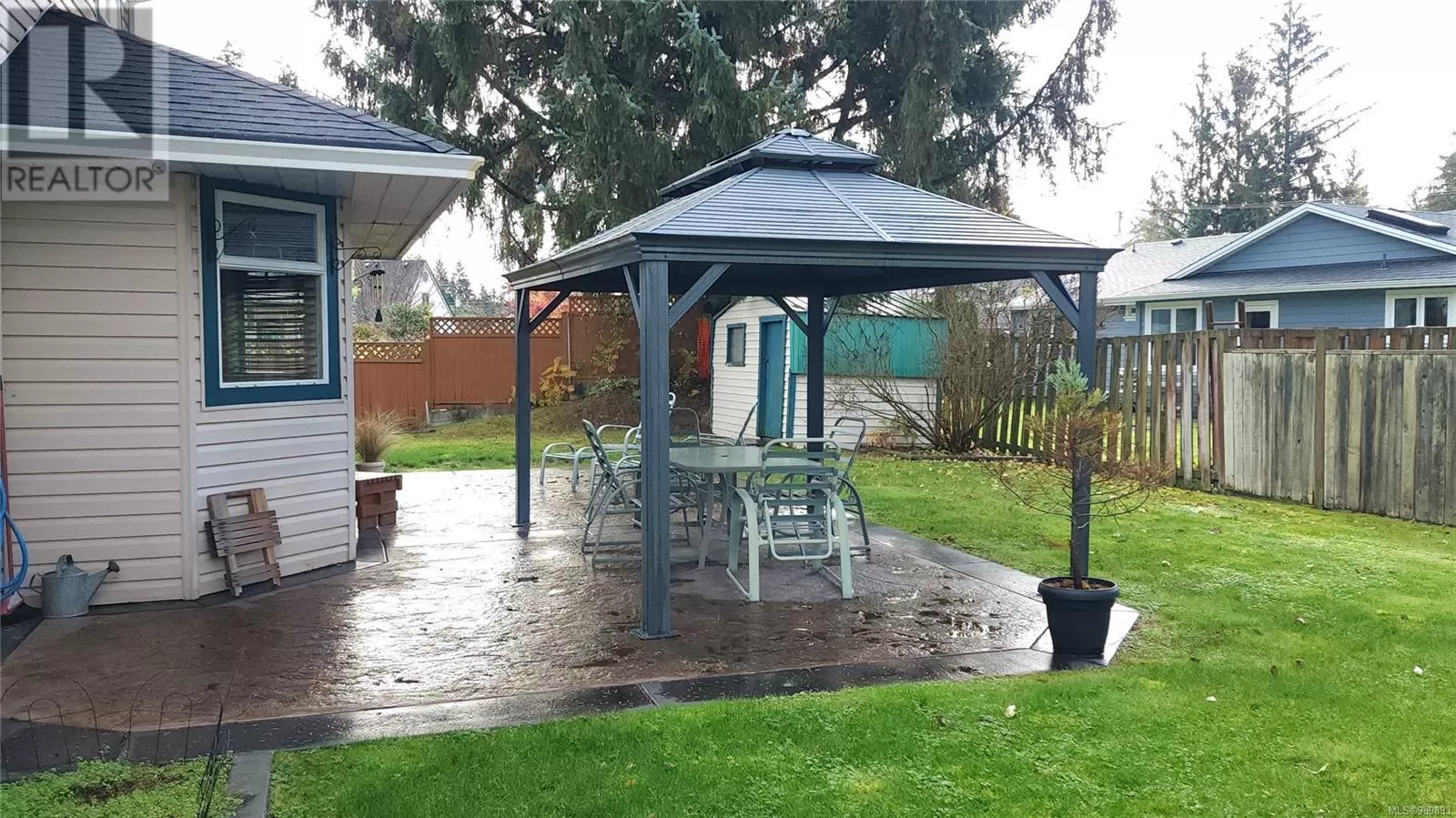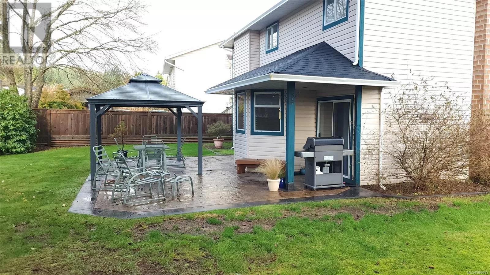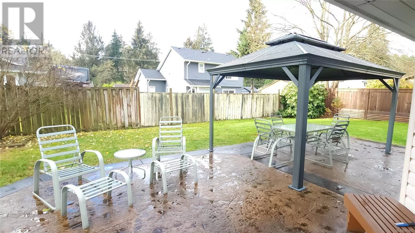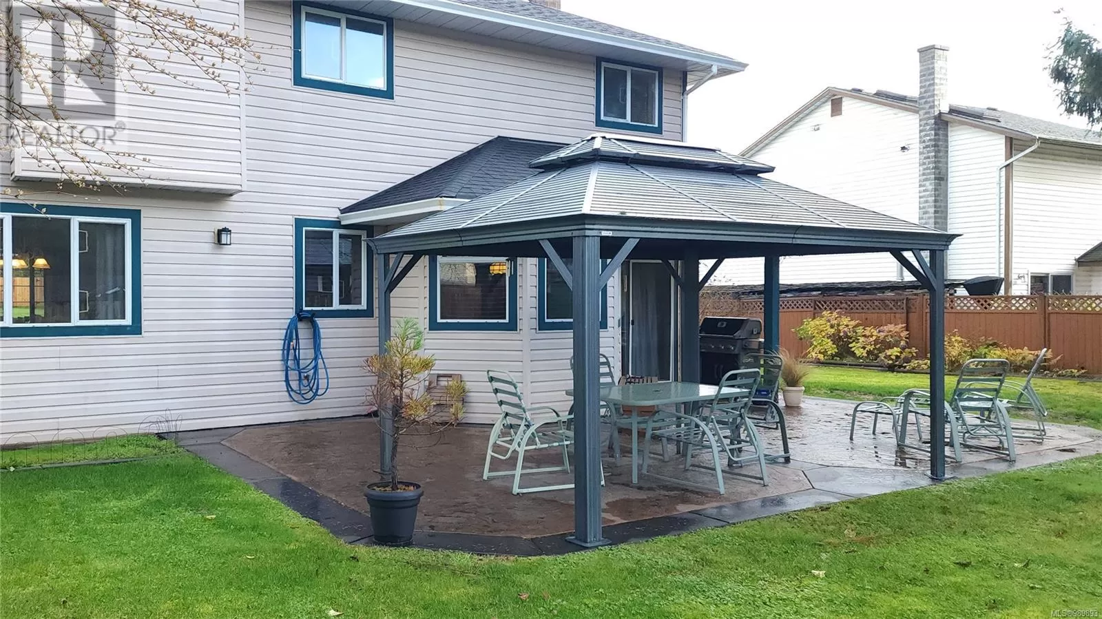 This lovely 3-bedroom + bonus room home in the sought-after Springbok subdivision of Campbell River is thoughtfully designed for family living and entertaining. The main floor welcomes you with a bright, inviting living room adjacent to the entryway, flowing into a formal dining area and walk-through kitchen. A breakfast nook and a cozy sunken family room, complete with a wood stove, create a warm, relaxed atmosphere. Patio doors open to a fenced backyard featuring a new stamped concrete patio with gazebo, ideal for outdoor gatherings. Upstairs, the open landing connects to a spacious bonus room and all three bedrooms. The primary suite includes a walk-in closet and a 3-piece ensuite, adding a touch of convenience. Located on a quiet street, this home offers easy access to nearby playgrounds, schools, shopping centres, recreation facilities, and the natural beauty of Beaver Lodge Lands. See the virtual tour at https://Don-Corder--PREC---Re-Max-Check-Realty.vr-360-tour.com/e/UwQBkyLnezs/e. (id:27476)