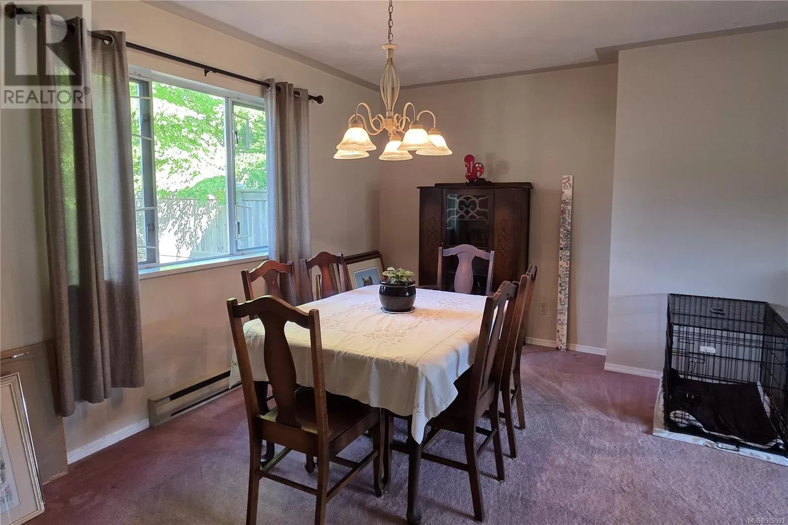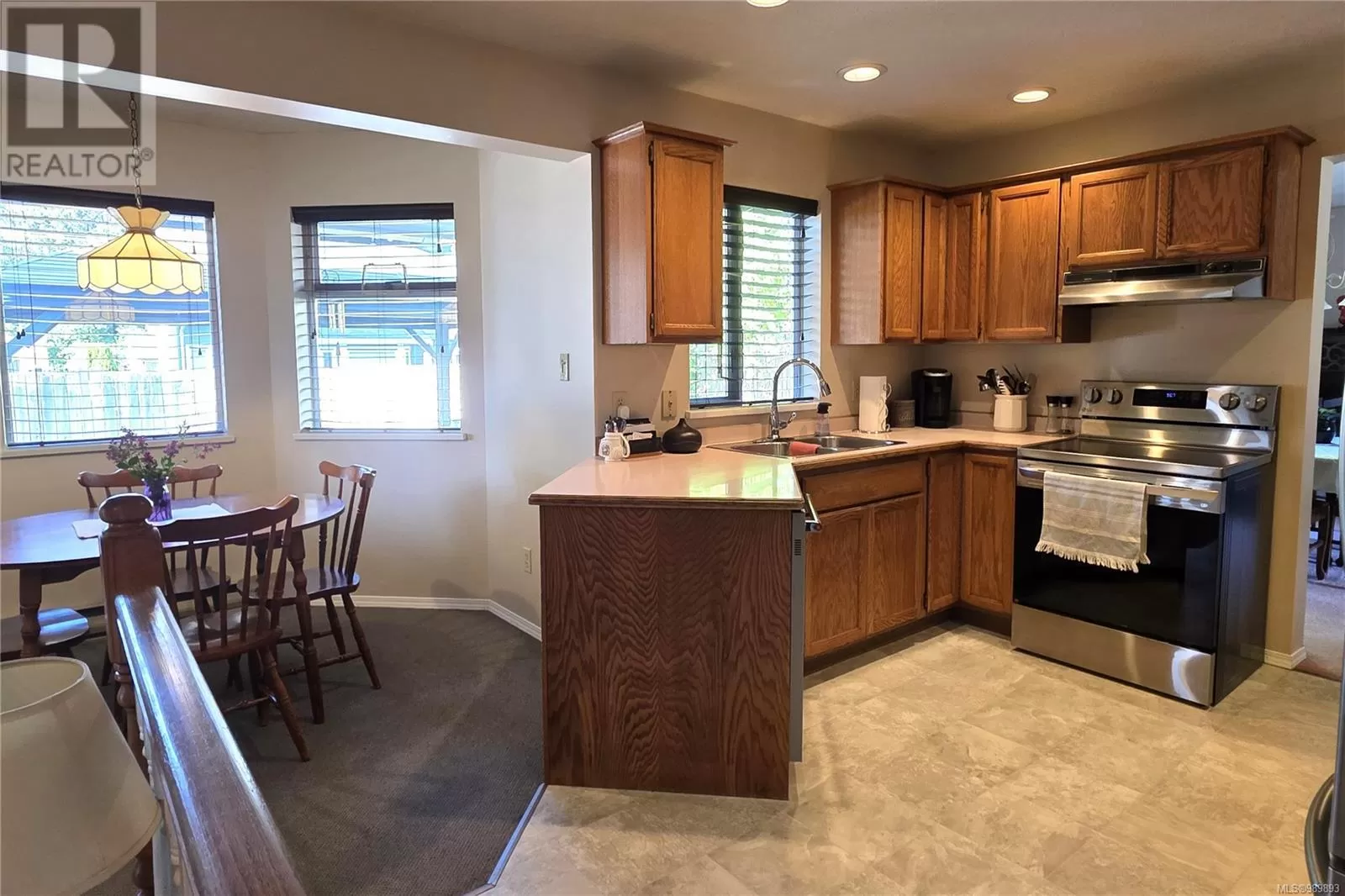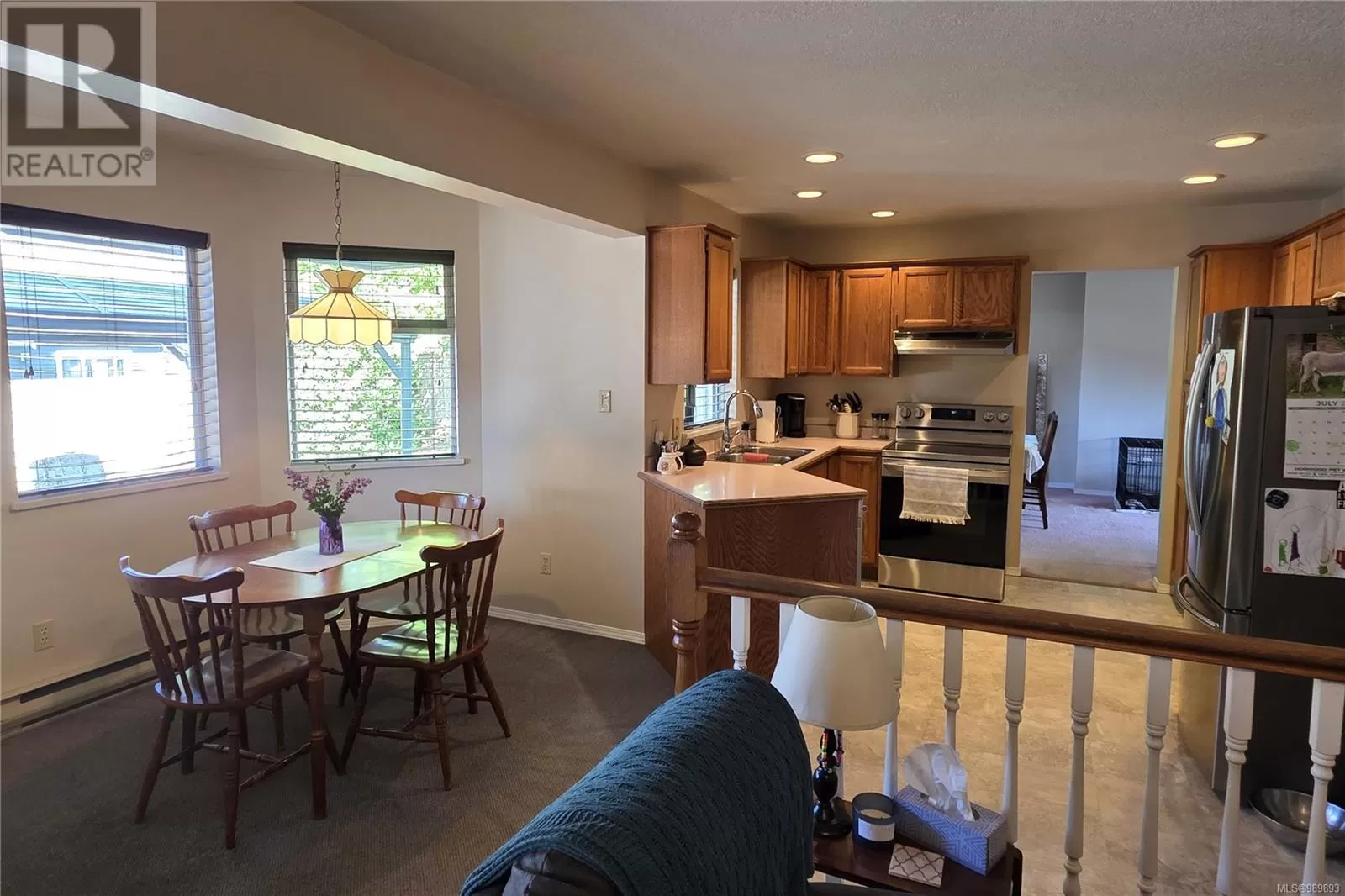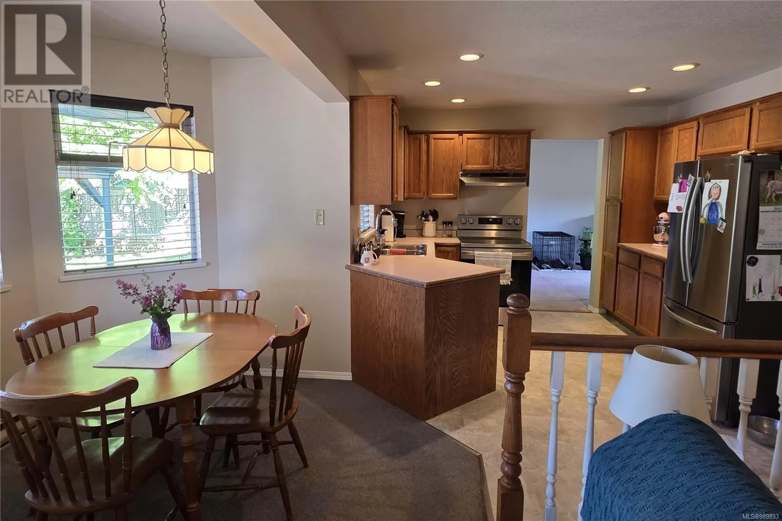 This lovely 3-bedroom + bonus room home in the sought-after Springbok subdivision of Campbell River is thoughtfully designed for family living and entertaining. The main floor welcomes you with a bright, inviting living room adjacent to the entryway, flowing into a formal dining area and walk-through kitchen. A breakfast nook and a cozy sunken family room, complete with a wood stove, create a warm, relaxed atmosphere. Patio doors open to a fenced backyard featuring a new stamped concrete patio with gazebo, ideal for outdoor gatherings. Upstairs, the open landing connects to a spacious bonus room and all three bedrooms. The primary suite includes a walk-in closet and a 3-piece ensuite, adding a touch of convenience. Located on a quiet street, this home offers easy access to nearby playgrounds, schools, shopping centres, recreation facilities, and the natural beauty of Beaver Lodge Lands. See the virtual tour at https://Don-Corder--PREC---Re-Max-Check-Realty.vr-360-tour.com/e/UwQBkyLnezs/e. (id:27476)