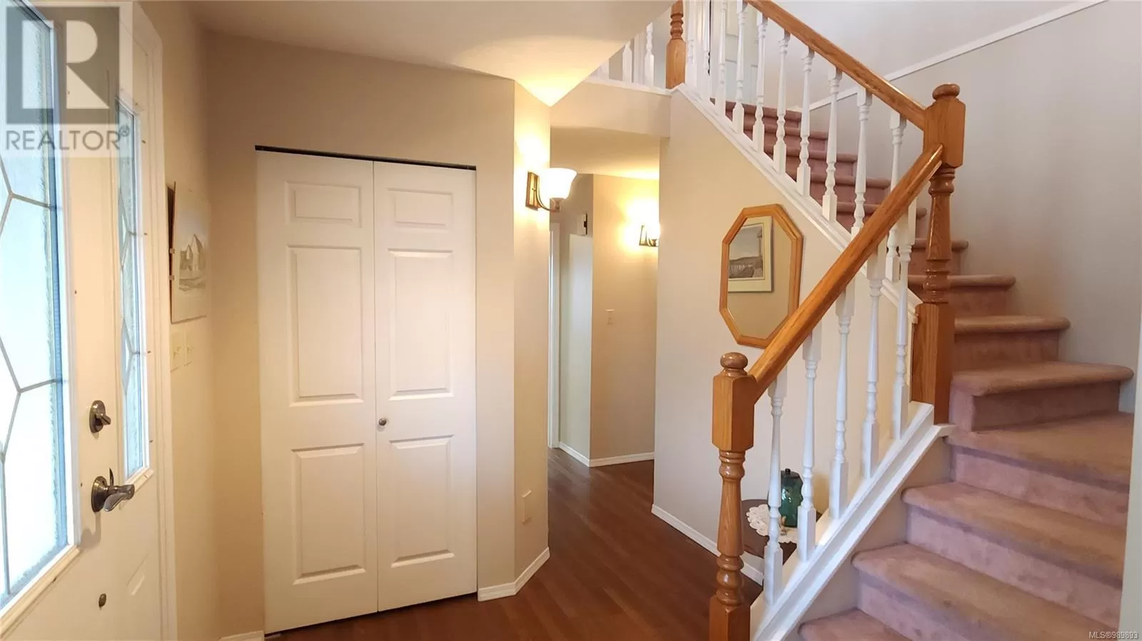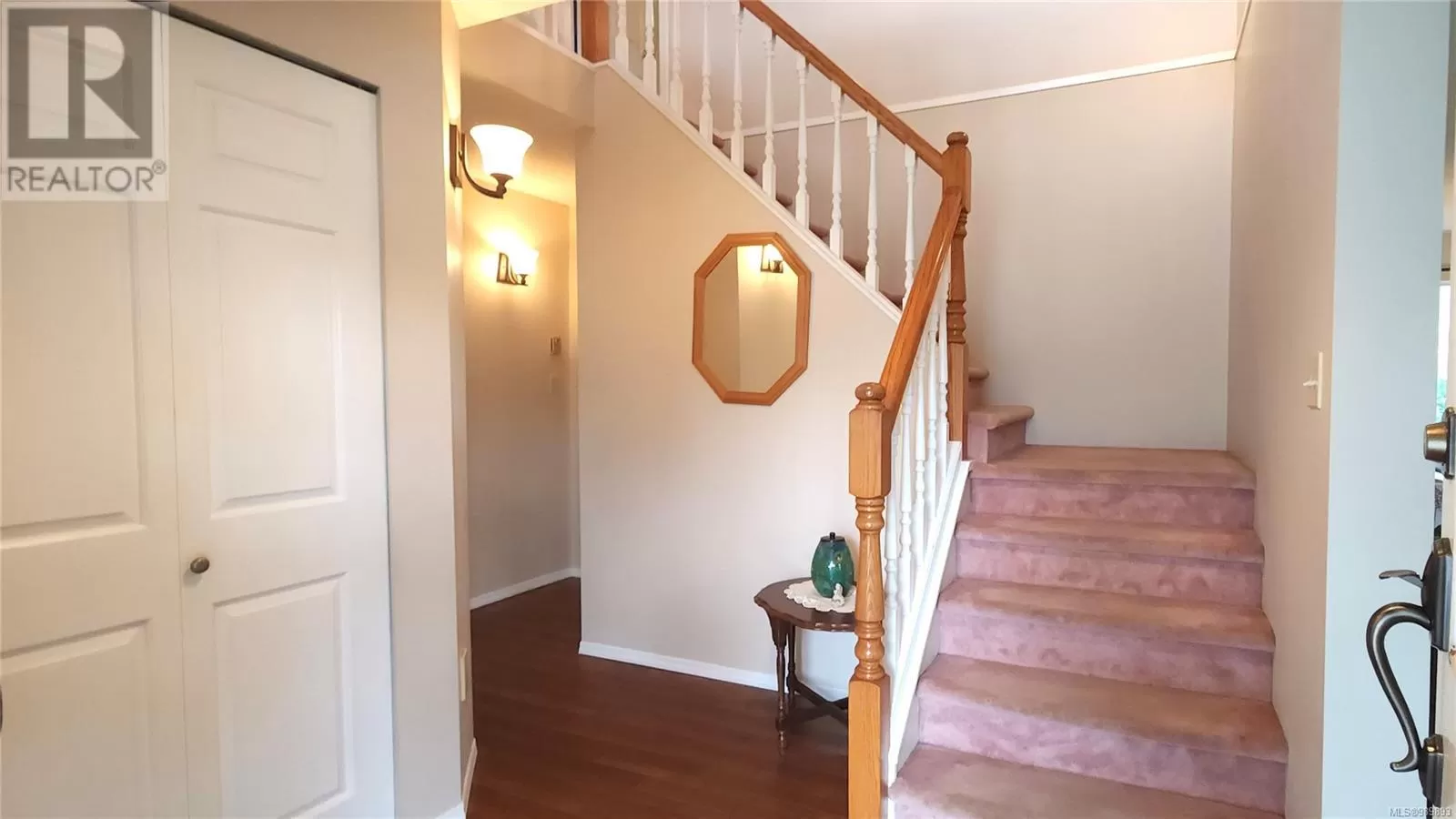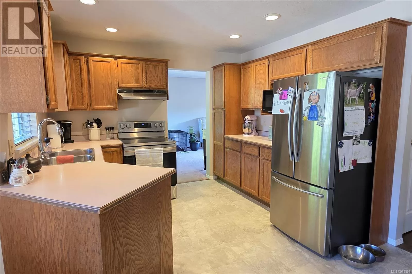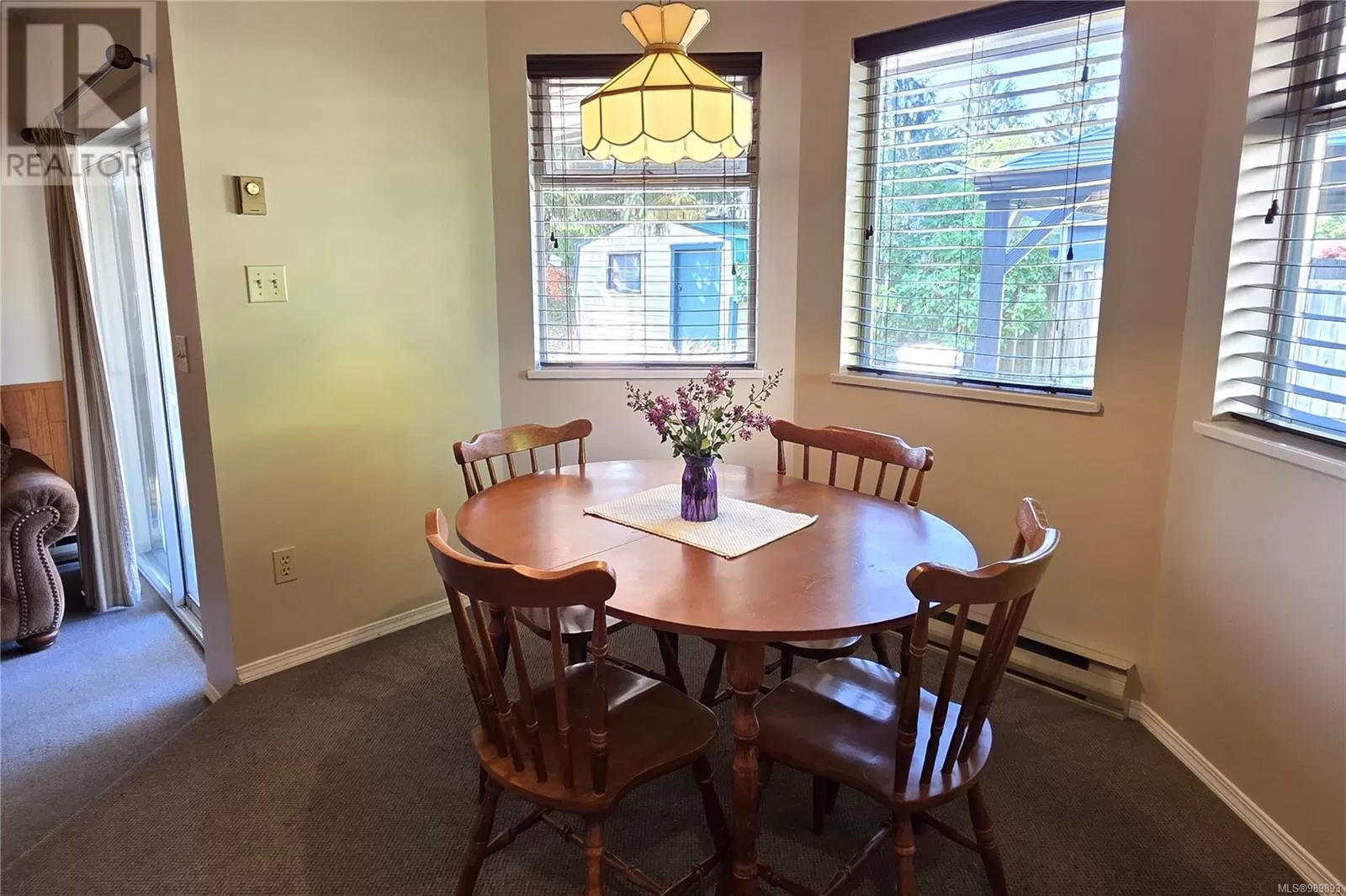 This lovely 3-bedroom + bonus room home in the sought-after Springbok subdivision of Campbell River is thoughtfully designed for family living and entertaining. The main floor welcomes you with a bright, inviting living room adjacent to the entryway, flowing into a formal dining area and walk-through kitchen. A breakfast nook and a cozy sunken family room, complete with a wood stove, create a warm, relaxed atmosphere. Patio doors open to a fenced backyard featuring a new stamped concrete patio with gazebo, ideal for outdoor gatherings. Upstairs, the open landing connects to a spacious bonus room and all three bedrooms. The primary suite includes a walk-in closet and a 3-piece ensuite, adding a touch of convenience. Located on a quiet street, this home offers easy access to nearby playgrounds, schools, shopping centres, recreation facilities, and the natural beauty of Beaver Lodge Lands. See the virtual tour at https://Don-Corder--PREC---Re-Max-Check-Realty.vr-360-tour.com/e/UwQBkyLnezs/e. (id:27476)