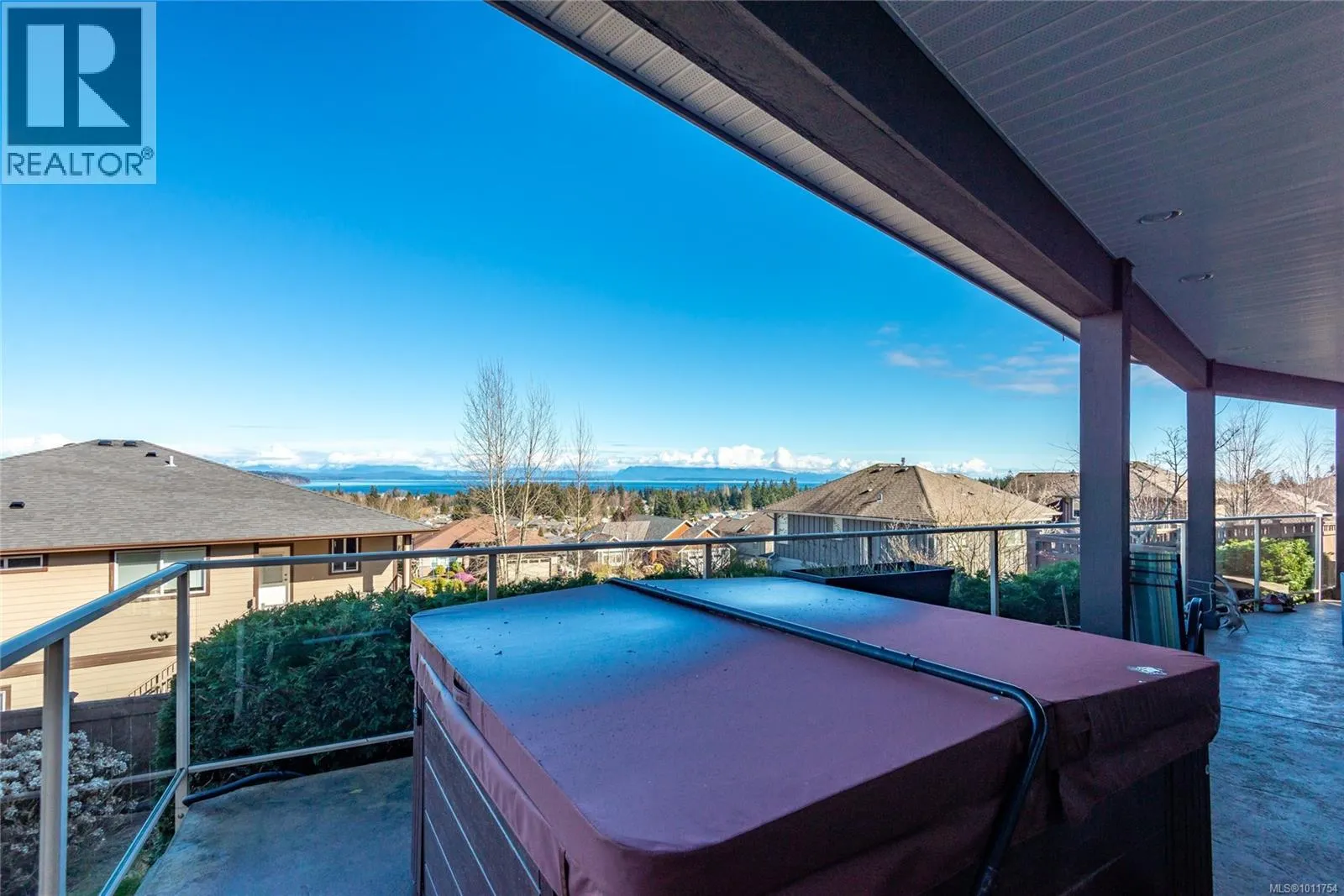 Stunning ocean and mountain views await in this beautifully maintained 5-bedroom, 3-bathroom home, featuring a spacious 3-bedroom self contained in-law suite. On the main, the open-concept great room boasts hardwood floors, a spacious kitchen with stainless steel appliances, granite counters, and more. Step out onto the covered deck to enjoy year-round outdoor living, perfect for watching the sunrise with your morning coffee. The primary bedroom offers ocean views, deck access, and a luxurious ensuite with heated floors, a walk-in shower, and has a walk-in closet. Downstairs, a fully self-contained 3-bedroom in-law suite with a full kitchen including an island, ample cabinetry space, private covered patio, and abundant natural light. Additional features include a low maintenance yard, hottub, additional side parking, space for garden. Perfect for multi-generational living with a family member or a mortgage helper. This home has it all, don't wait view today! (id:27476)