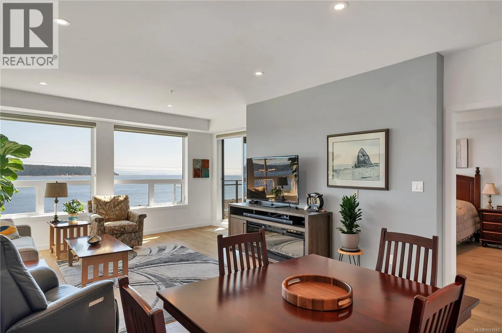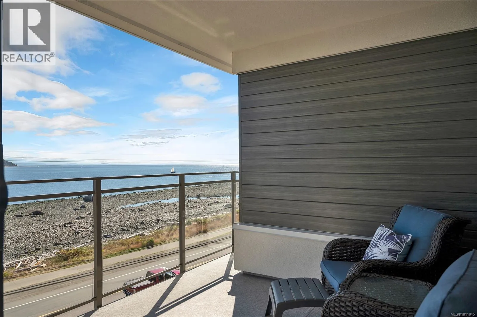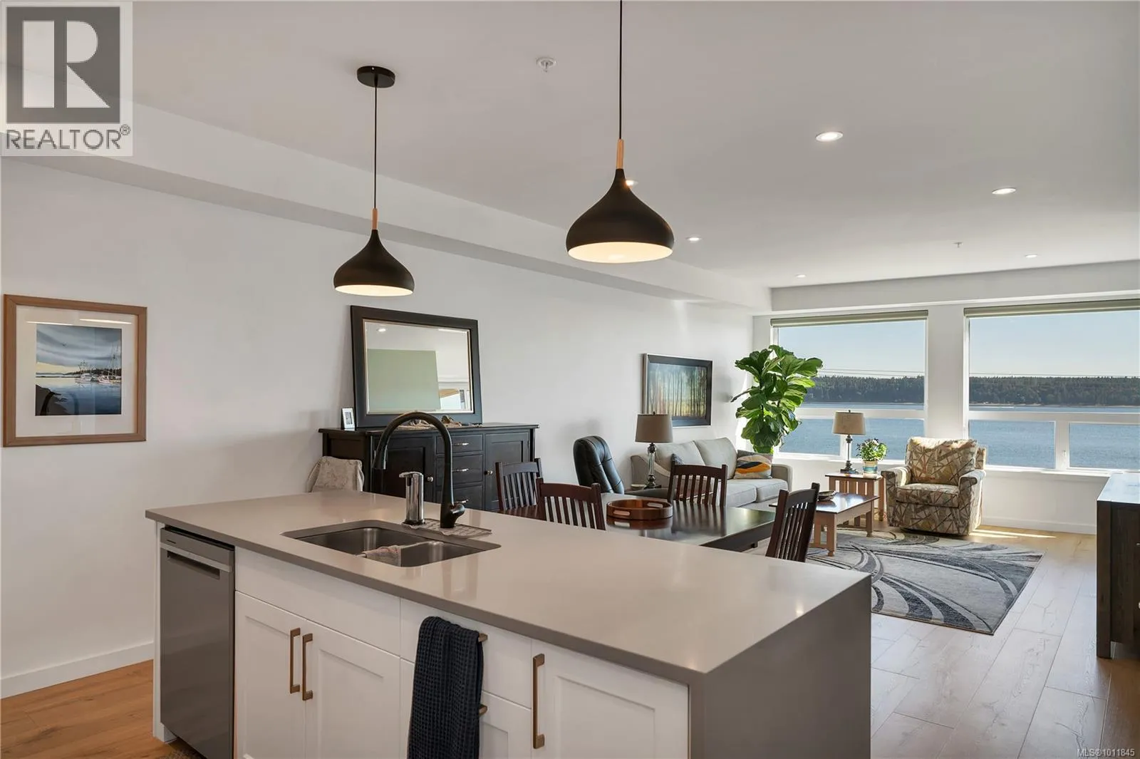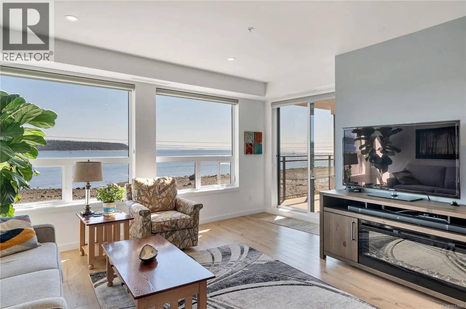Built in 2023, this almost new 1,229 sqft condo offers modern living with breathtaking ocean views. Featuring 2 bedrooms plus a den, the open concept design includes laminate flooring, quartz countertops, and a sleek kitchen perfect for entertaining. The primary suite boasts a deluxe ensuite with double sinks, walk-in tiled shower, heated tile flooring, and a spacious walk-in closet. Enjoy year round comfort with air conditioning, electric blinds (with blackout in bedrooms), and a private deck for relaxing. Additional highlights include an exclusive EV charger, sprinkler system, and home warranty coverage. Pets are permitted (with size restrictions), all ages welcome, and best of allâno GST. This is an outstanding opportunity to own a stylish, ocean view, move-in-ready home with every modern convenience. (id:27476)