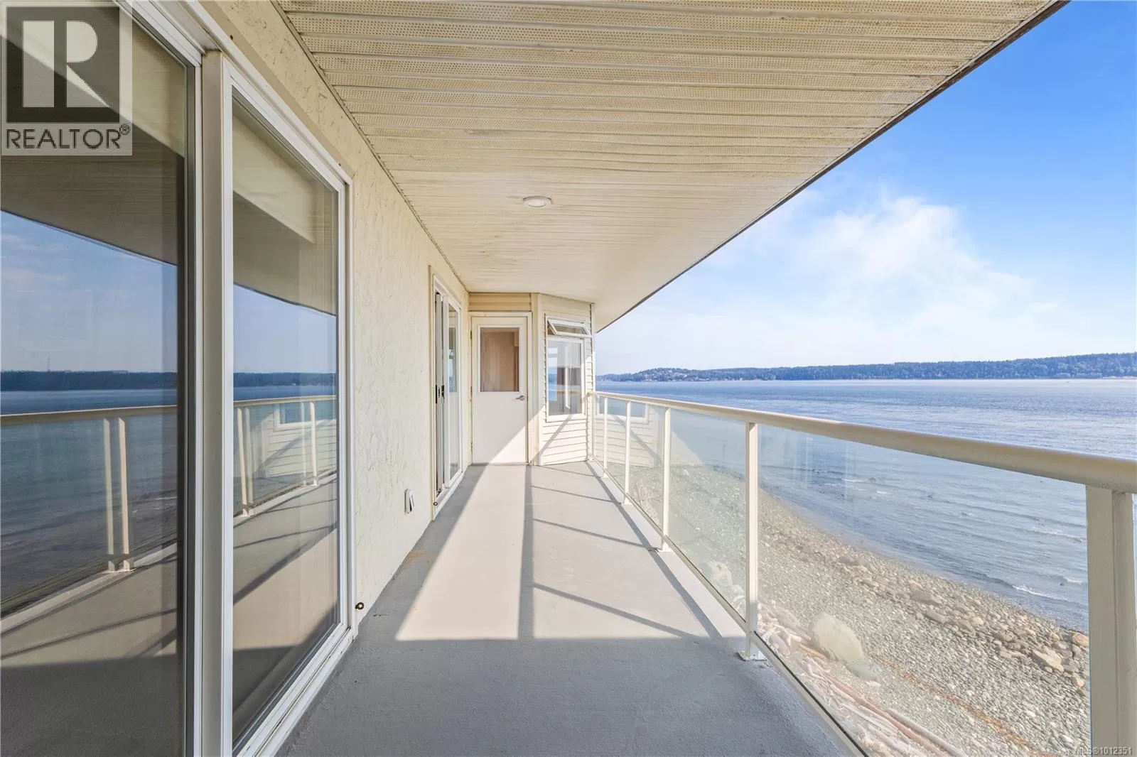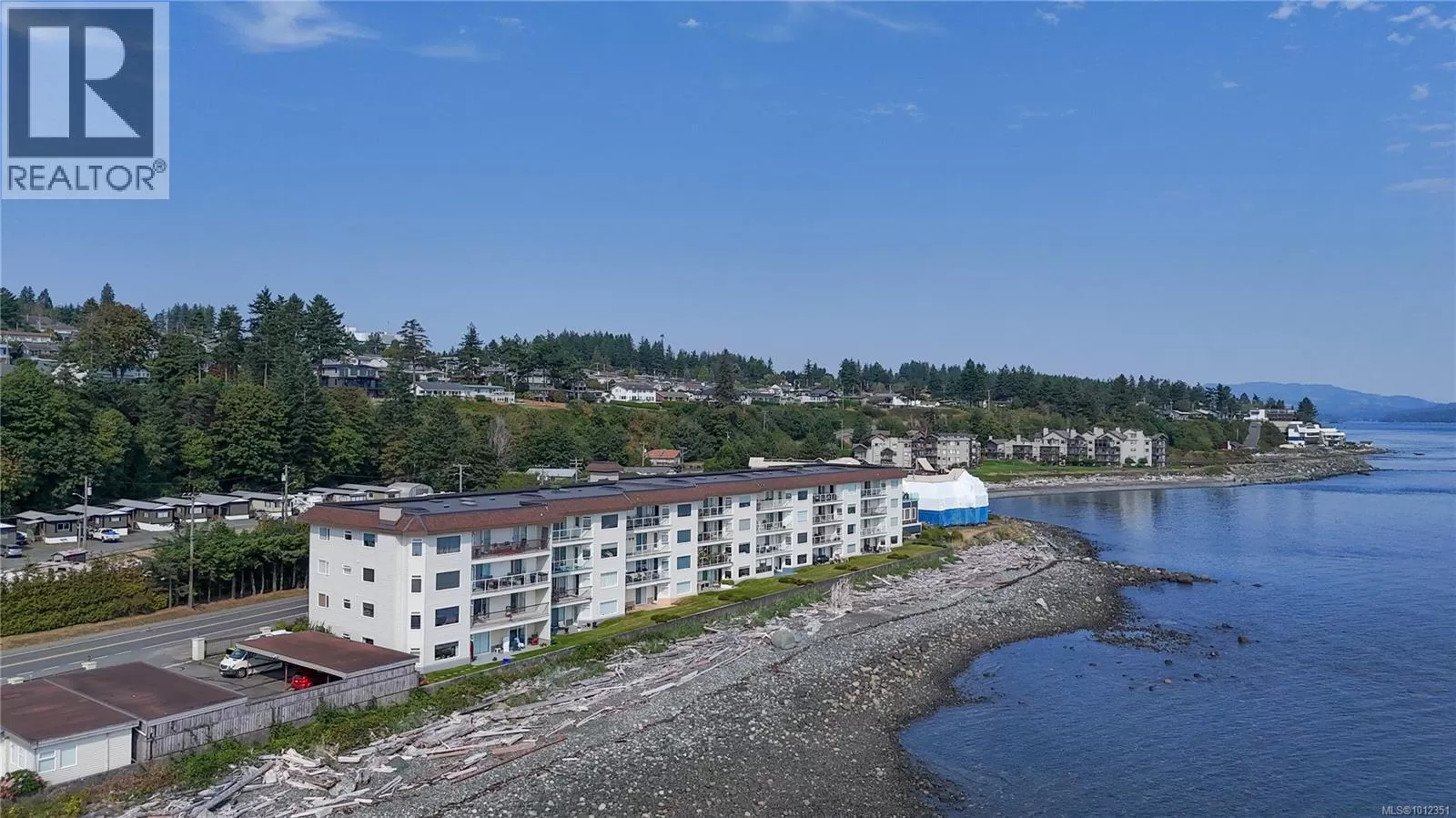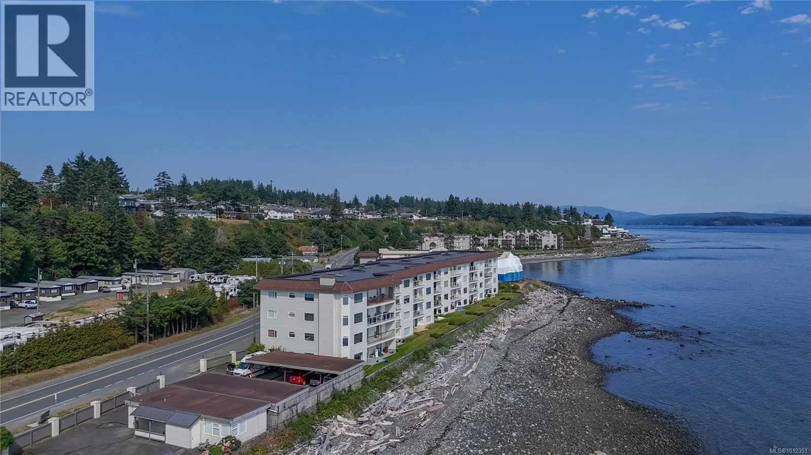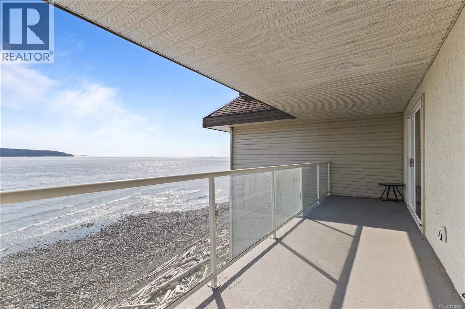 Discover top-floor oceanfront living at Ocean Shores! This bright condo offers breathtaking views of Discovery Passage, where you can watch sunrises, passing marine life, and coastal scenery right from your windows. The spacious layout features a functional kitchen, large living area, and sliding doors from both bedrooms leading to the expansive balcony. The primary suite includes a walk-in closet and full ensuite with tub and shower, while a second bathroom with shower is conveniently located near the guest bedroom. Skylights in the entry and ensuite add natural light, and in-suite laundry plus ample storage make life easy. Residents enjoy incredible amenities including a beachfront gathering house, oceanfront firepit and BBQ area, and a workshop. Embrace a lifestyle where the ocean is at your doorstep! (id:27476)