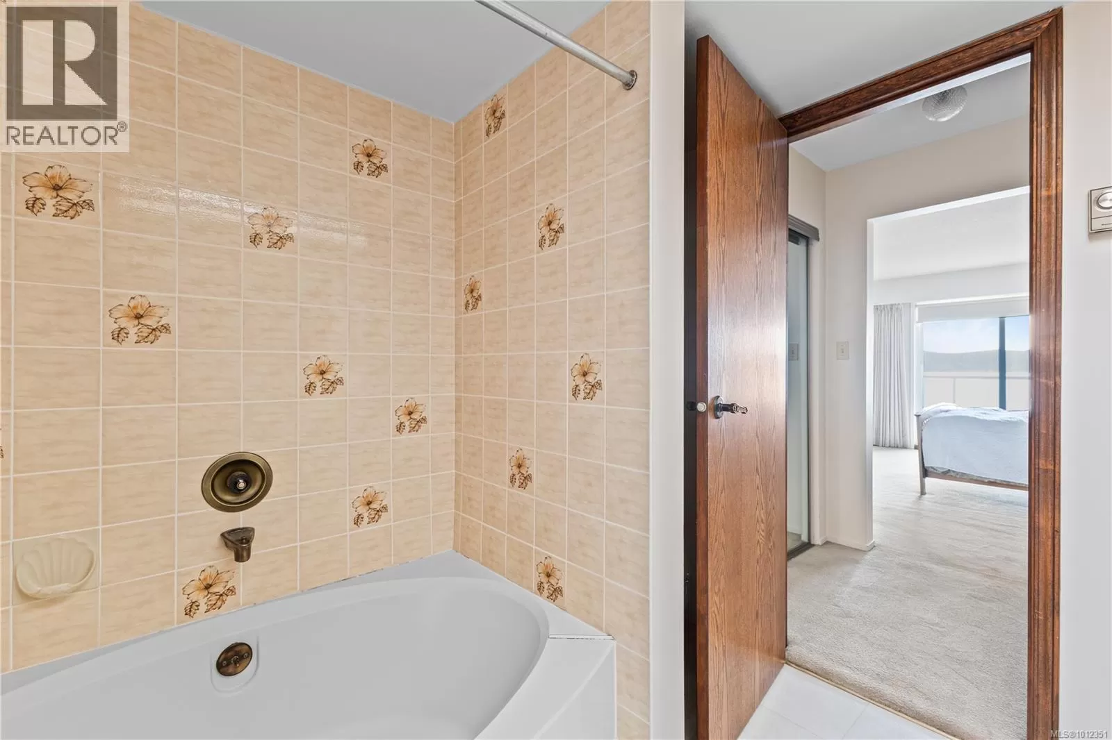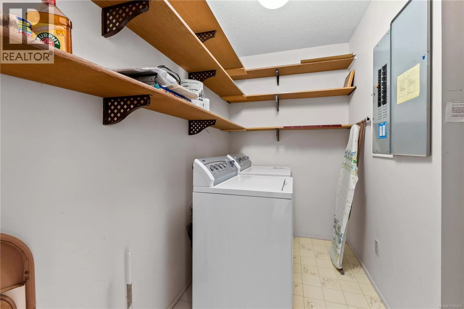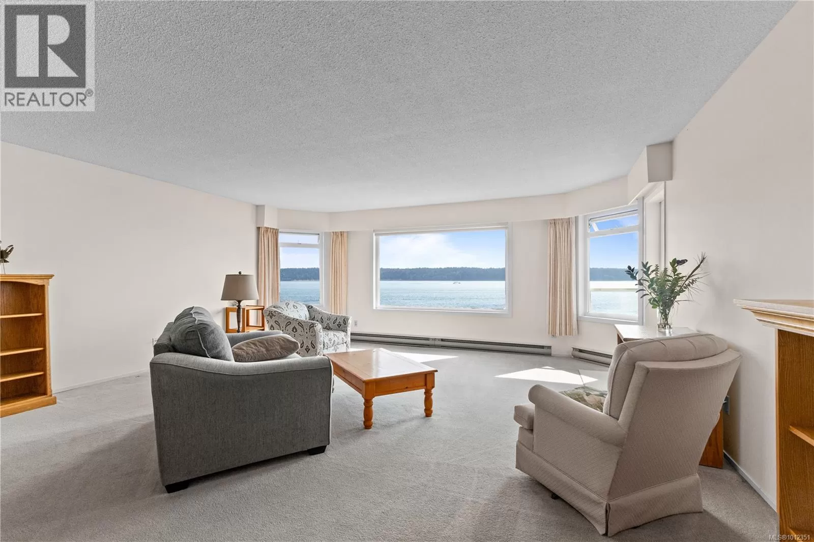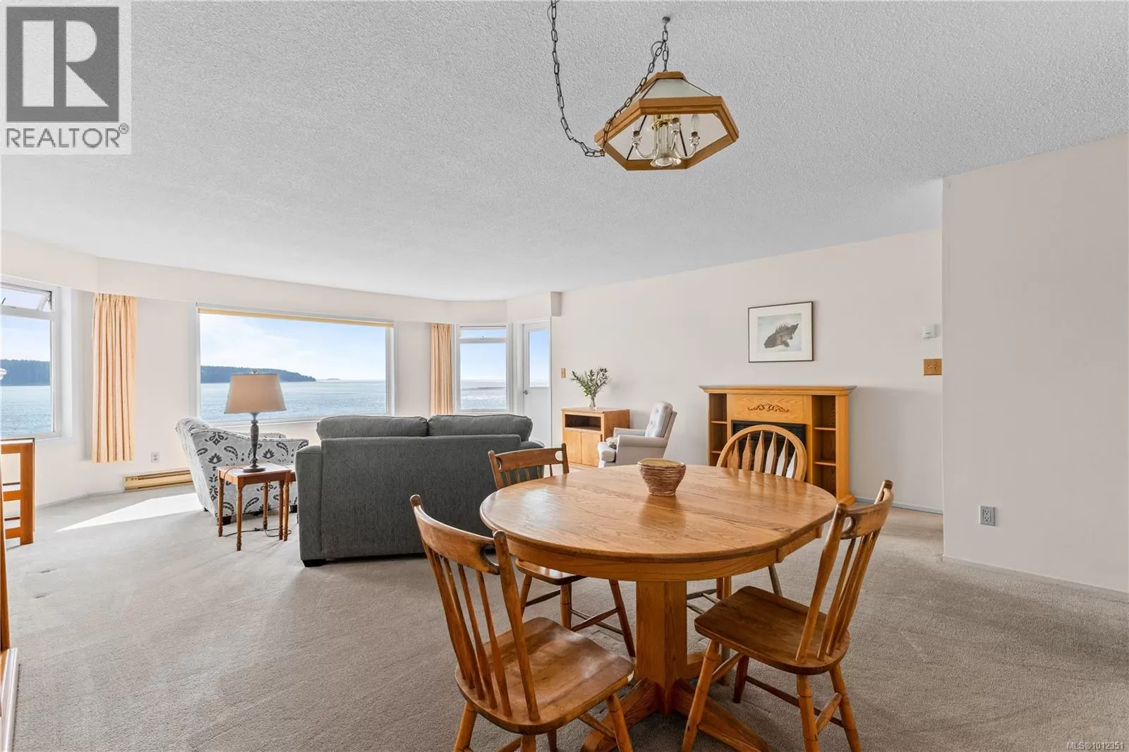 Discover top-floor oceanfront living at Ocean Shores! This bright condo offers breathtaking views of Discovery Passage, where you can watch sunrises, passing marine life, and coastal scenery right from your windows. The spacious layout features a functional kitchen, large living area, and sliding doors from both bedrooms leading to the expansive balcony. The primary suite includes a walk-in closet and full ensuite with tub and shower, while a second bathroom with shower is conveniently located near the guest bedroom. Skylights in the entry and ensuite add natural light, and in-suite laundry plus ample storage make life easy. Residents enjoy incredible amenities including a beachfront gathering house, oceanfront firepit and BBQ area, and a workshop. Embrace a lifestyle where the ocean is at your doorstep! (id:27476)