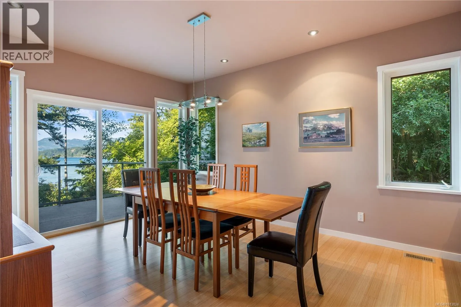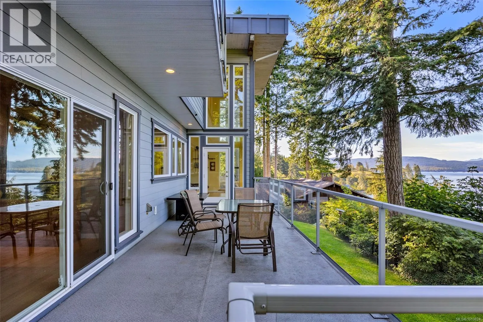 Outstanding ocean views of Seymour Narrows captivate from this beautifully designed, custom built contemporary homeâoffering luxury living in a serene, natural setting. This quiet, highbank oceanfront property features breathtaking, everchanging marine vistas from an open concept kitchen and living room that flow seamlessly onto a spacious outdoor deck. A handcrafted circular fir staircase invites you to the upper floor, where the primary bedroom boasts a private balcony, two walk-in closets, and a grand ensuite with soaker tub and steam shower. The upstairs also features a second bedroom and 3-piece bathroom. On the main floor, a second primary bedroom includes a 4-piece cheater ensuite and access to a lovely patio, perfect for guests or as an office. The walk out basement, two car garage with workshop area, and ample driveway parking for vehicles and an RV add function to form. Race Point is private, prestigious, and just 15 minutes north of downtown Campbell River and its amenities. (id:27476)