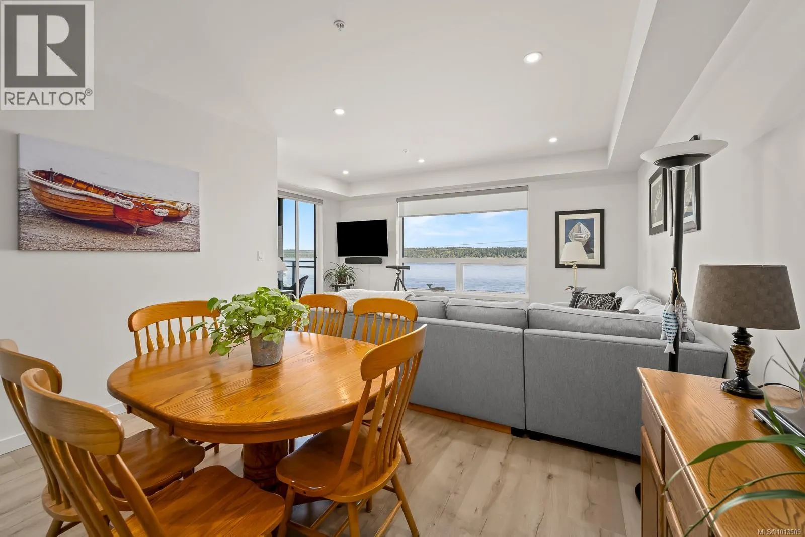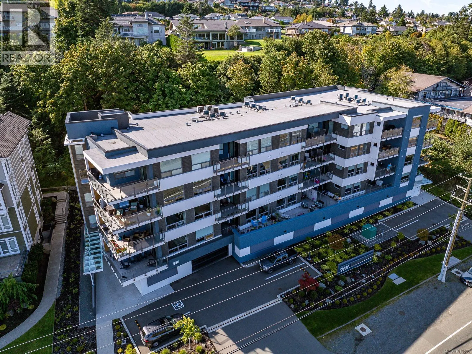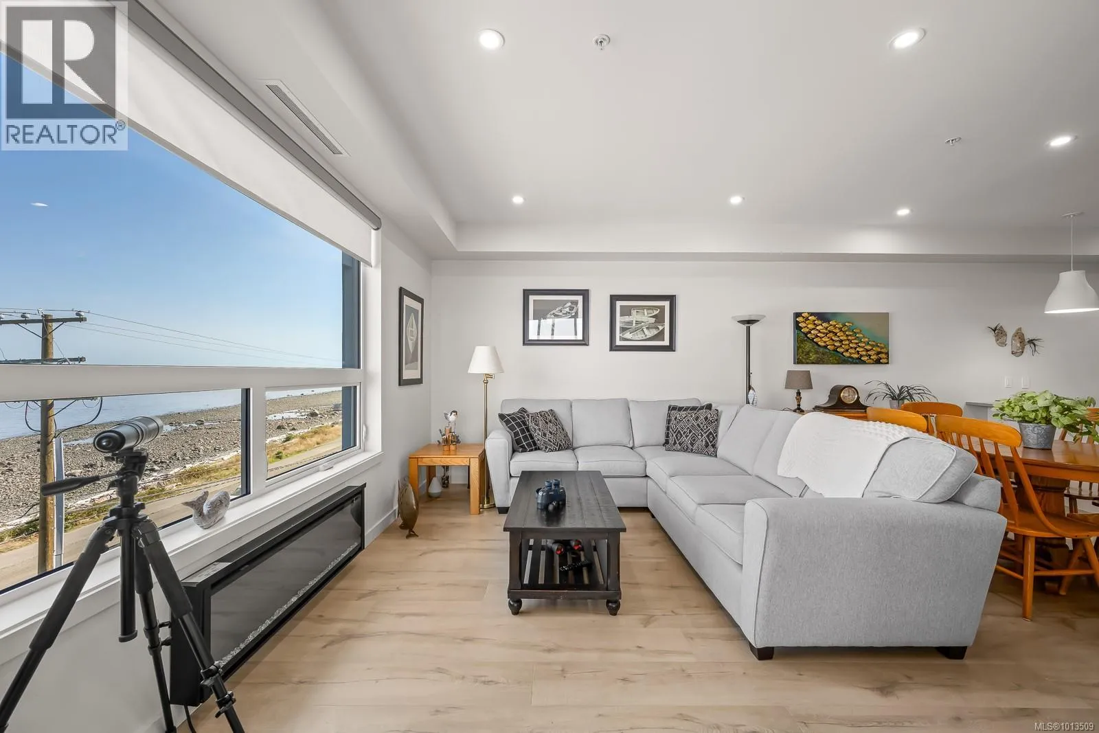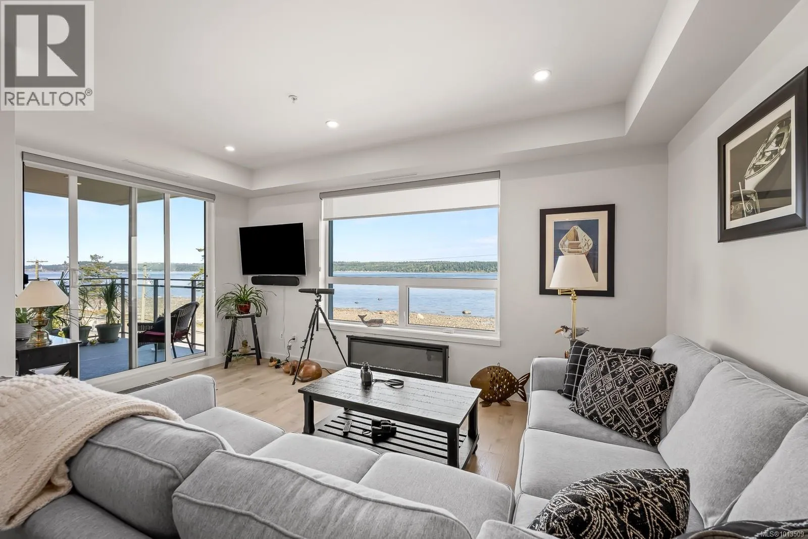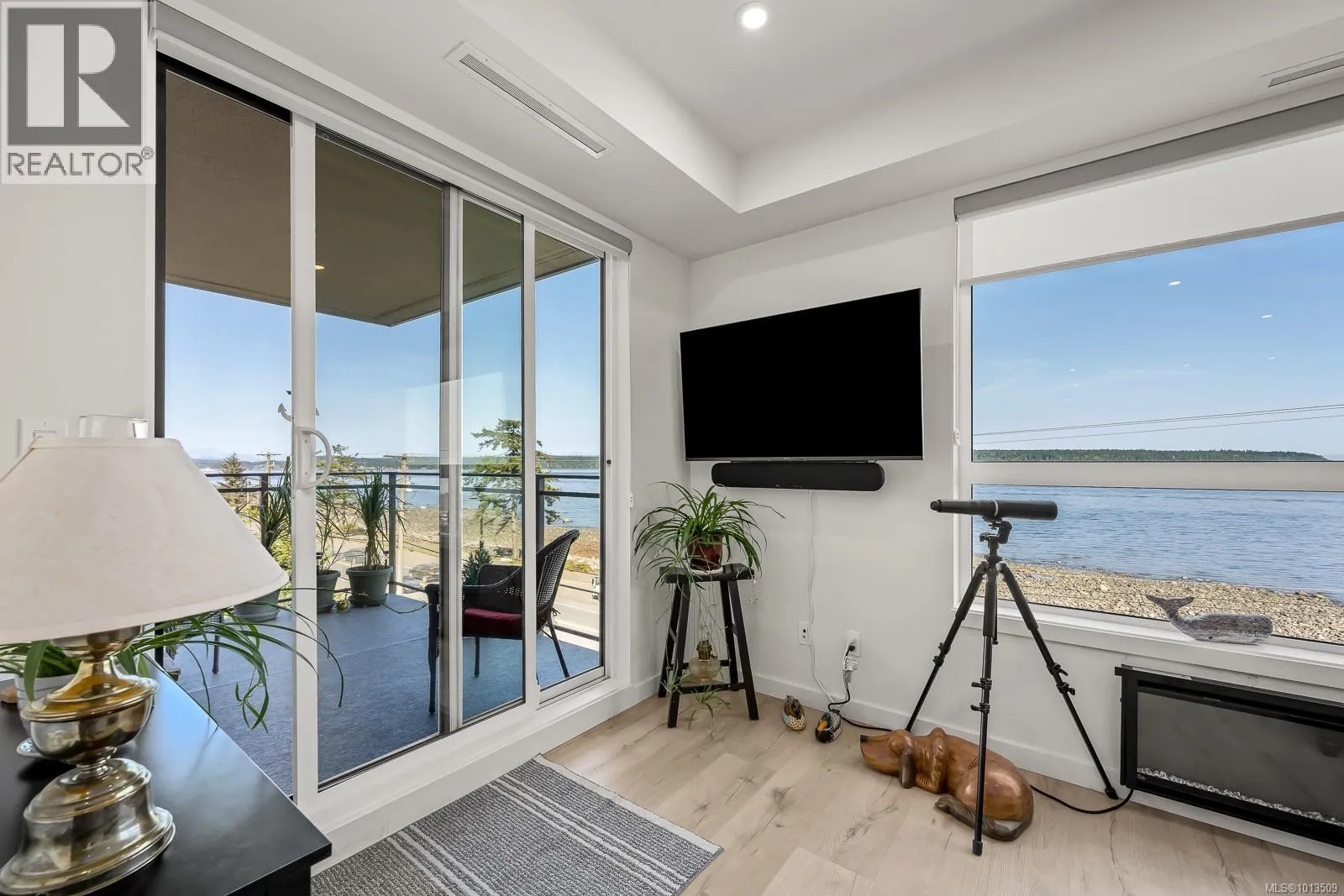 Ocean view Condo-two parking spots. Built in 2023, this property looks brand new inside and out. Exceptional features include three bedrooms plus den, open concept end unit with ocean views on two sides facing west, enjoy the boats and wildlife passing by with Quadra Island in the background. Neutral paint tones, designer kitchen with quartz countertops, two full bathrooms, and high end appliances. The owners have enjoyed the heat pump with air conditioning, and, walking distance to marina, cafes and shopping, yet parklike quiet setting in the backyard. A perfect investment, as most condominiums do not have 2 secured entry parking spots designated and 3 bedrooms plus a den. Open air hallways with parklike setting at the back. Ocean views all day long with sunsets in the evening, lock up and go lifestyle. (id:27476)