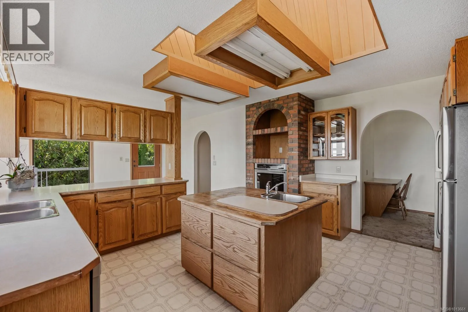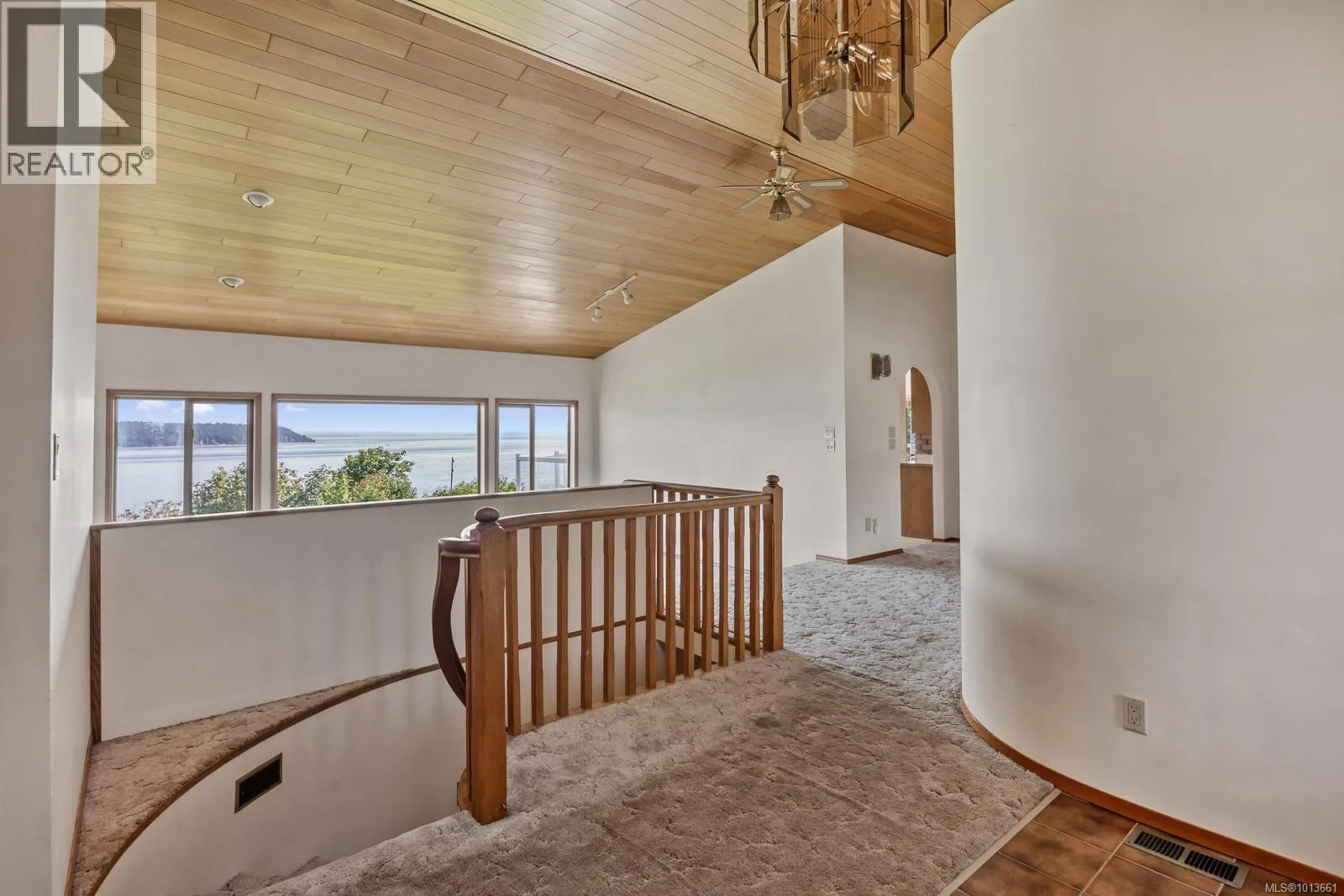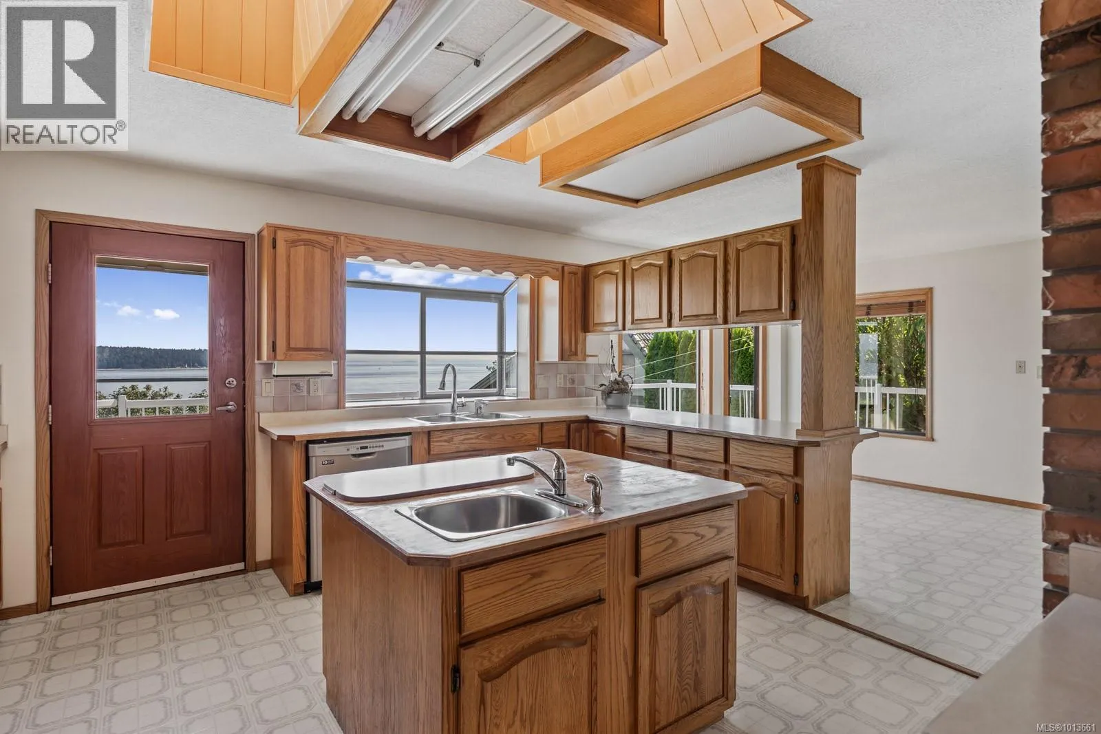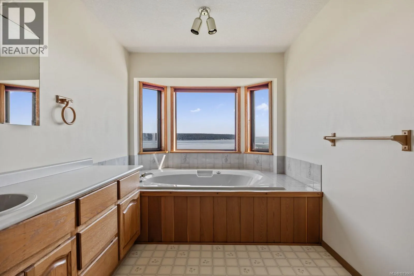 Discover Coastal Luxury Nestled in one of Campbell Riverâs most prestigious areas, this ocean view gem on the sought-after Ash St is a rare find. Perched high-bank above Discovery Passage, this 1988 West Coast custom home, cherished by a single owner, offers panoramic vistas of Quadra Island, Cape Mudge Lighthouse, and West Coast mountains as backdrops. The serene setting places the water just below, across the Old Island Highwayâperfect for waterfront-inspired living. Enjoy morning coffee or evening wine on one of two back decks, watching cruise ships glide by in season. Spanning a total of 5,200+ sq ft across two levels on a 0.6-acre lot, offering 4,396 sqft of living space, this 6-bedroom, 4-bathroom executive home is primed for a retro-modern revival. Its 1990s charm and solid structure pair with modern upgrades: a forced-air furnace with heat pump and a one-year-old roof. An oversized two-bay garage adds convenience. Enter through a spacious foyer to a grand living room with three large windows showcasing the ocean where Georgia Strait meets Discovery Passage. Vaulted ceilings with custom local wood and a fireplace with handcrafted rock mantle create warmth. The upper level offers stunning views from the primary bedroom, ensuite with jetted tub, and large kitchen flowing to a generous deck. The primary suite includes a private balcony. Main level also offers two more bedrooms, two bathrooms, dining room and kitchen. The lower level offers a large rec room with custom bar, media space, three bedrooms, a bathroom, two storage rooms, and a sunroom opening to a vast backyard with breathtaking water views. Located near the Sportsplex, Willow Point, and downtown, this home blends prime location, lifestyle, and lasting quality. Ocean views from nearly every room make it exceptional. Properties like this rarely appear; revive, reimagine, and make it yours. Seize this once-in-a-lifetime opportunity! (id:27476)