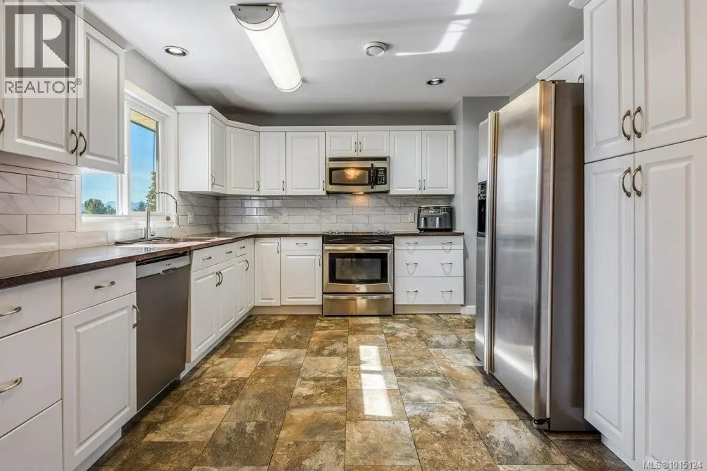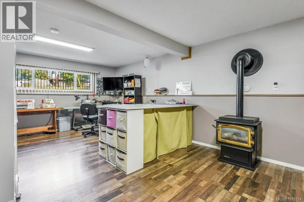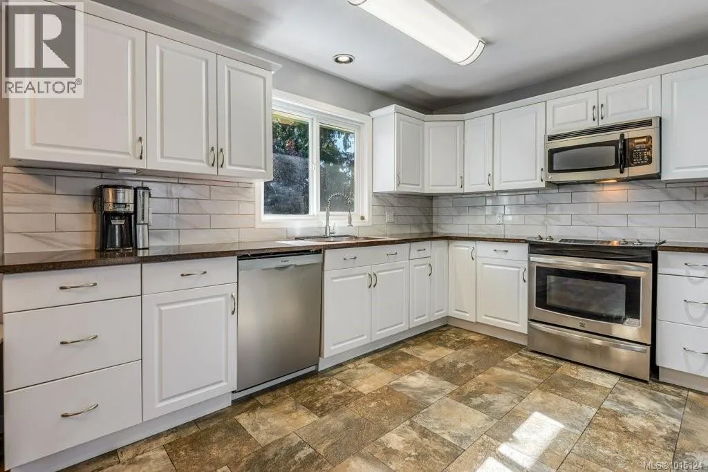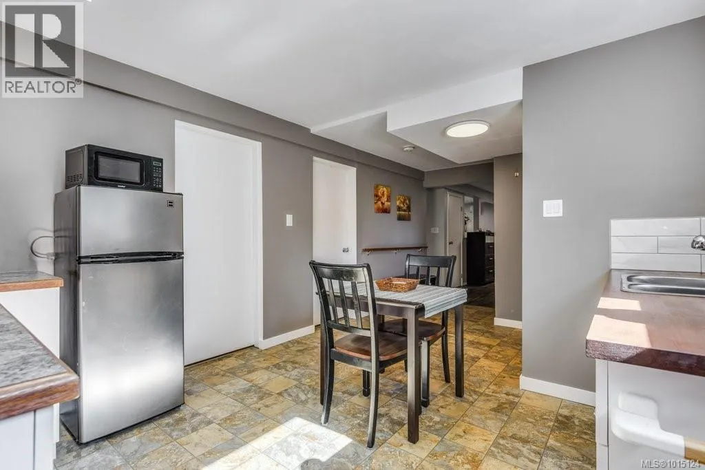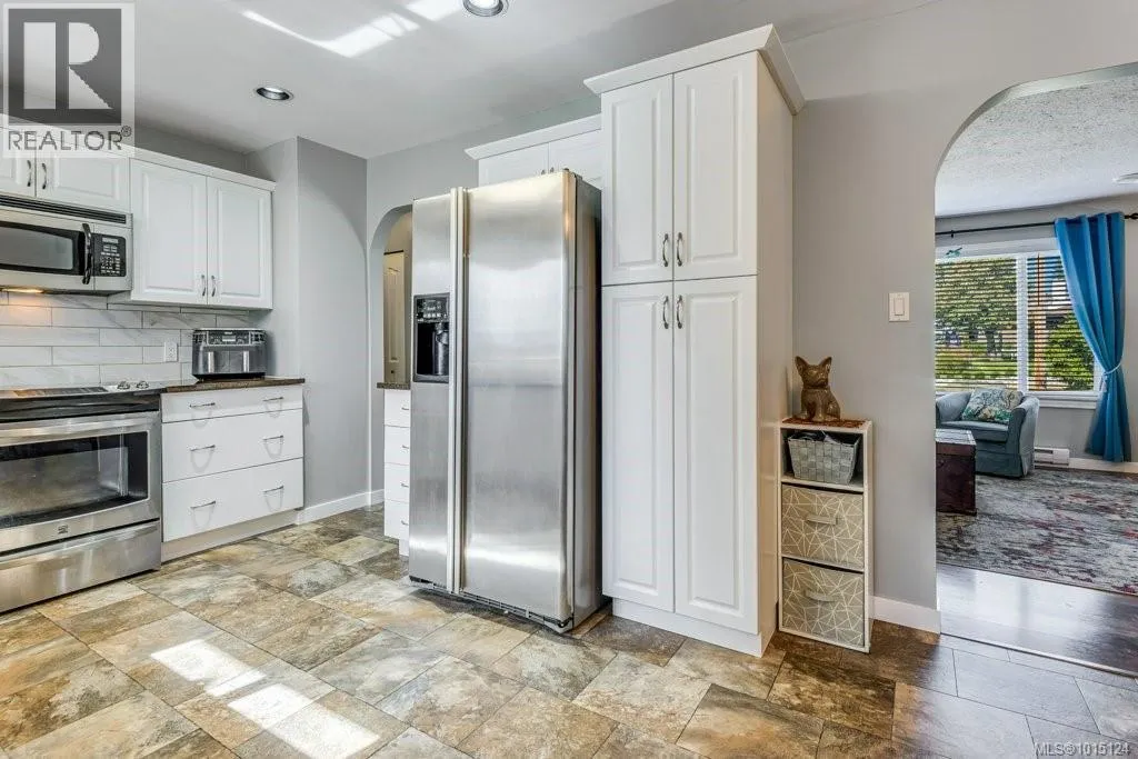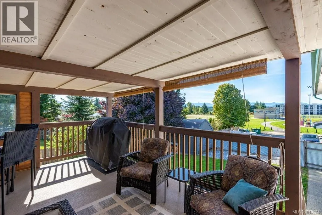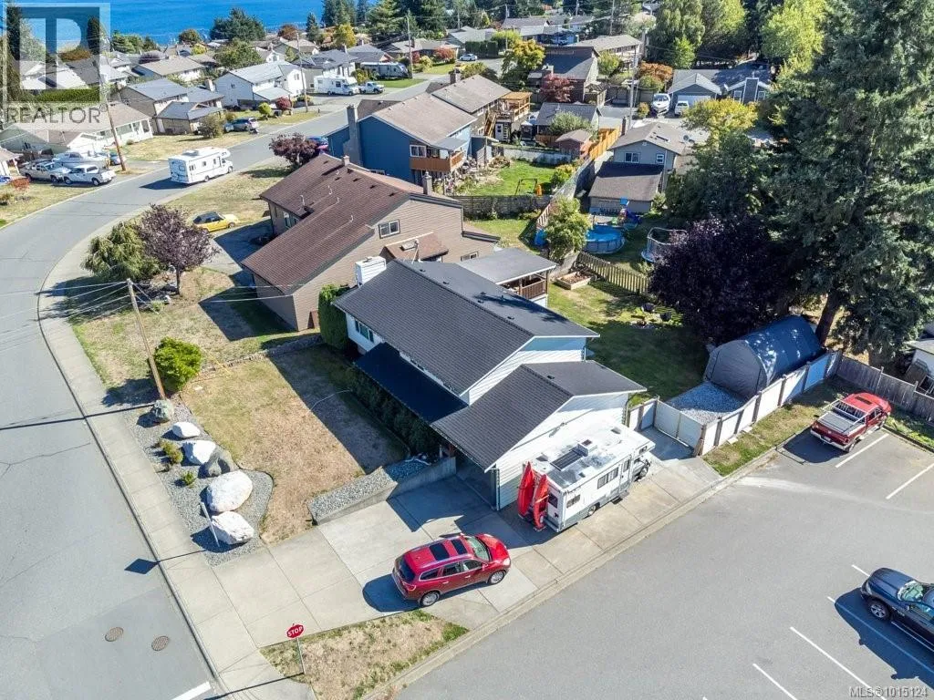 In an appealing family neighbourhood, this 2105sqft two level home provides excellent, quick access to shopping, hospital, schools, playing fields, dog park, recreation facilities and major bus routes. As a corner lot there is easy vehicle access to the backyard at the side of the property and beside the one car garage, so there is lots of space for additional parking, an RV and/or boat, toys and more. The upper level provides all living space, including 3 bedrooms, 2 bathrooms, dining room, kitchen and living room. The living room has an attractive feature wall with wood paneling and a brick hearth and chimney, with an electric fireplace insert. A wide, coved archway leads from the living room to the dining room which is adjacent to the bright kitchen. A sliding door leads from the dining room to the large, covered deck with mountain views. The kitchen has new granite countertops, an attractive backsplash and ample cabinetry including pantry wall cupboards by the fridge. The covered deck is large, with blinds for summer heat and winter rain, allowing for year-round enjoyment of this outdoor space. Wood railings and wood paneling make this an attractive place to eat and entertain. Downstairs offers a large rec room with a gas freestanding stove, perfect for a family room, media room or hobby space (it is currently partially used as a sewing area). The other half of the downstairs is a very nice in-law suite, with two bedrooms, a full bathroom and a kitchenette with cabinetry, sink and fridge (no stove or oven). Separate access to the outside makes this a good option for a secondary suite (with some minor adjustments), or for an in-law suite. Flat lawn and patio space make the fully fenced backyard very user-friendly. There is a separate, locked storage area underneath the covered deck. With a five-year old roof, a new heat pump in the attic, and plenty of attractive upgrades, this home is move-in ready. (id:27476)