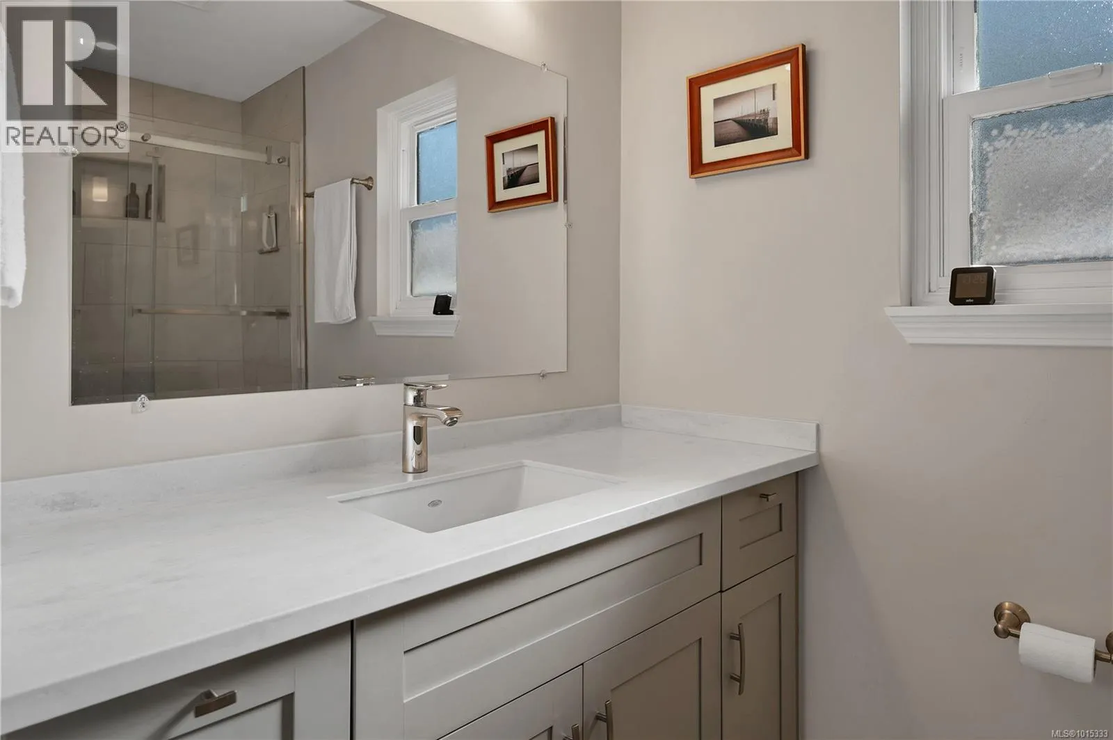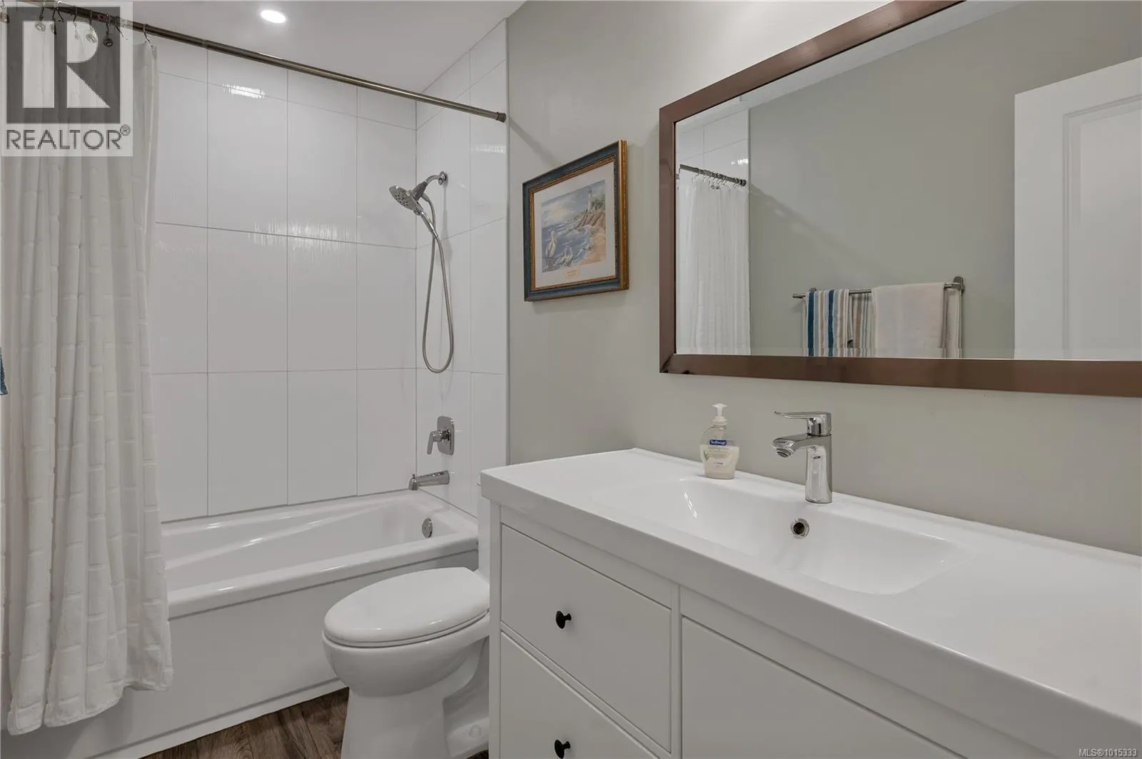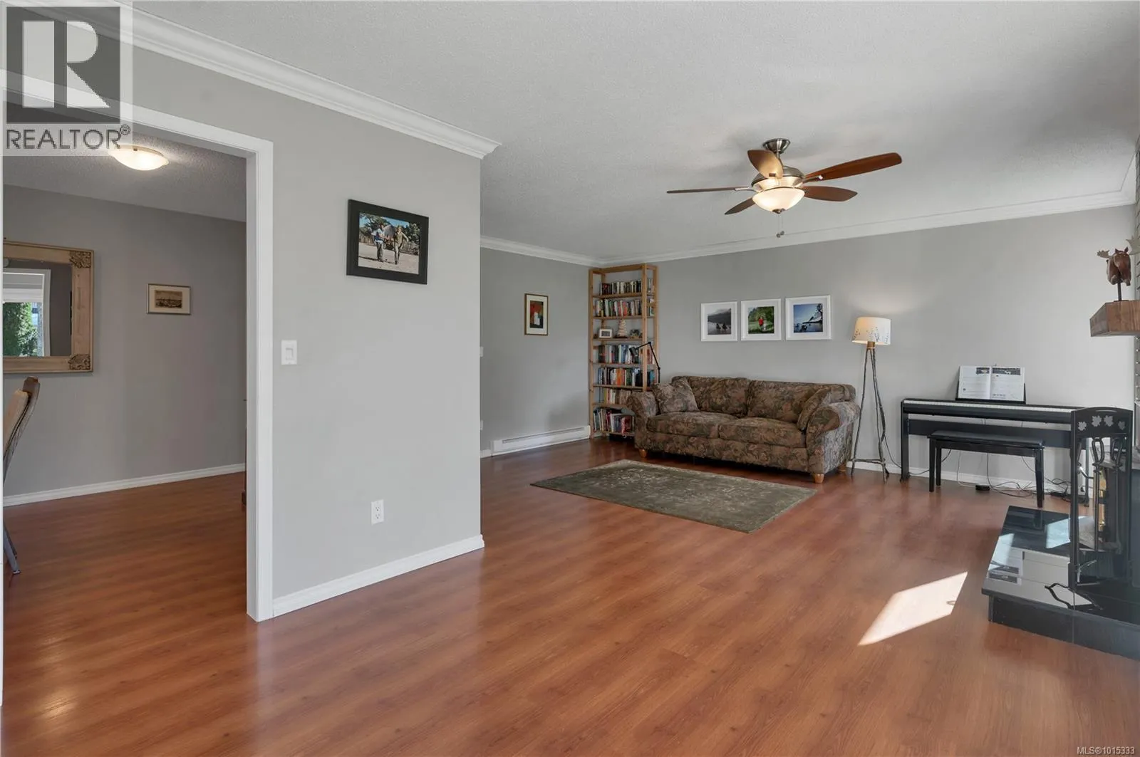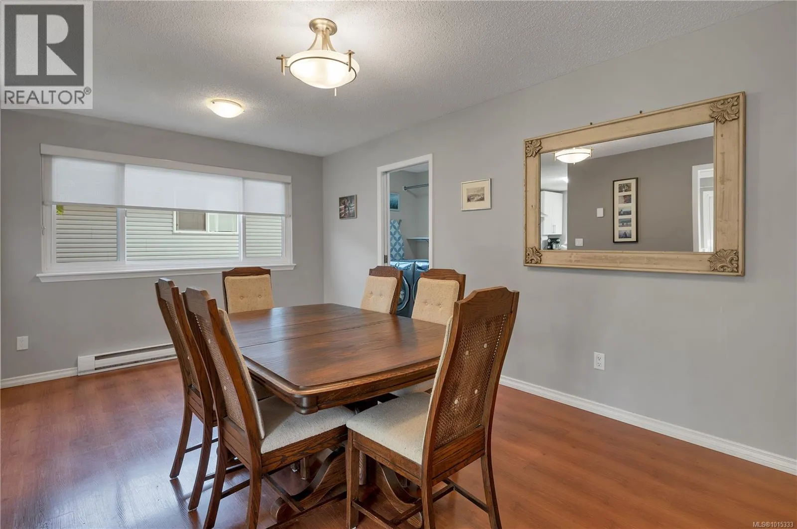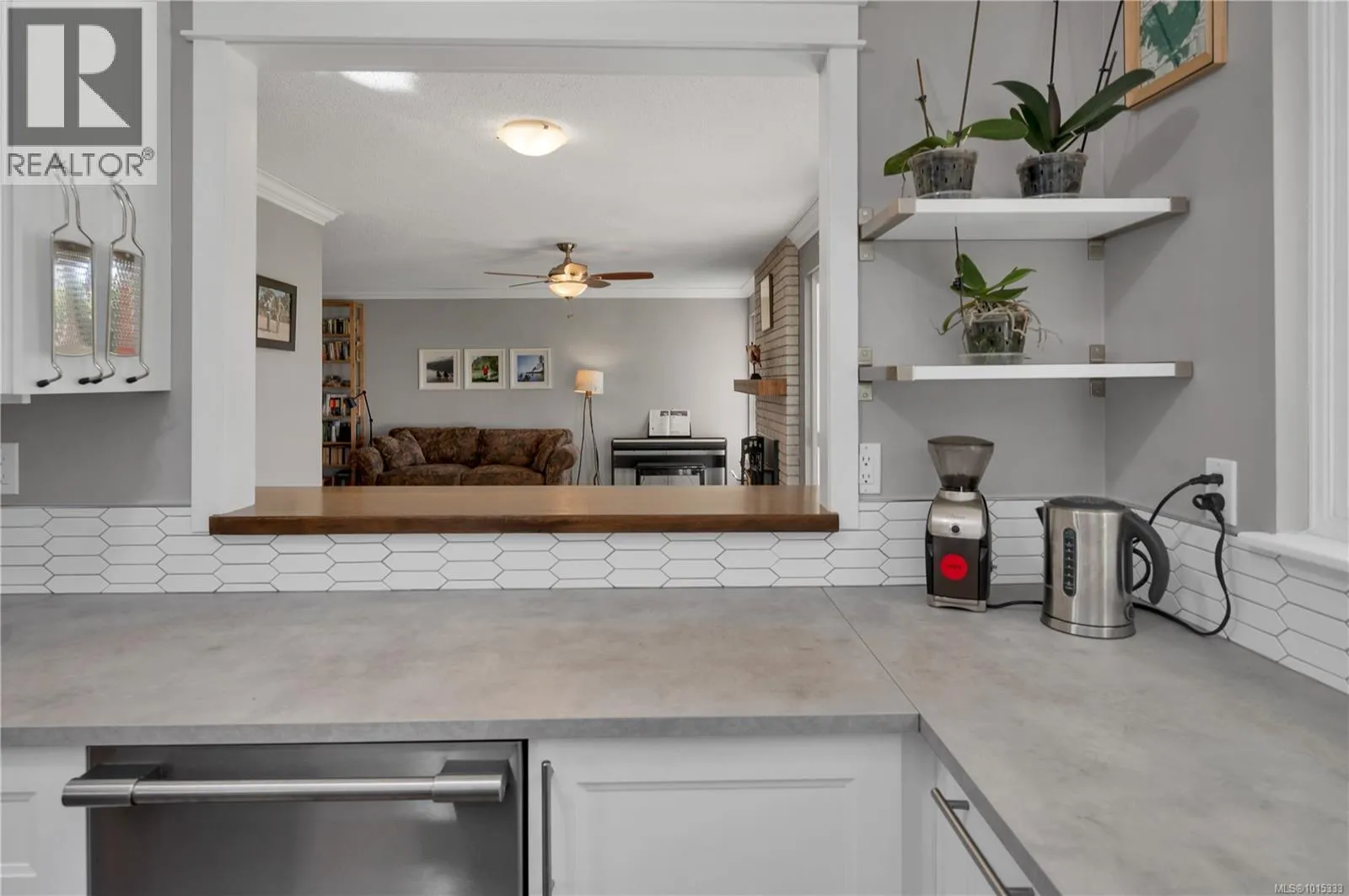 This beautifully updated 3-bedroom, 2-bathroom rancher offers comfort and style throughout. The spacious primary suite features a walk-in closet and a 2022-renovated ensuite with a tiled shower, glass door, heated floors, and a generous vanity. Large windows and a cozy woodstove brighten the inviting living room, while the adjoining family/dining area flows into the modern kitchen, featuring white cabinetry, stainless steel appliances, a tile backsplash, updated countertops, and an eating bar. Recent updates include a new stove (2024), washer (2024), dryer (2025), hot water tank (2025), and roof (2021). Step outside to a private 0.24-acre backyard oasis with a covered patio, mature trees, raised garden beds, a weeping willow, an apple tree, grapevines, blueberry, and raspberry bushes. Located on a quiet cul-de-sac in central Campbell Riverâclose to schools, shopping, and recreation. (id:27476)