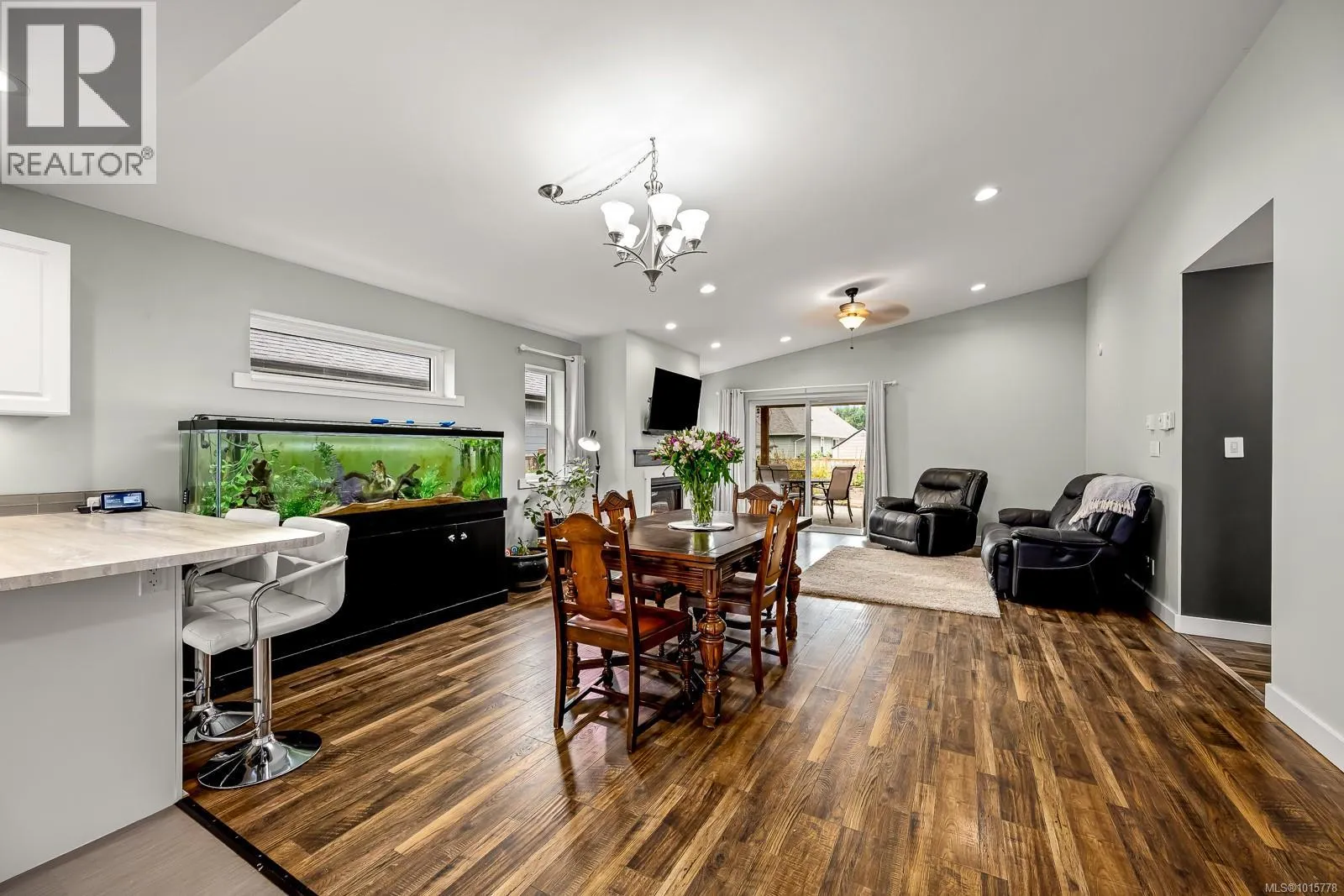 Tucked into the heart of the sought-after Jubilee Heights area of Willow Point, this charming 3-bedroom, 2-bathroom rancher is less than 10 years old and offers incredible value, lifestyle, & comfort â all on a beautifully landscaped, organically maintained lot. Two patios front & back one covered & some birds eye views to the ocean ''watch the CRUISE SHIPS'' The yard is fully fenced & the walkway along the house is plenty wide. Designed with accessibility in mind, the home is fully wheelchair accessible, including wide hallways & doors, a low-lip walk-in shower in the primary ensuite, ramps at both front entry & garage, and even electric bidet wiring in the bathrooms. There's also an EV charging station in the garage, plus attic and crawl space access from the garage â not the bedrooms. Nature lovers will be drawn to the property's private orchard of 22 fruit trees, all pruned to under 5 feet for easy harvesting. Enjoy apples, pears, cherry, plums (Asian & American), figs, apricots, olives, and even a pomegranate tree! Every plant & flower has been thoughtfully chosen to support bees, hummingbirds, and butterflies, and no pesticides have ever been used on the grounds. The home features fresh paint, a gas stove, and dual natural gas hookups on both front and back patios for all-season BBQs. A glass railing adds style and visibility to the front porch, where you can catch sneak-peek ocean views and even spot cruise ships on the horizon. The layout includes glass sliding doors from both the living room and primary bedroom to a covered back porch that wraps around to the side and front, creating an ideal indoor-outdoor flow. Located in a quiet, friendly neighborhood, youâre just a short walk to the ocean, extensive bike and hiking trails, and the bus system â plus, enjoy fast access to both highways. This home offers the perfect balance of modern comfort, thoughtful design, and connection to nature â in one of Campbell Riverâs most beloved communities. (id:27476)