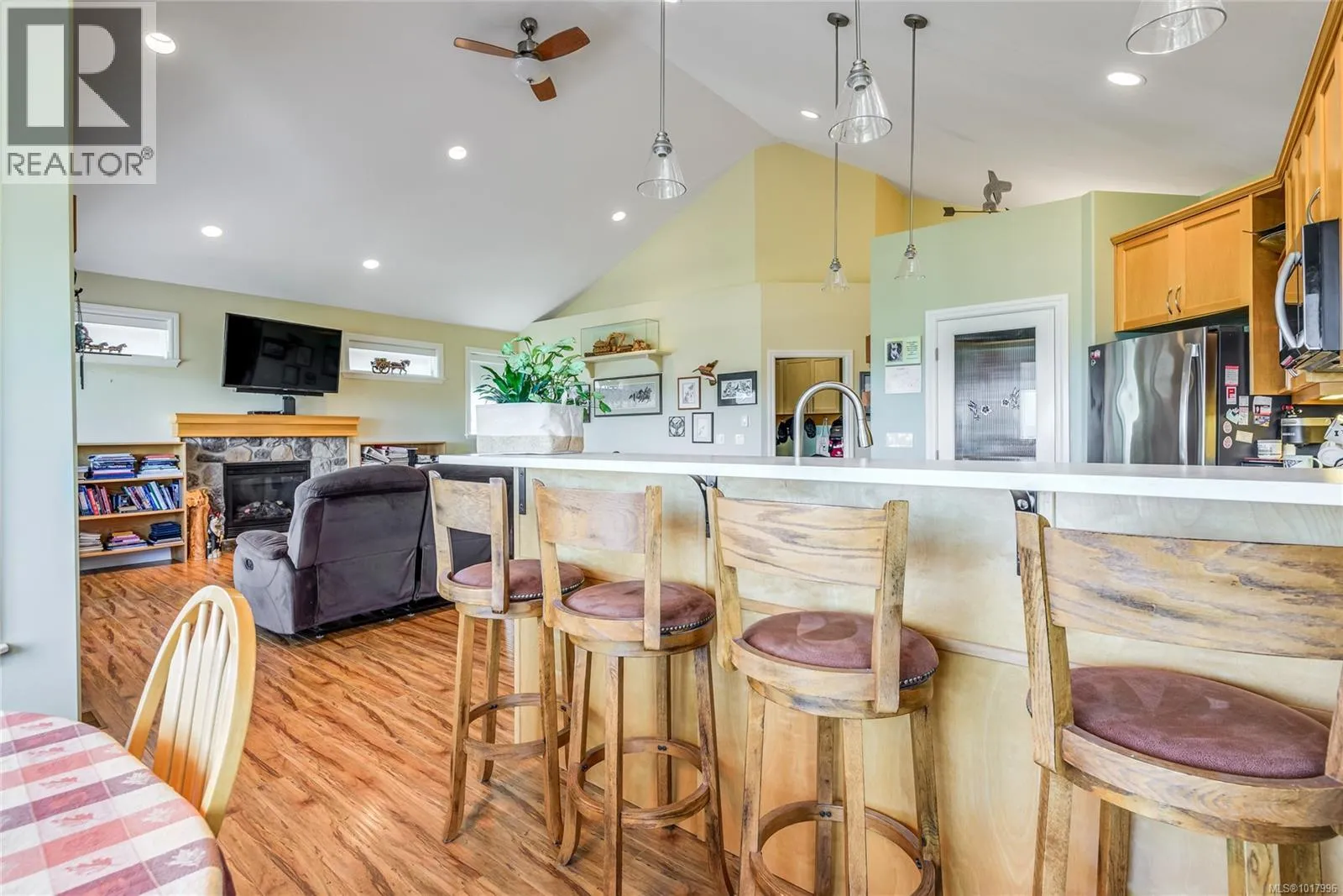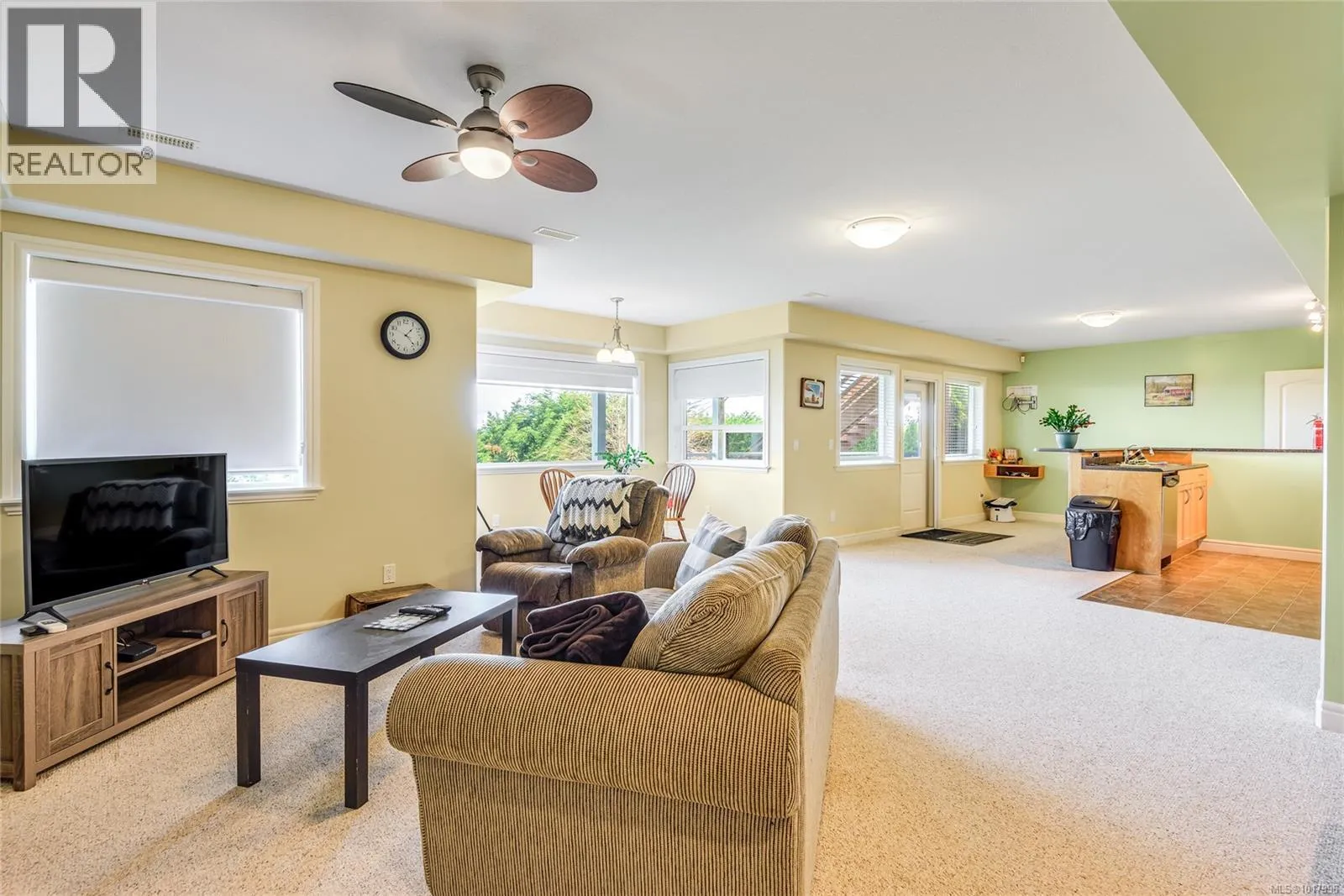 Large family home with Ocean and Mountain views with a 1 bedroom suite! This main level entry home lives like a rancher with 3 bedrooms and 2 full bathrooms on the main floor. The great room concept is bright, with lots of natural light and expansive high vaulted ceilings.. The kitchen has been updated with matte white quartz counters and is perfect for a tall chef. The living room has a nice and cozy gas fireplace, perfect for those winter nights. French doors out to a beautiful covered deck that has gorgeous wooden pergola and looks out to views of the ocean and beyond. The primary bedroom, captures a nice view as well, and has a walk in closet with a 4pc ensuite with separate soaker tub and shower. The downstairs suite is self contained with its own laundry, and full kitchen. The living area is huge, with access to a covered patio and back yard. There is also a large unfinished storage and mechanical room the entire width of the home. This is a must see, Don't wait! (id:27476)