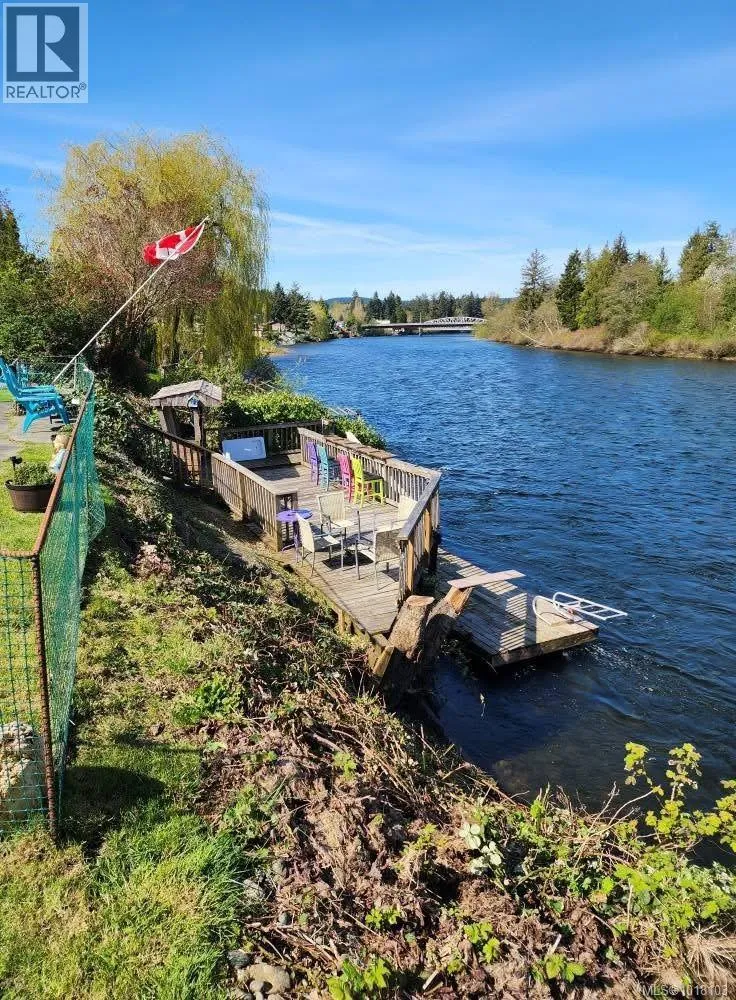 Riverfront home with private dock! Opportunity awaits you for this unique property, featuring one of the few private moorage opportunities left in Campbell River. Enjoy world renowned fishing right from your dock, year round wildlife watching, and the beautiful ever changing scenery river life has to offer, all from a private no through road. Just steps from downtown amenities, this 3 bed plus den, 1.5 bath split level home spans 3 floors, featuring a beautiful backyard inground pool for the warmer months. Step inside & find views from every room on the main floor, which contains the kitchen, living, & dining spaces. Upstairs there is 2 cozy bedrooms, 4-piece bath, & den with deck & views of the backyard. Downstairs features a warm woodstove & rec room, plus another 2-piece bath. Outside there is a large double carport with extra storage, and a fully fenced yard. This is a perfect property for those looking to entertain and make the most of what Campbell Riverfront living has to offer. (id:27476)