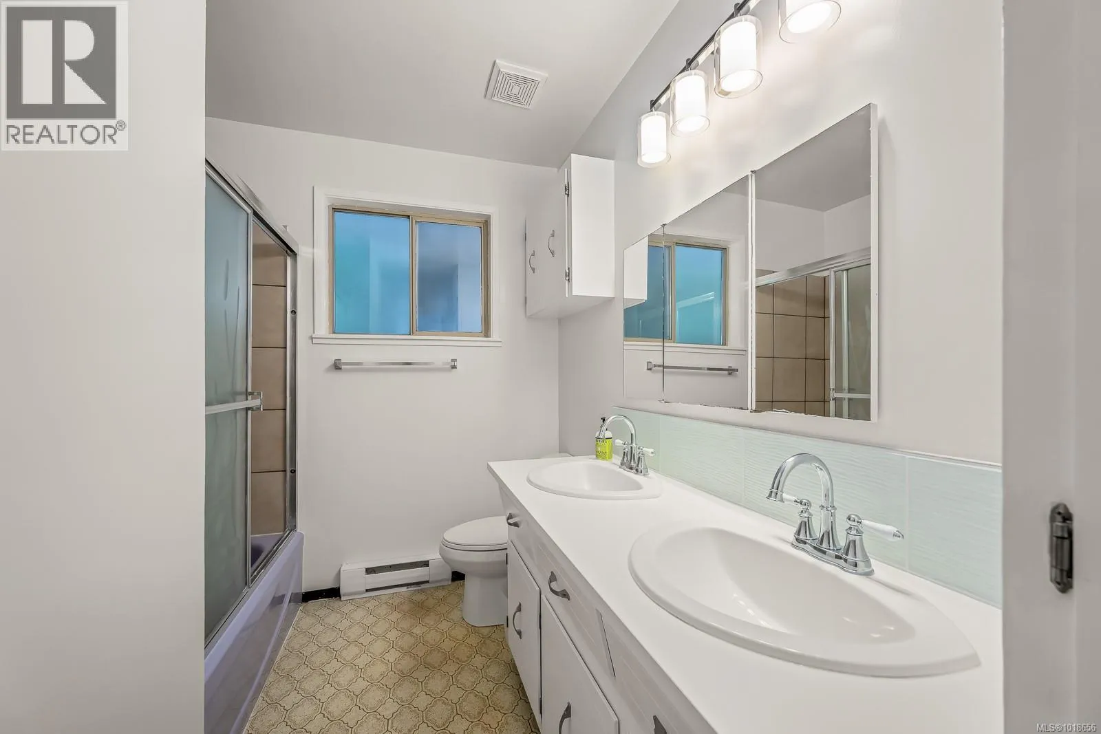 This fully updated 2206 sq ft house on a large corner lot in Campbell River has so much to offer! There is a large, bright 2 bedroom in-law suite downstairs with its own entrance and parking. Upstairs there are 3 bedrooms and large picture windows flooding the living room with natural light. It is conveniently located on Petersen Rd, close to schools, activities, trails, shopping and minutes to the highway. Some of the numerous updates are; all new windows on lower level, new siding, roof only 5 years old, new flooring throughout, paint etc. There are too many updates to list so please see the feature sheet. This home would suite many different situations; intergenerational living, someone wanting an income helper, a large family... Come and take a look! (id:27476)