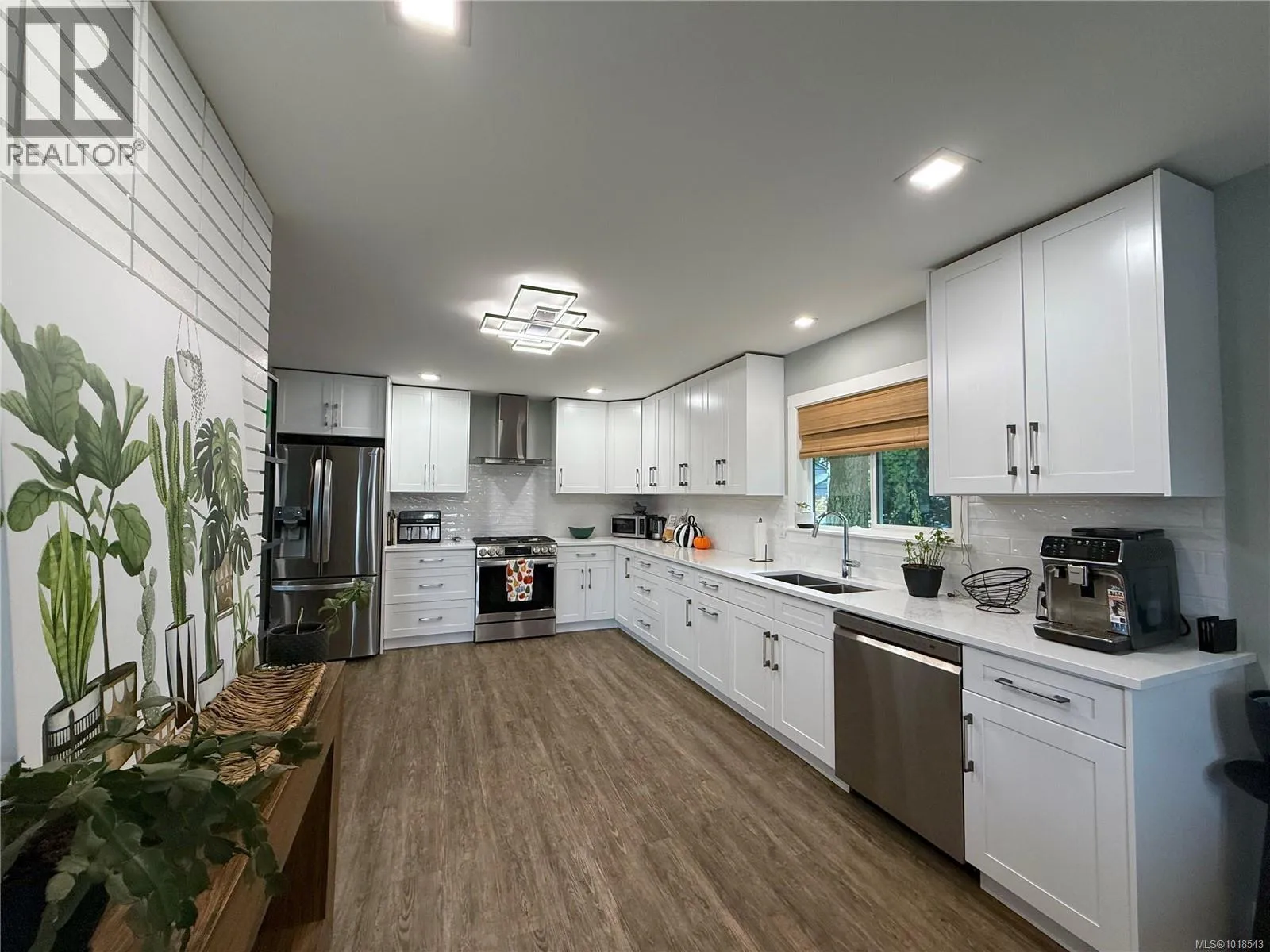 Beautifully renovated family home ideally situated in a central Campbell River location! Inside, this home features bright, open-concept living with tasteful updates throughout. The kitchen offers modern cabinetry, stainless steel appliances, and stylish finishes, flowing seamlessly into the dining and living areas for easy entertaining. Major updates include: windows, siding, gutters & soffits, gas furnace, new deck, gorgeous tiled bathrooms, new washer & dryer. Updated flooring, paint, and contemporary lighting create an inviting and move-in-ready option for your family. The flexible layout suits a variety of lifestyles with space for family living, guests, or a home office. Enjoy ocean and coastal mountain views from the living room & deck. Step outside to a spacious private yard with immaculate landscaping and a detached, 240 volt, 22x15 workshop! Centrally located near schools, shopping, recreation, trails and the Seawalk, this home offers comfort & convenience for years to come. (id:27476)