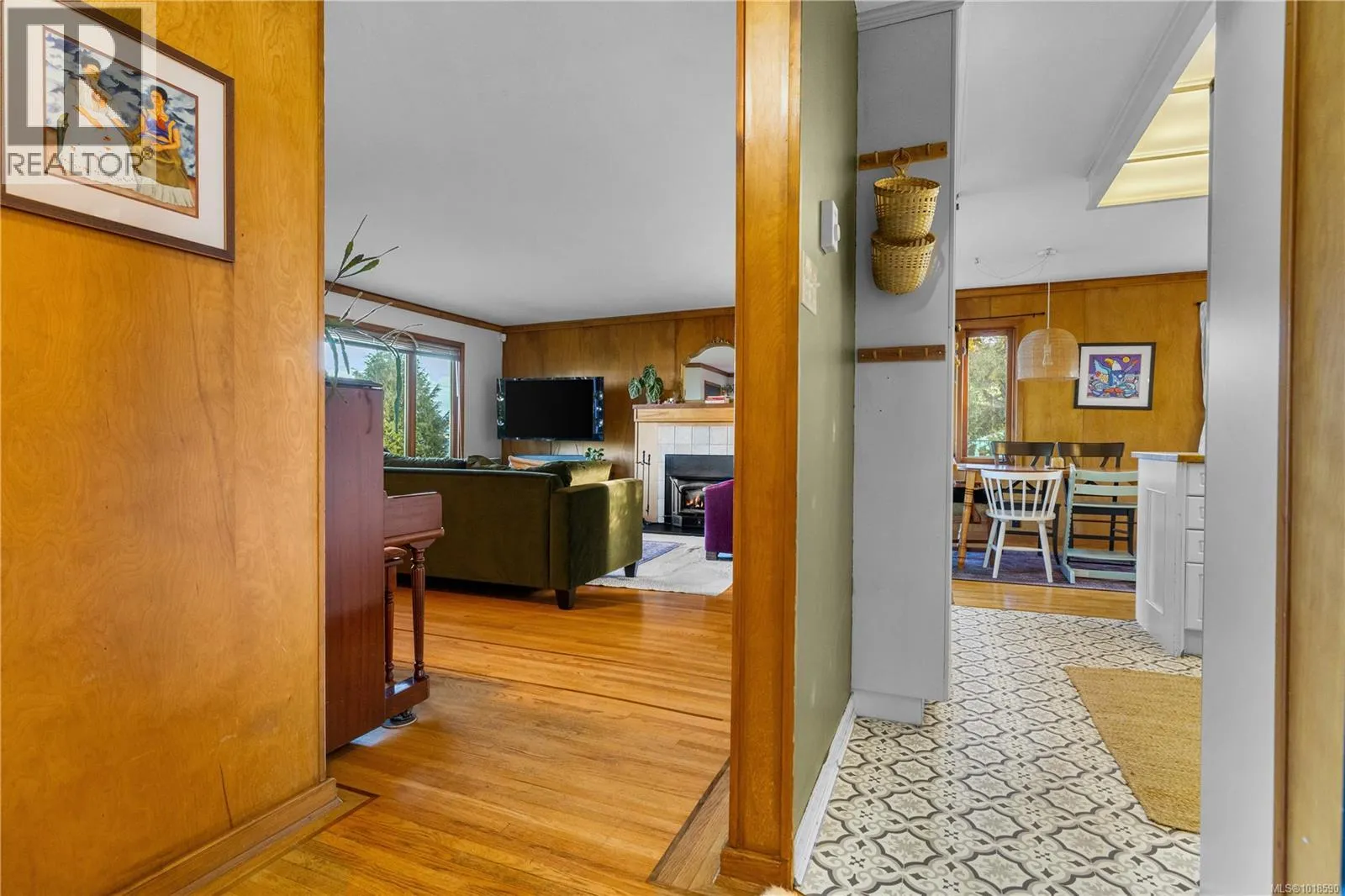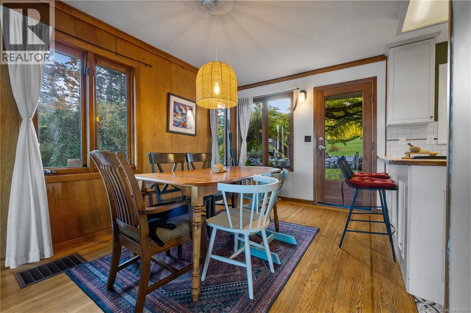 Fall in love with this charming character home perched above the ocean in the heart of Campbell River. Watch the sunrise over Quadra Island and the whales pass by, all from your bed. Old-growth wood floors, a cozy wood stove, and picture windows invite nature's beauty inside. Featuring two spacious bedrooms, a den, and a fully renovated bathroom, this home blends timeless charm with a few tasteful updates. Nearly half an acre of lush gardens, a detached shop, and alley access offer endless potential. Eagles soar overhead, ocean air fills every room, and the energy here is pure magic. Just minutes from the Museum, Centennial Park, and Discovery Pier - this is West Coast living at its most soulful. Plenty of parking, space to grow, and a view that will take your breath away. Don't be fooled by the address, this home is privately accessed at the end of quiet 4th Avenue. (id:27476)
