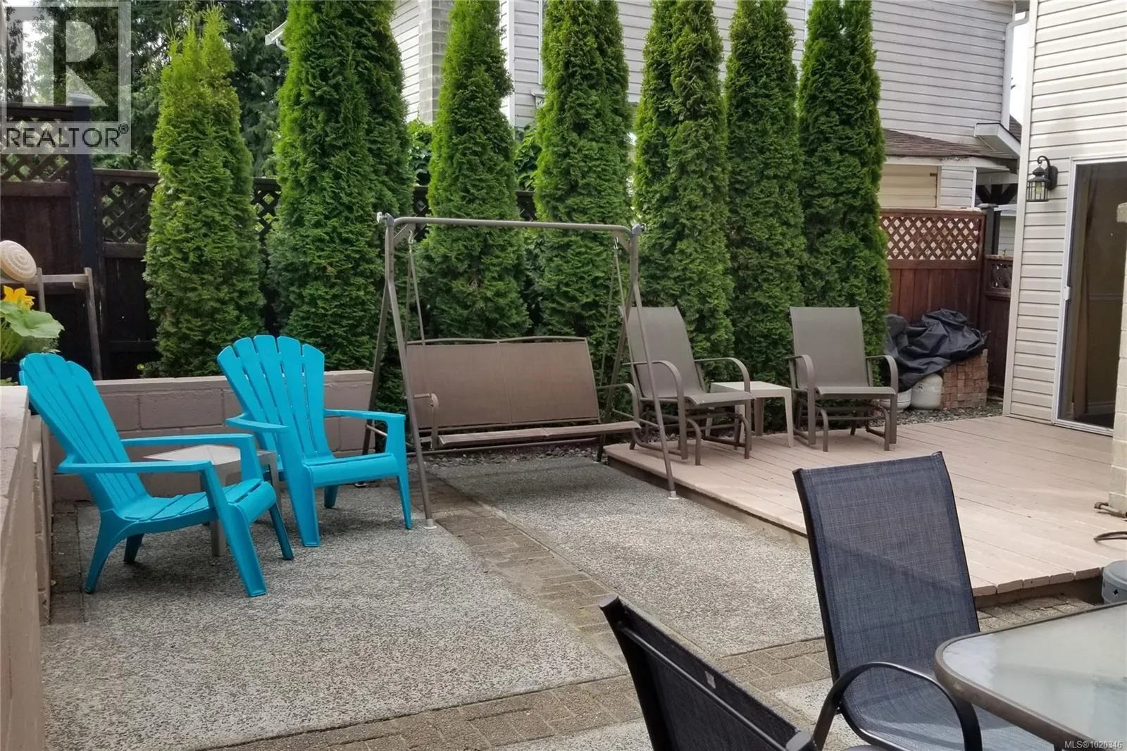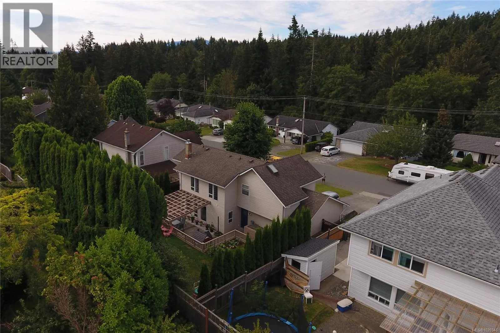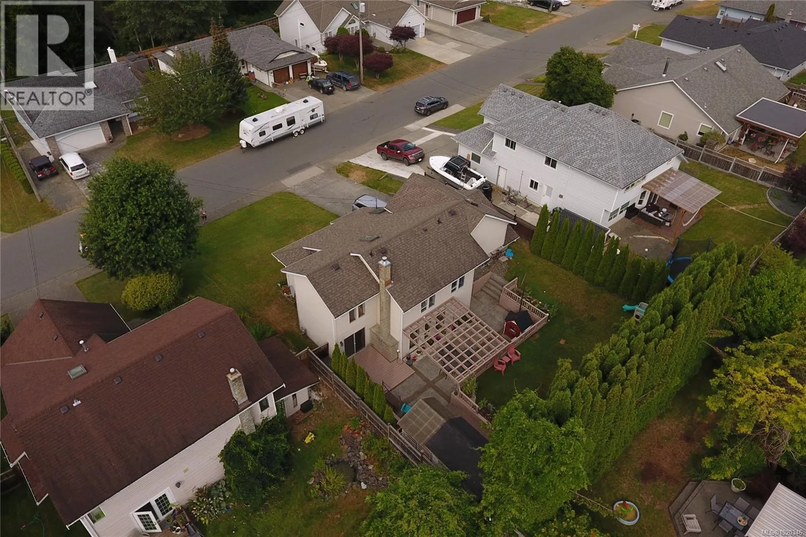 Fantastic family home in a wonderful family neighbourhood. All 4 bedrooms on the top floor, including the spacious primary with walk-in closet & luxury 5-piece ensuite with a large relaxing jetted soaker tub and 5 full-body shower heads. The upper landing overlooks the high vaulted ceiling over the living room and entryway. The kitchen has an open design, with updated stainless steel appliances, elegant backsplash and a large center island with room for breakfast stools. You have a family room off the kitchen with new gas fireplace and floor-to-ceiling windows looking out to the back yard. The formal dining room has sliders leading to the fully fenced & tiered back yard with storage shed & gas bbq hookup. Features also include extra wide double garage, roof in 2010 and new heat pump with wall unit in the living room and central air in all bedrooms. Just a few short blocks to Sportsplex, Merecroft Village, Beaver Lodge, Strathcona Pool/Arena, and Elementary & High School and North Island College. (id:27476)