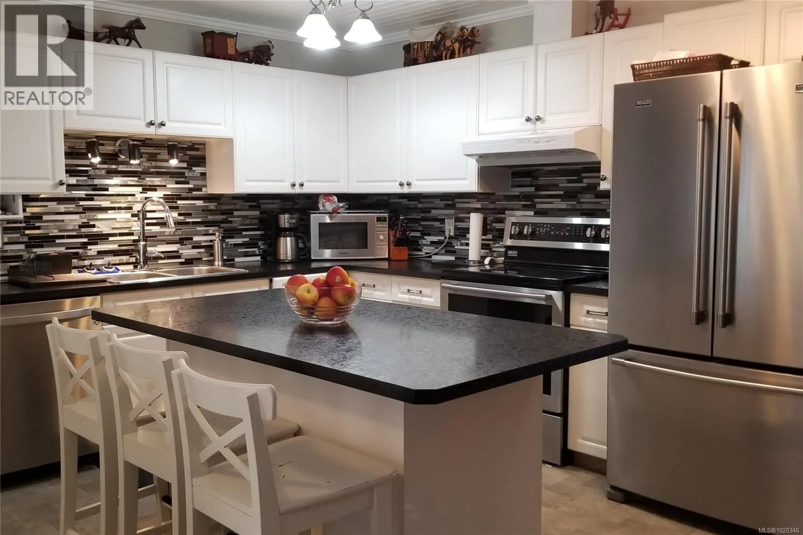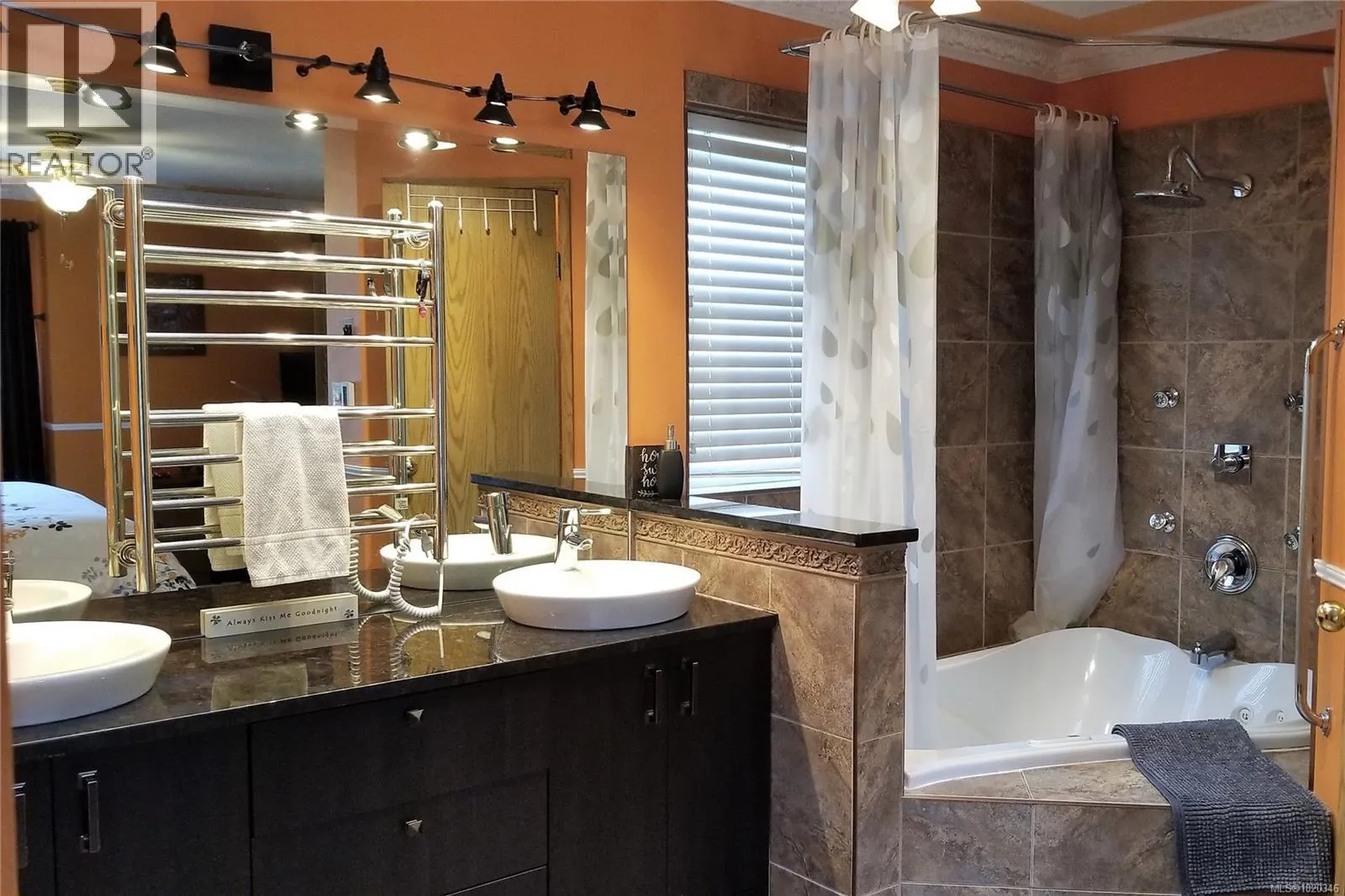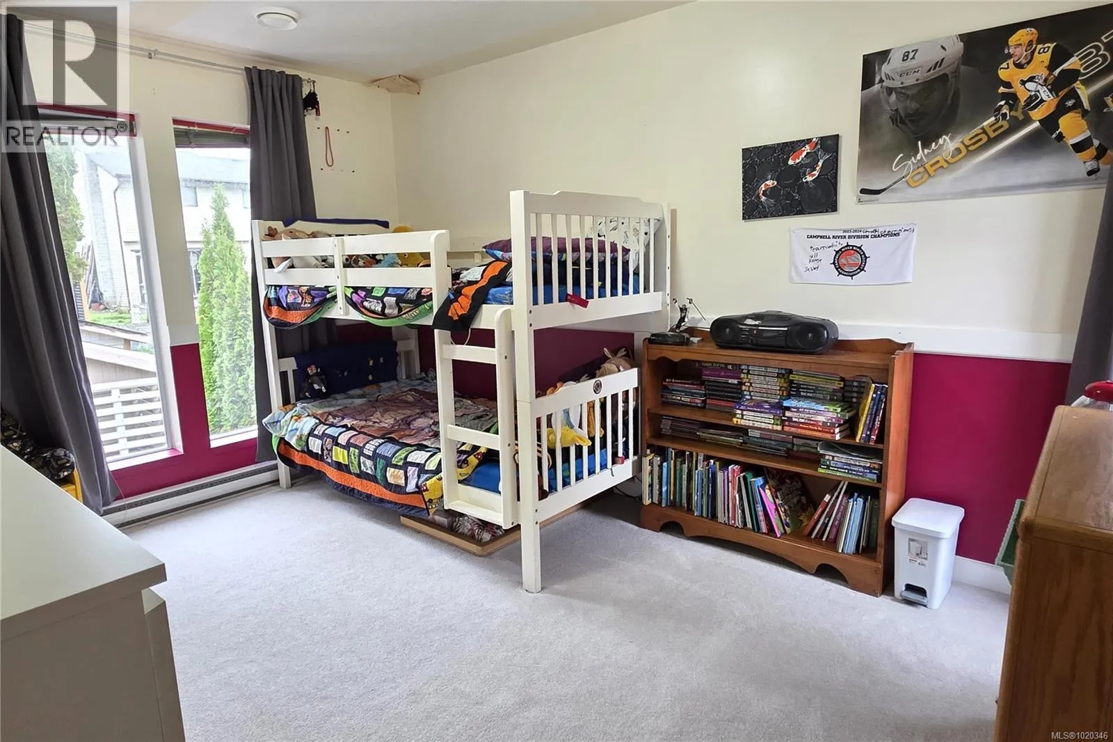 Fantastic family home in a wonderful family neighbourhood. All 4 bedrooms on the top floor, including the spacious primary with walk-in closet & luxury 5-piece ensuite with a large relaxing jetted soaker tub and 5 full-body shower heads. The upper landing overlooks the high vaulted ceiling over the living room and entryway. The kitchen has an open design, with updated stainless steel appliances, elegant backsplash and a large center island with room for breakfast stools. You have a family room off the kitchen with new gas fireplace and floor-to-ceiling windows looking out to the back yard. The formal dining room has sliders leading to the fully fenced & tiered back yard with storage shed & gas bbq hookup. Features also include extra wide double garage, roof in 2010 and new heat pump with wall unit in the living room and central air in all bedrooms. Just a few short blocks to Sportsplex, Merecroft Village, Beaver Lodge, Strathcona Pool/Arena, and Elementary & High School and North Island College. (id:27476)