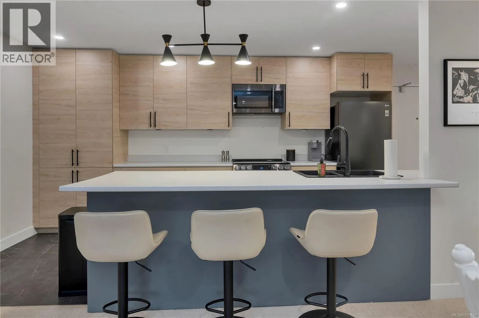 Stunning professional renovation completed on this condo, it is a MUST SEE!. Youâll love the beautiful modern new kitchen that features floor to ceiling cabinets, matte black appliances, and an oversized island with matching sink and faucet. Both bathrooms have been completely renovated, the former 2-piece ensuite has been expanded into a second full bathroom with walk-in shower, the main bath has been completely redone. Enjoy new luxury vinyl tile, carpet, baseboards, paint, baseboard heaters, lighting, and a flat finish ceiling in the main living area. This unit offers a spacious in suite storage and a covered south facing deck with beautiful mountain views. Ideally located in a quiet, central area within walking distance to shops and forested trails. Laundry on the same floor. Pet friendly, 1 cat or small dog and no age restrictions (id:27476)